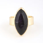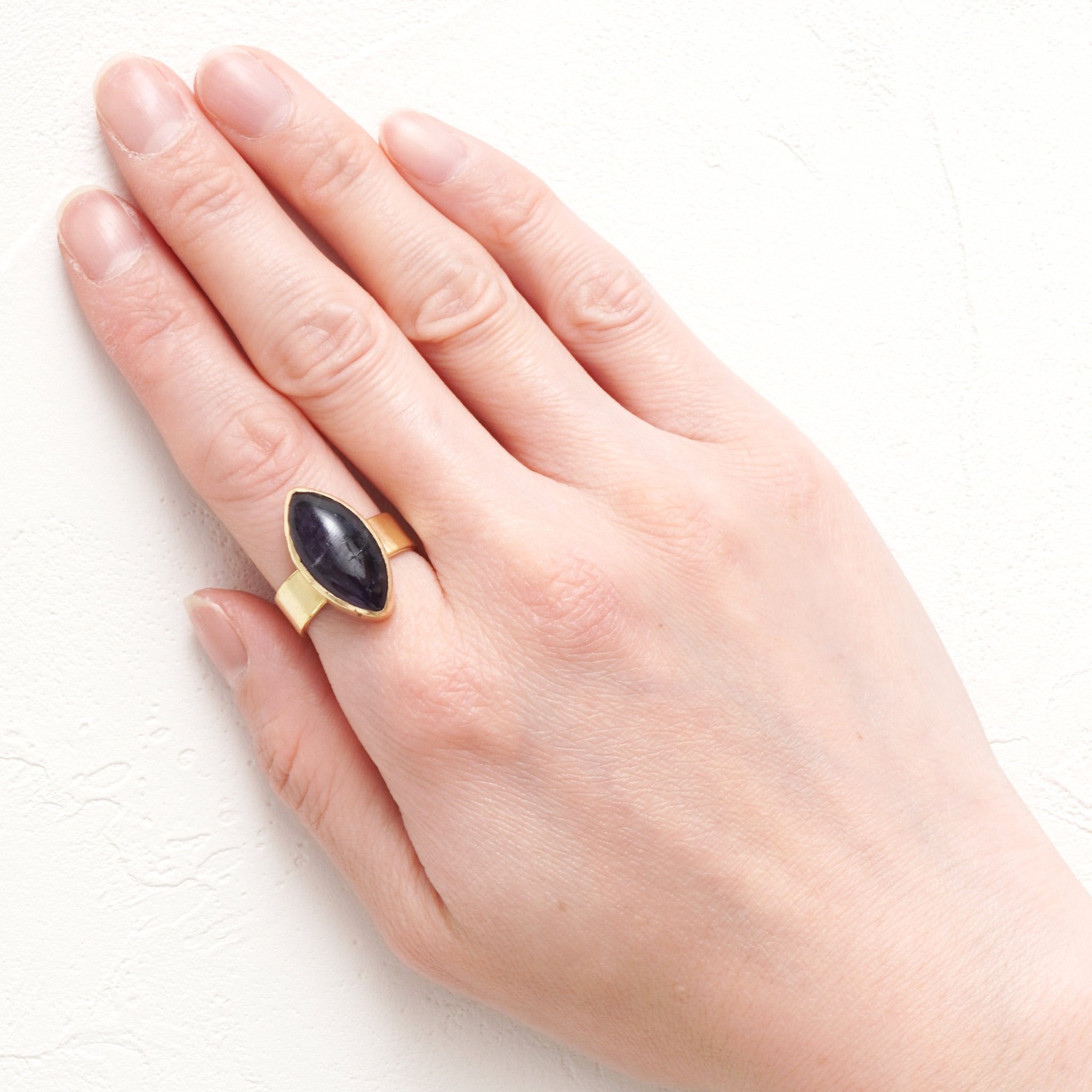 シンプルなフォルムの中に、天然石の個性とゴールドの上品な光沢が際立つデザイン。角度によって異なる表情を見せる天然石の魅力を、ぜひ指先で感じてみて。