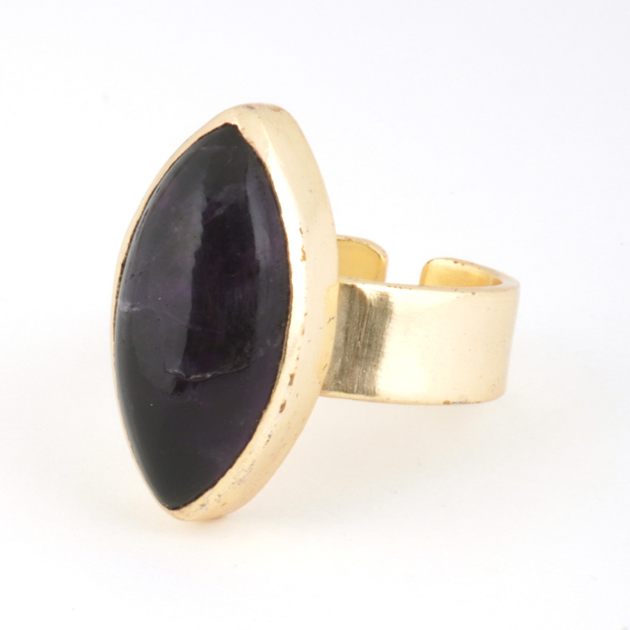 インド・ジャイプールで厳選された良質の天然石。確かな品質をお手頃価格で提供したいという思いから、リングパーツは真鍮を、また自分サイズにアレンジ自由なフリーサイズリングを採用。天然石の形に合わせて、インドの職人が1つ1つ丁寧に作り上げています。全て1点物、色も形も違う、あなただけのオンリーワンジュエリーです。