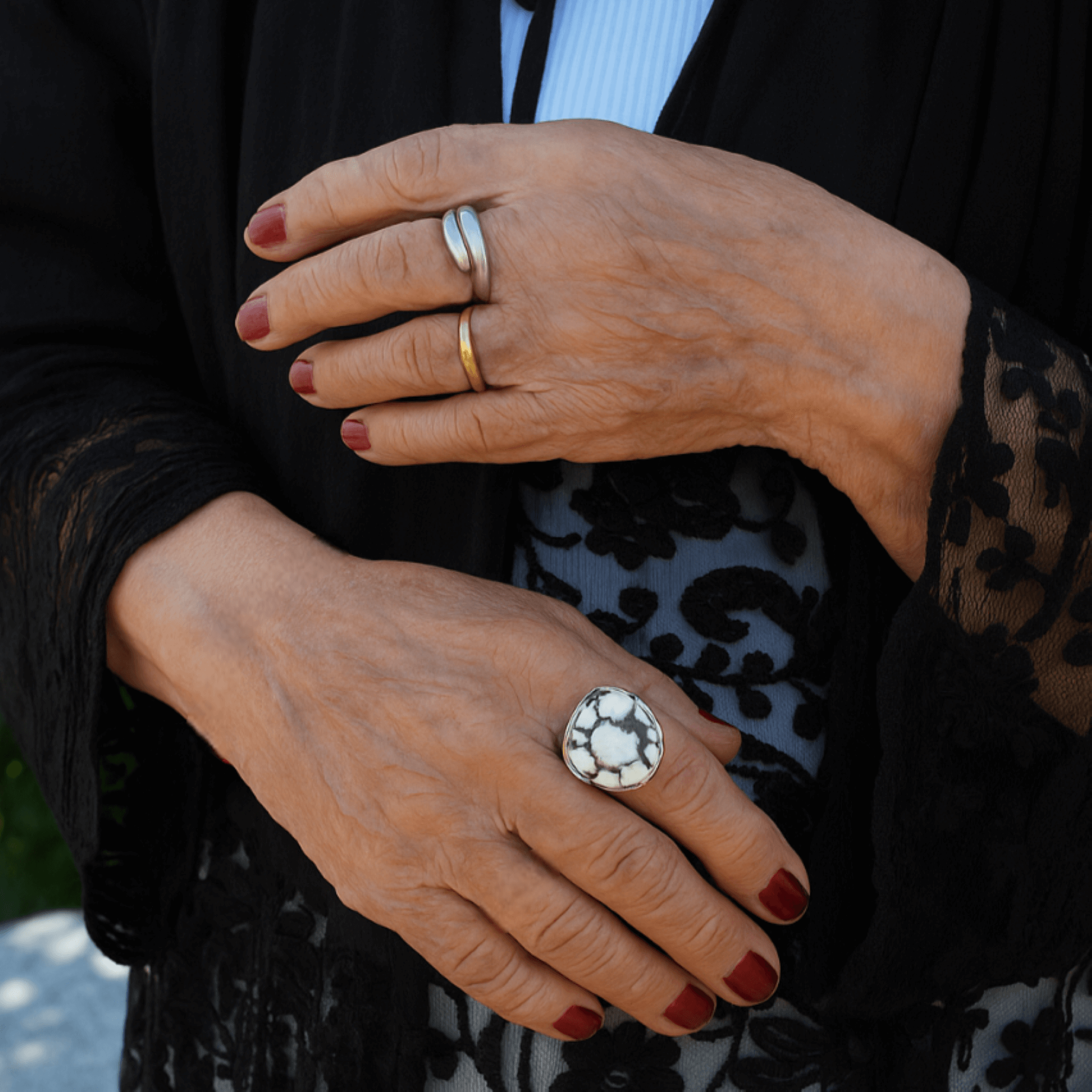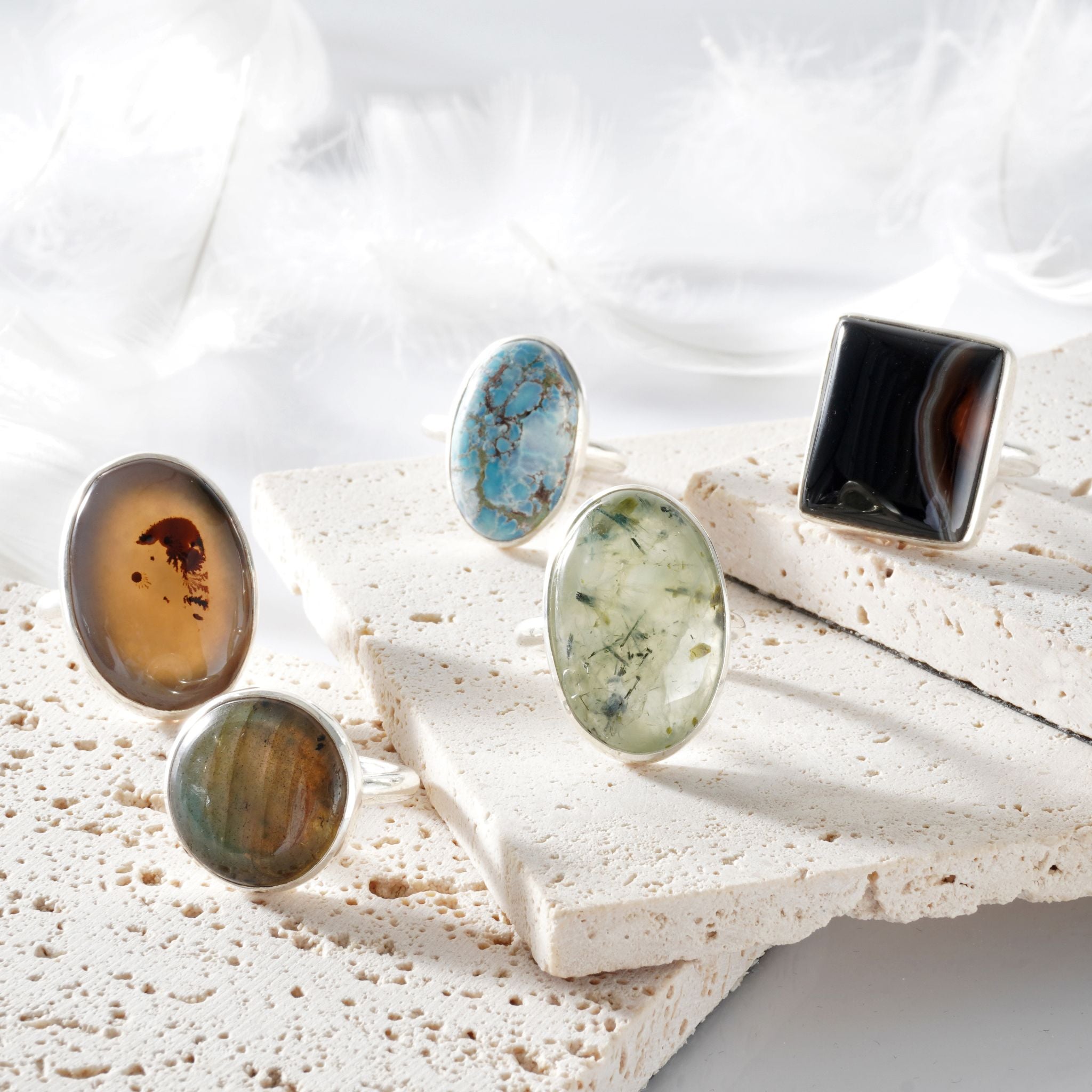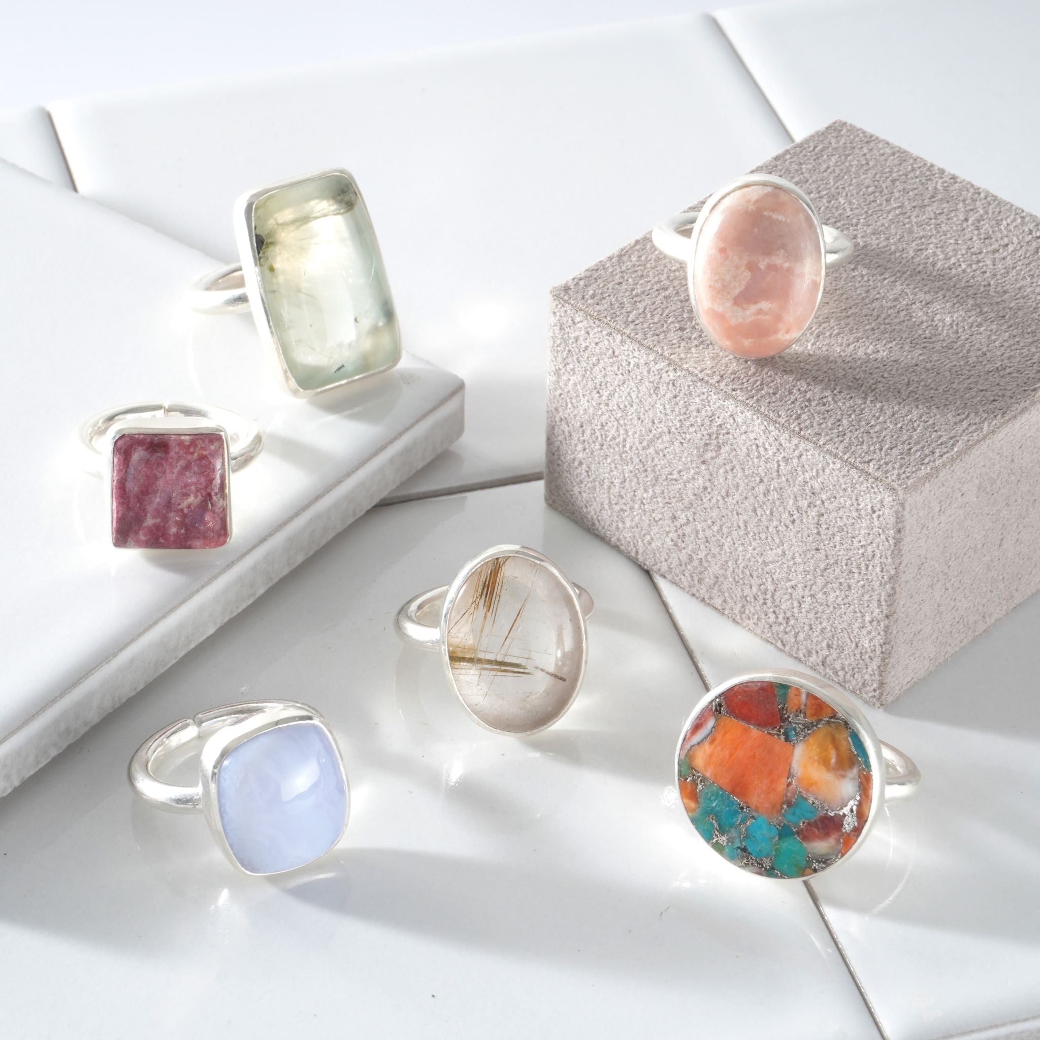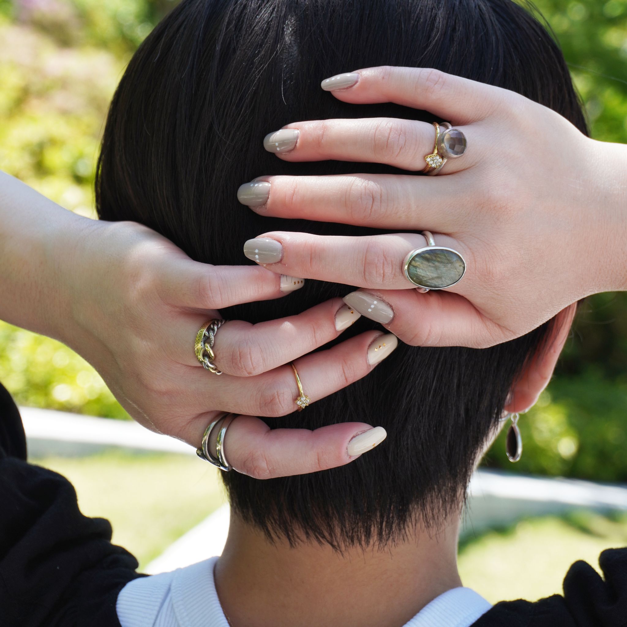すべてのリングは、インド・ジャイプールの熟練の職人が一点ずつ丁寧に手作業で仕上げています。選び抜かれた天然石をセットし、ひとつひとつ磨き上げることで、 機械では出せない温もりと、指に馴染む優しい着け心地 が実現。