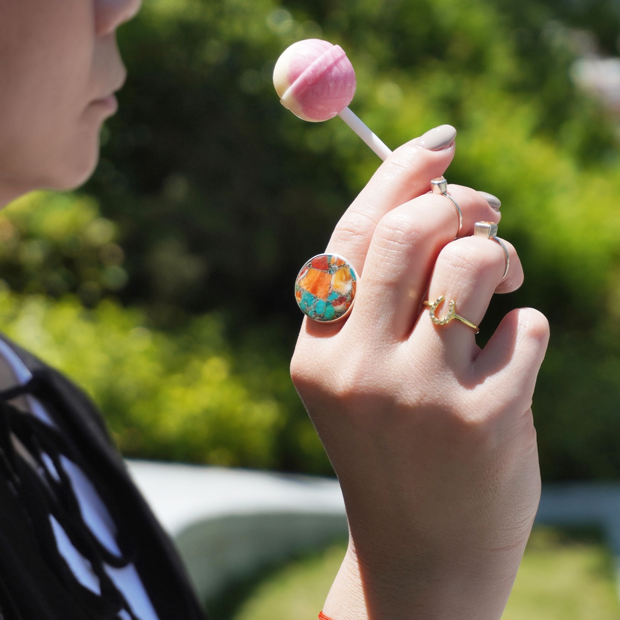 インド・ジャイプールで厳選された良質の天然石。お気に入りの石を末永くご愛用頂けるようにリングアームはシルバー925を採用し、また自分サイズにアレンジ自由なフリーサイズリングを採用。天然石の形に合わせて、インドの職人が1つ1つ丁寧に作り上げています。全て1点物、色も形も違う、あなただけのオンリーワンジュエリーです。