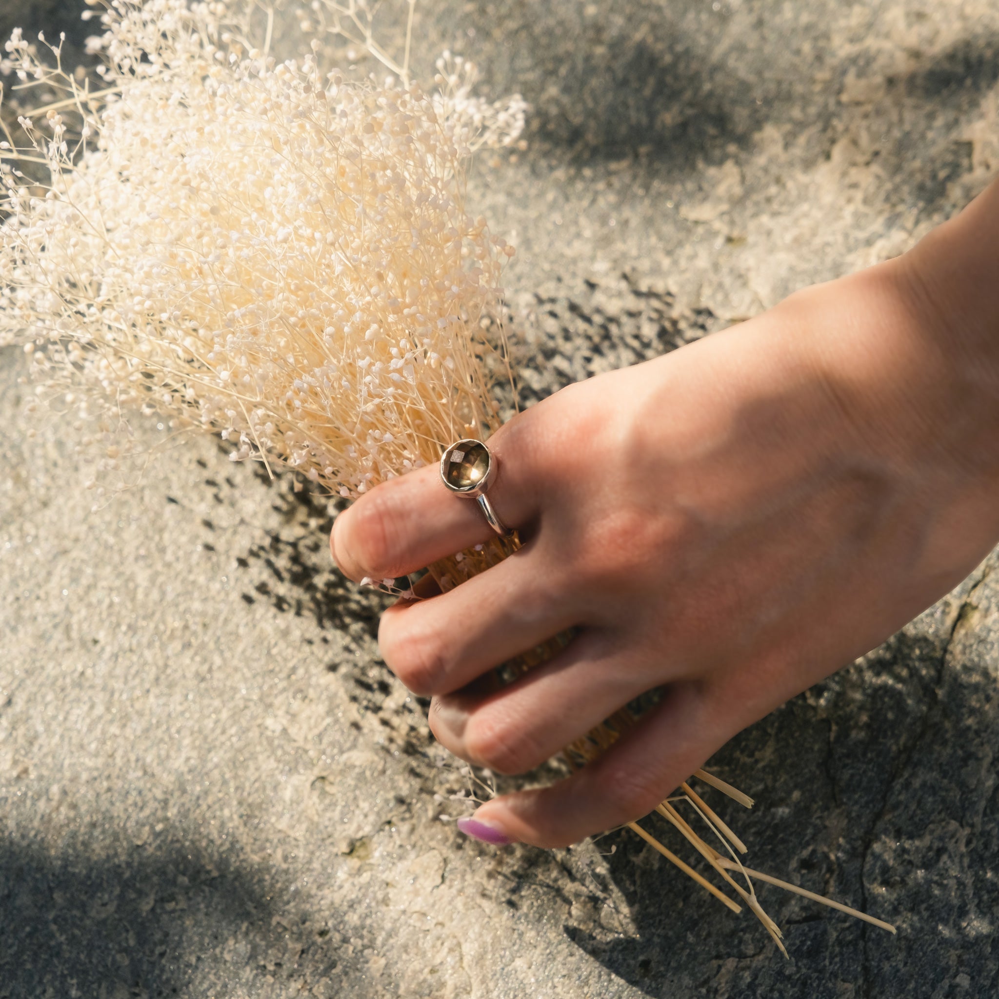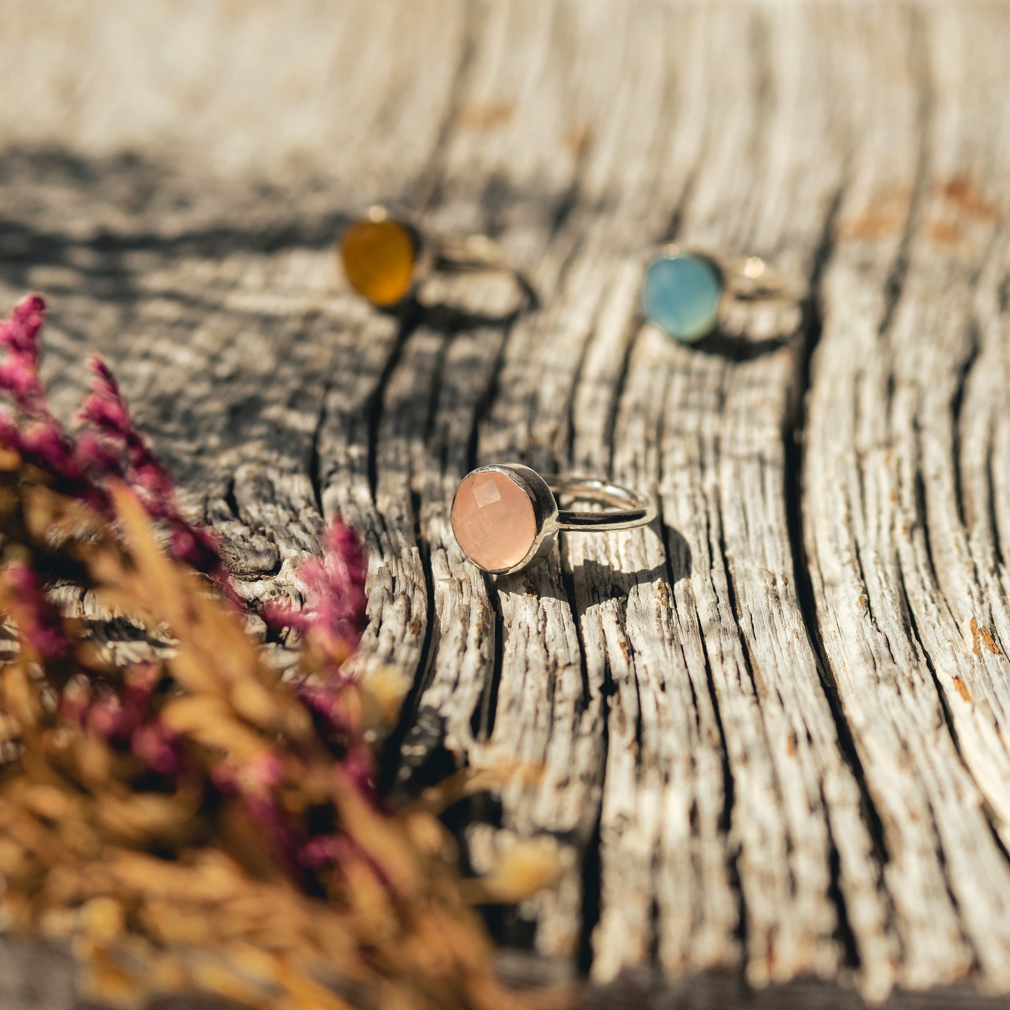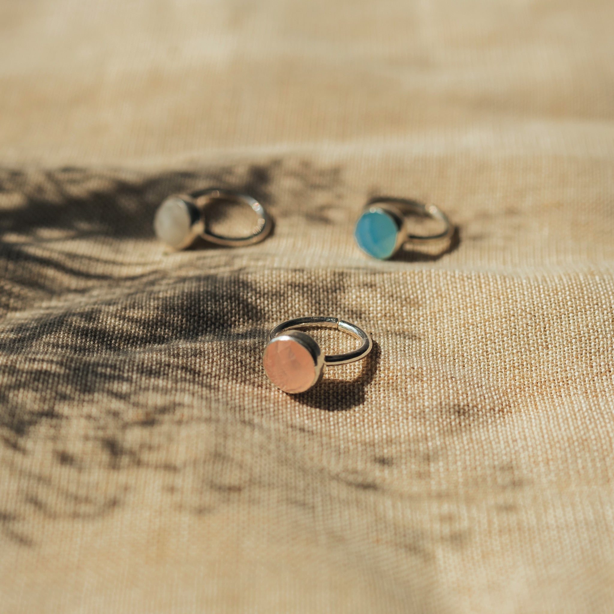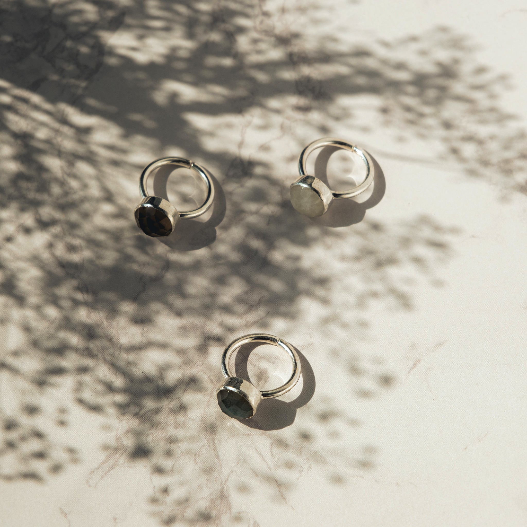 インド・ジャイプールで厳選された良質の天然石。厳選した7種類の石に キラキラと石を輝かせるカッティングを 施した華やかなラウンド型リング。インドの職人が1つ1つ丁寧に作り上げています。全て1点物、あなただけのオンリーワンジュエリーです。