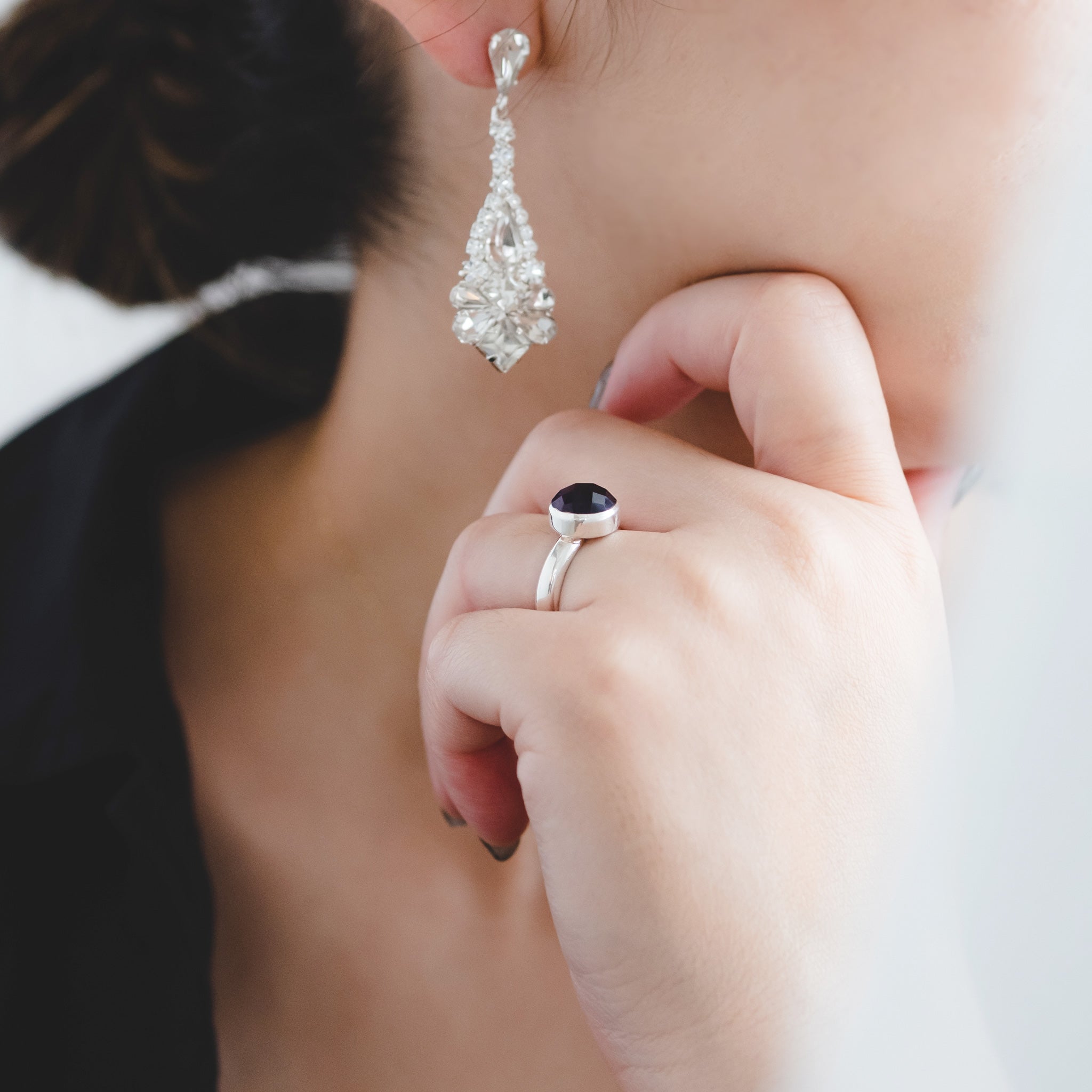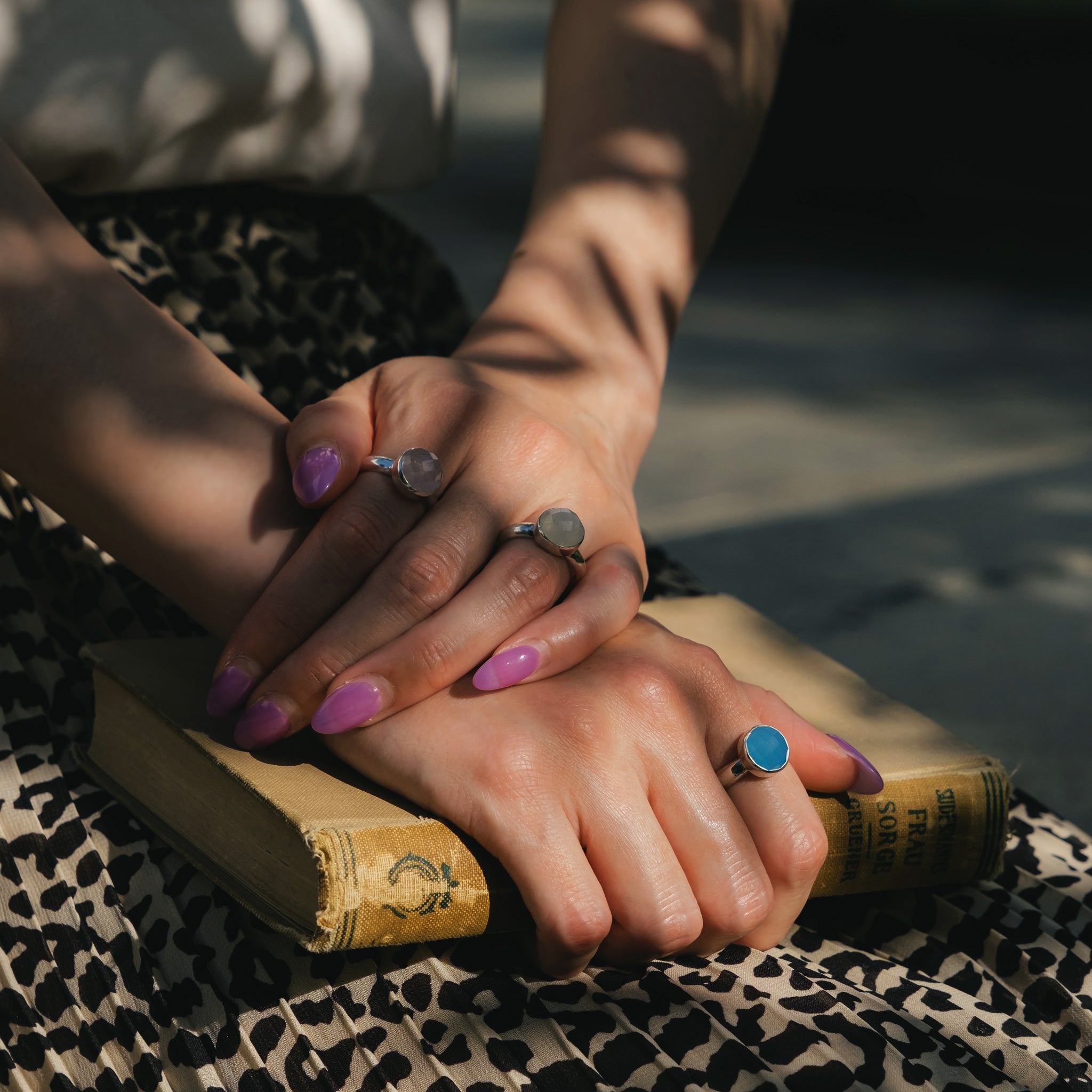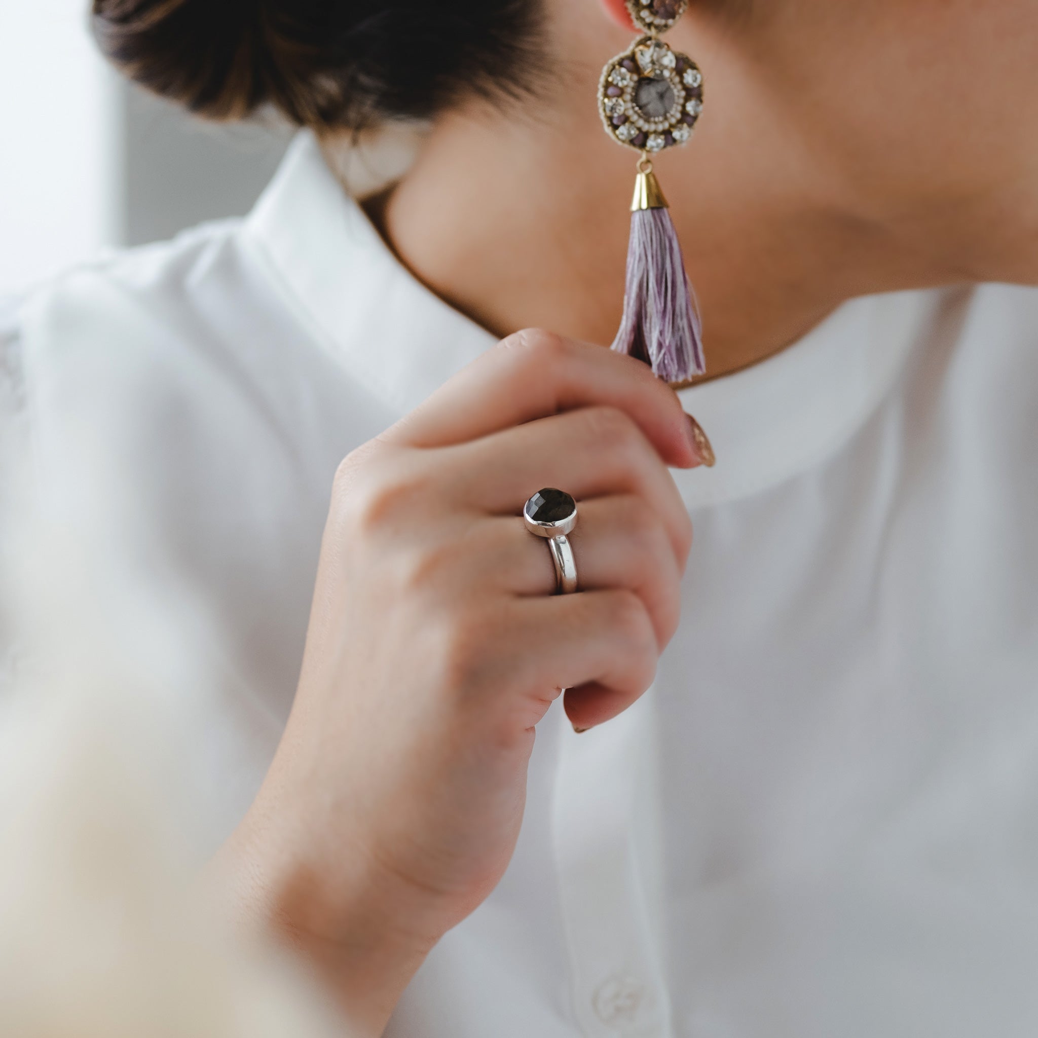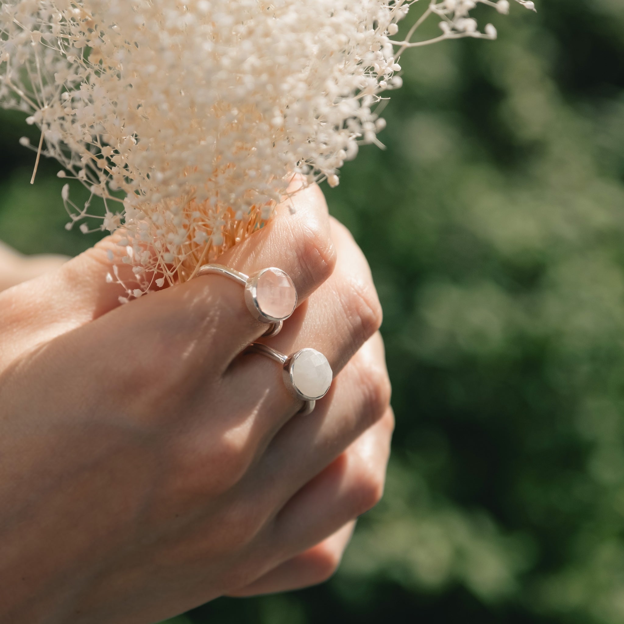 インド・ジャイプールで厳選された良質の天然石。厳選した7種類の石に キラキラと石を輝かせるカッティングを 施した華やかなラウンド型リング。インドの職人が1つ1つ丁寧に作り上げています。全て1点物、あなただけのオンリーワンジュエリーです。