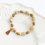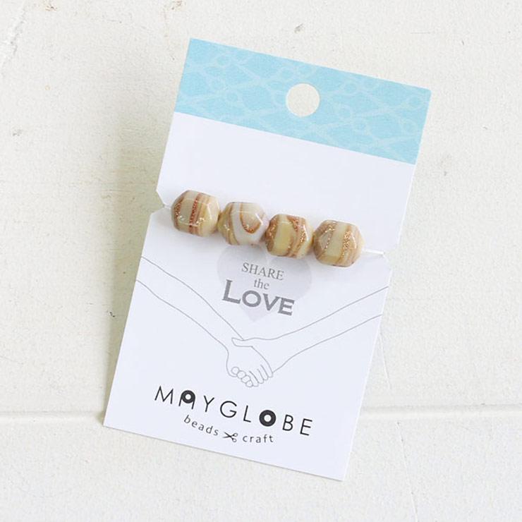 ベージュ×ブラウンラメ8×10mmサイズの六角形のガラスビーズです。マーブル模様も出方がそれぞれ違うので世界に1点しかないビーズ個性の違いもお楽しみください!