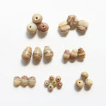 一点一点、職人の手で形作られたガラスビーズ。透明感のあるものから、マーブル模様の個性的なデザインまで、バリエーション豊かに揃っています。光を受けると異なる表情を見せるため、どんな角度から見ても楽しめるのが魅力。アクセサリーに取り入れるだけで、洗練された印象を与えます。