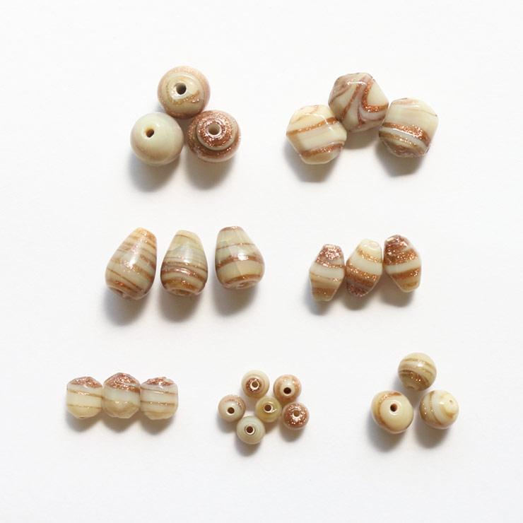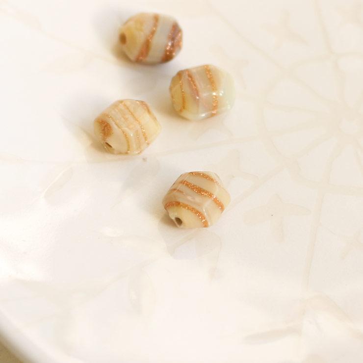 ガラスビーズ 六角形型 8×10mm ベージュ×ブラウンラメ 4個入(5セット入り)