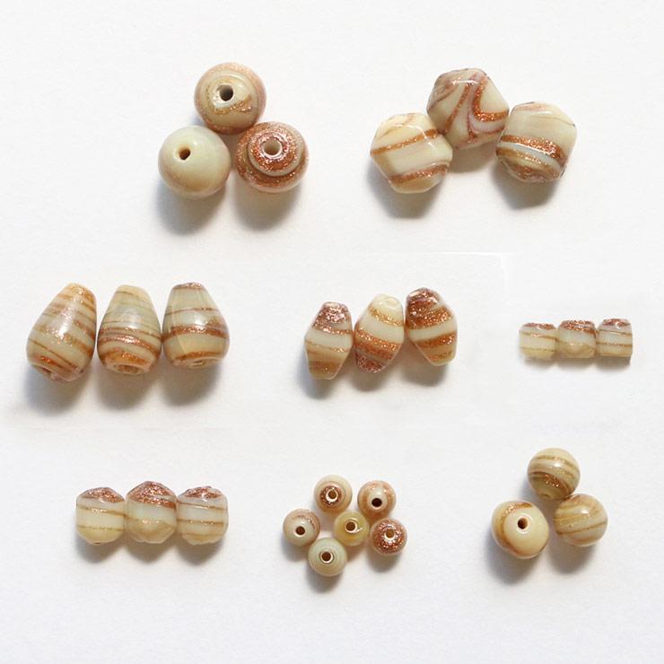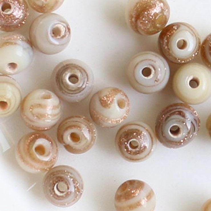 ガラスビーズ ラウンド型 4mm ベージュ×ブラウンラメ 10個入(5セット入り)