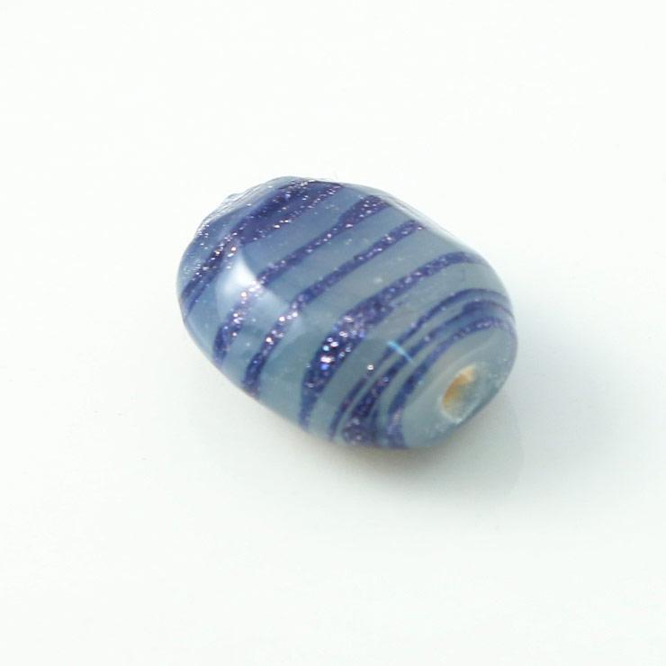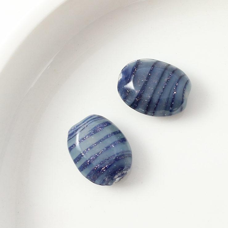 ガラスビーズ オーバル型 10×14mm グレー×ネイビーラメ 2個入(5セット入り)