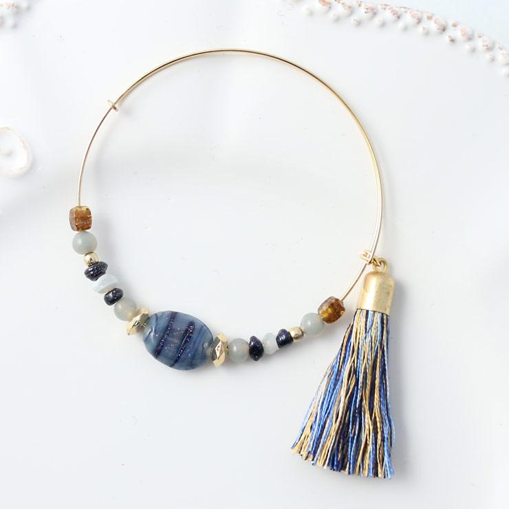インドの職人が一本ずつ丁寧に束ねたタッセルは柔らかなタッチが特徴。繊細な糸のグラデーションが、美しい動きを生み出します。ハンドメイドならではの柔らかな風合いと、絶妙なカラーリングが魅力。