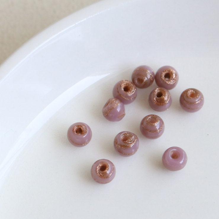 ガラスビーズ ラウンド型 4mm パープル×ブラウンラメ 10個入(5セット入り)