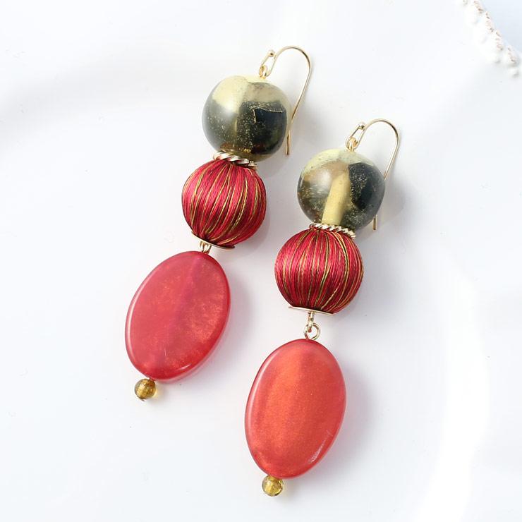 巻き糸ビーズ ラウンド型 17mm レッド×グリーン 2個入(5セット入り)