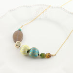 グリーンベージュ17mmサイズのラウンドの巻き糸ビーズです。単品でも雰囲気がありますが、単色なのでシンプルで、どんなカラーや素材とも相性が抜群です!