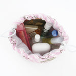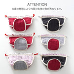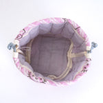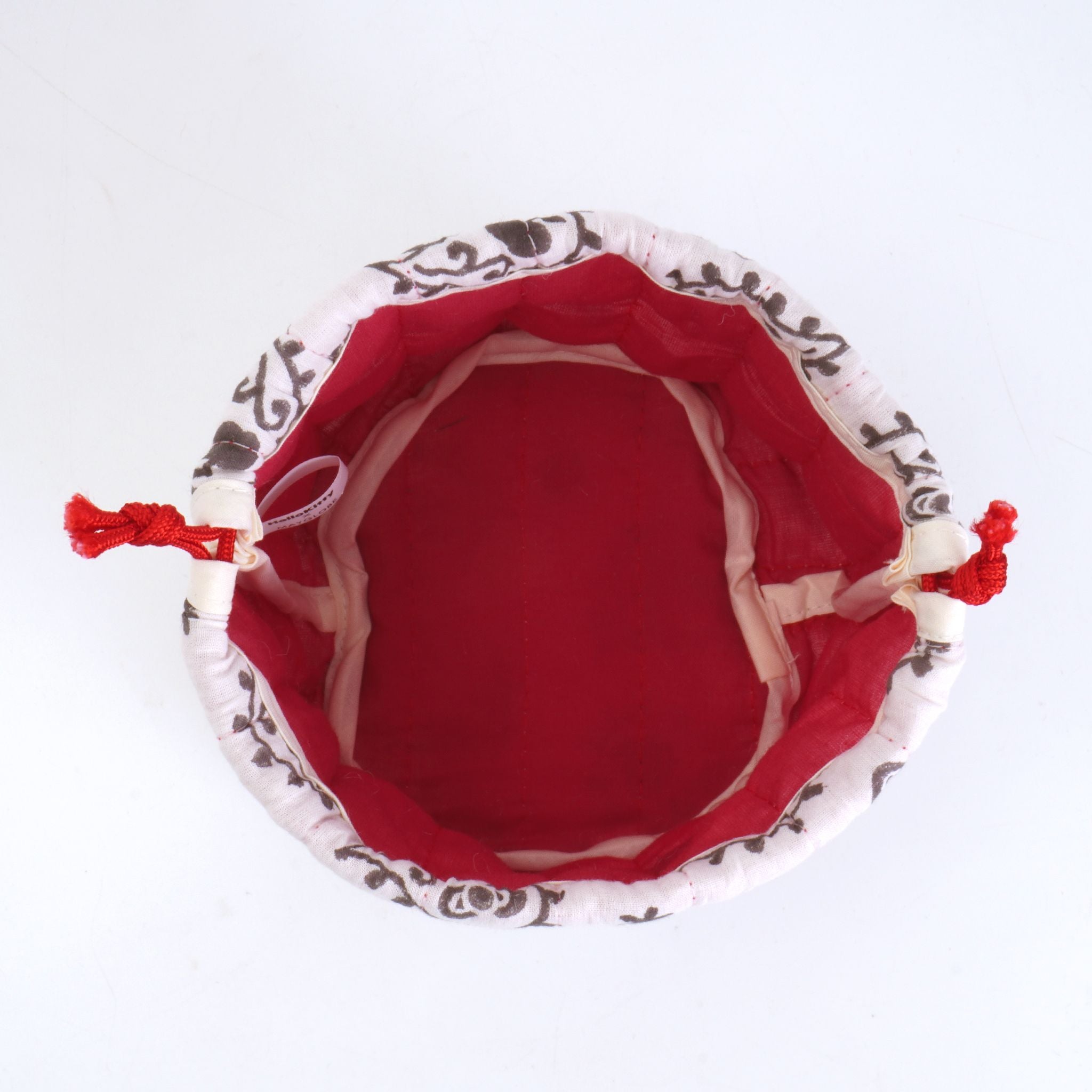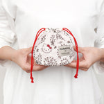 ポーチは使いやすいサイズでトキメク巾着型。コロンとしたフォルムが特徴的で、開封が簡単です。中に入っているものが分かりやすく、探しているものがすぐに取れ出せストレスフリー。パターンはピンクのストライプと赤のアクセントカラーが特徴のペイズリーからお選びいただけます。