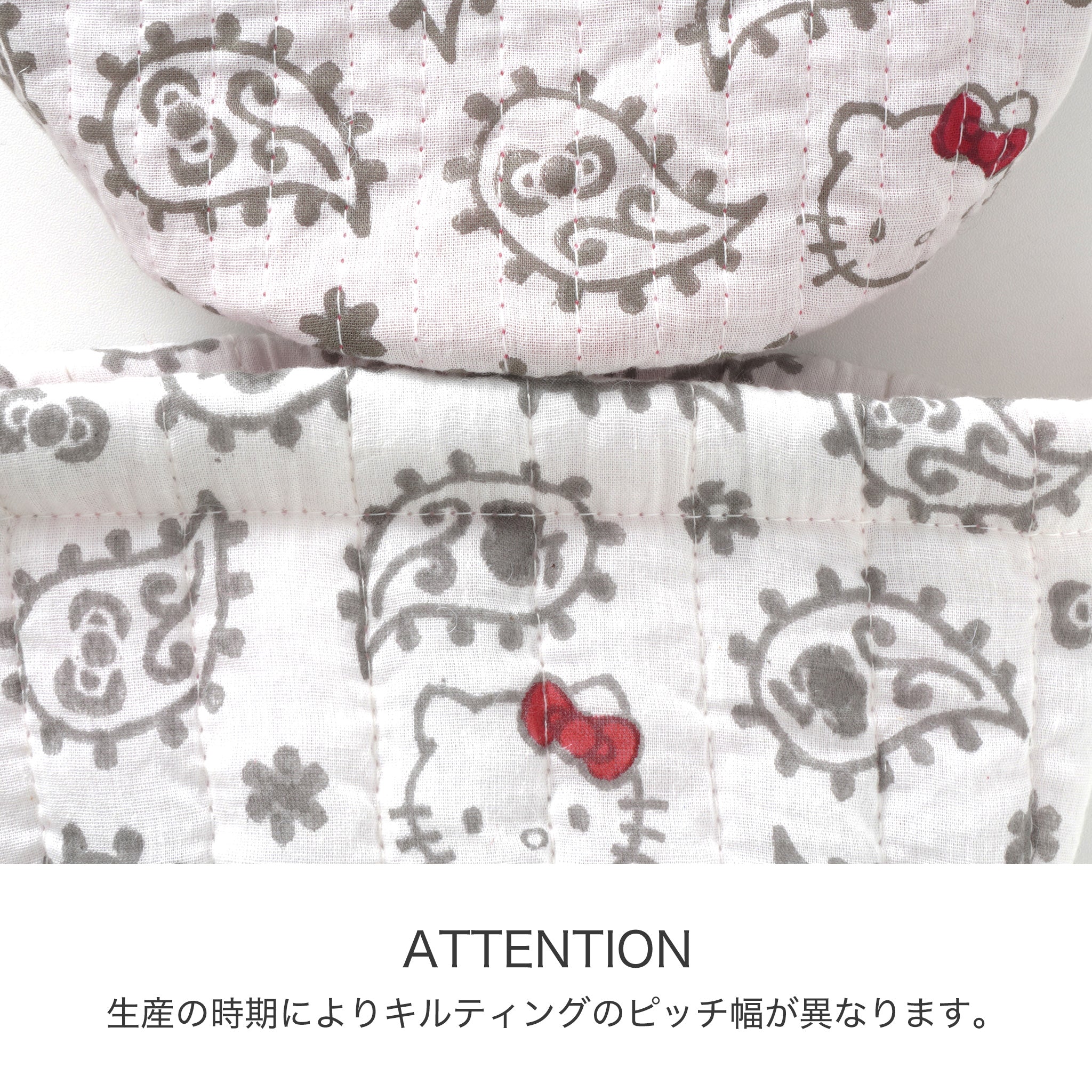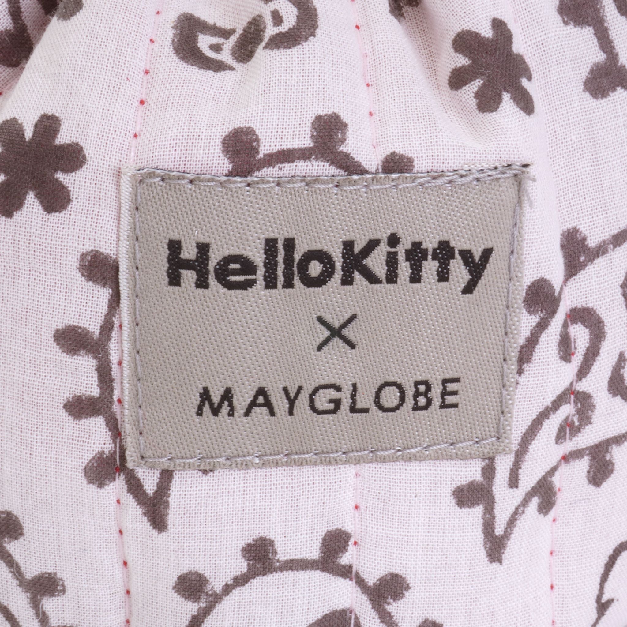 インドで起源前から語り継がれていると言われているブロックプリントという技法で作ったハローキティの生地をポーチにしました。ブロックプリントは幾重にもインクを重ねていくため、大変手間がかかる技法ですが、その分、機械では出せないハンドメイドならではの優しい風合いが生み出されます。 生地のデザインはもちろん、ブロックプリントの木版も手作りするところから企画しました。コットンケンブリック地をキルティング加工し、肌触りもよく、軽やかで柔らかくなっており、素材にもこだわりました。