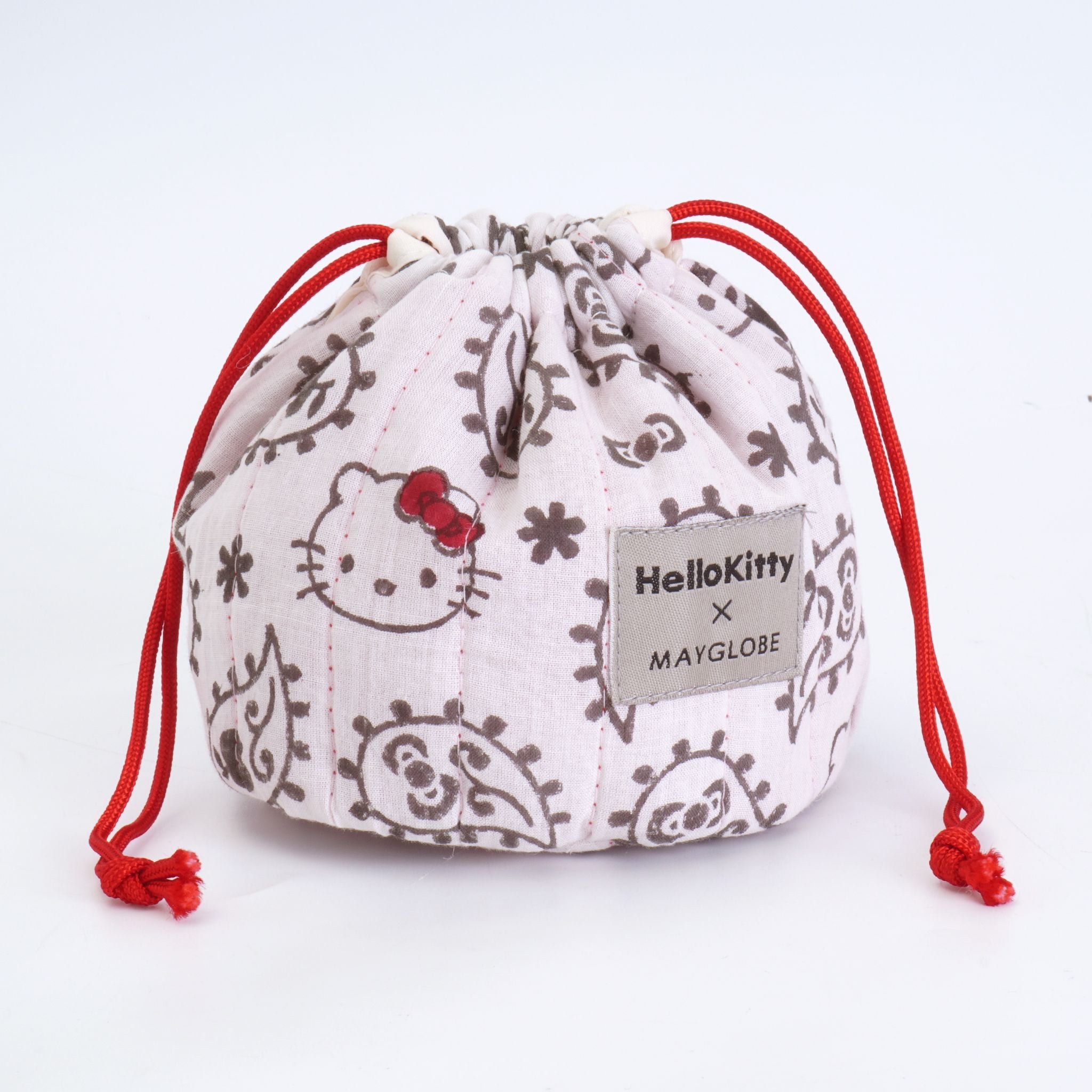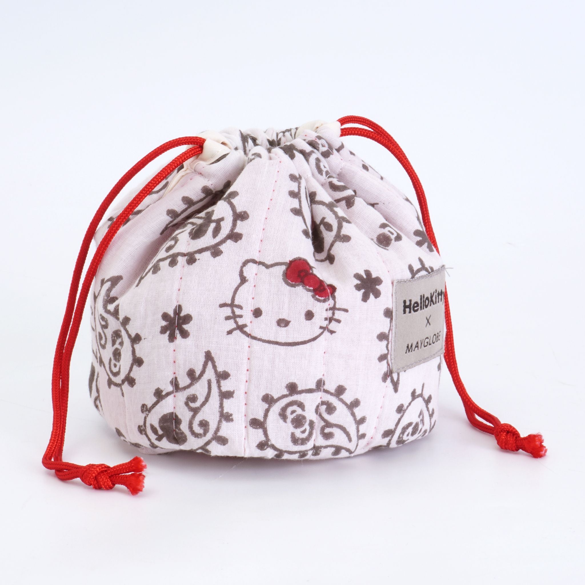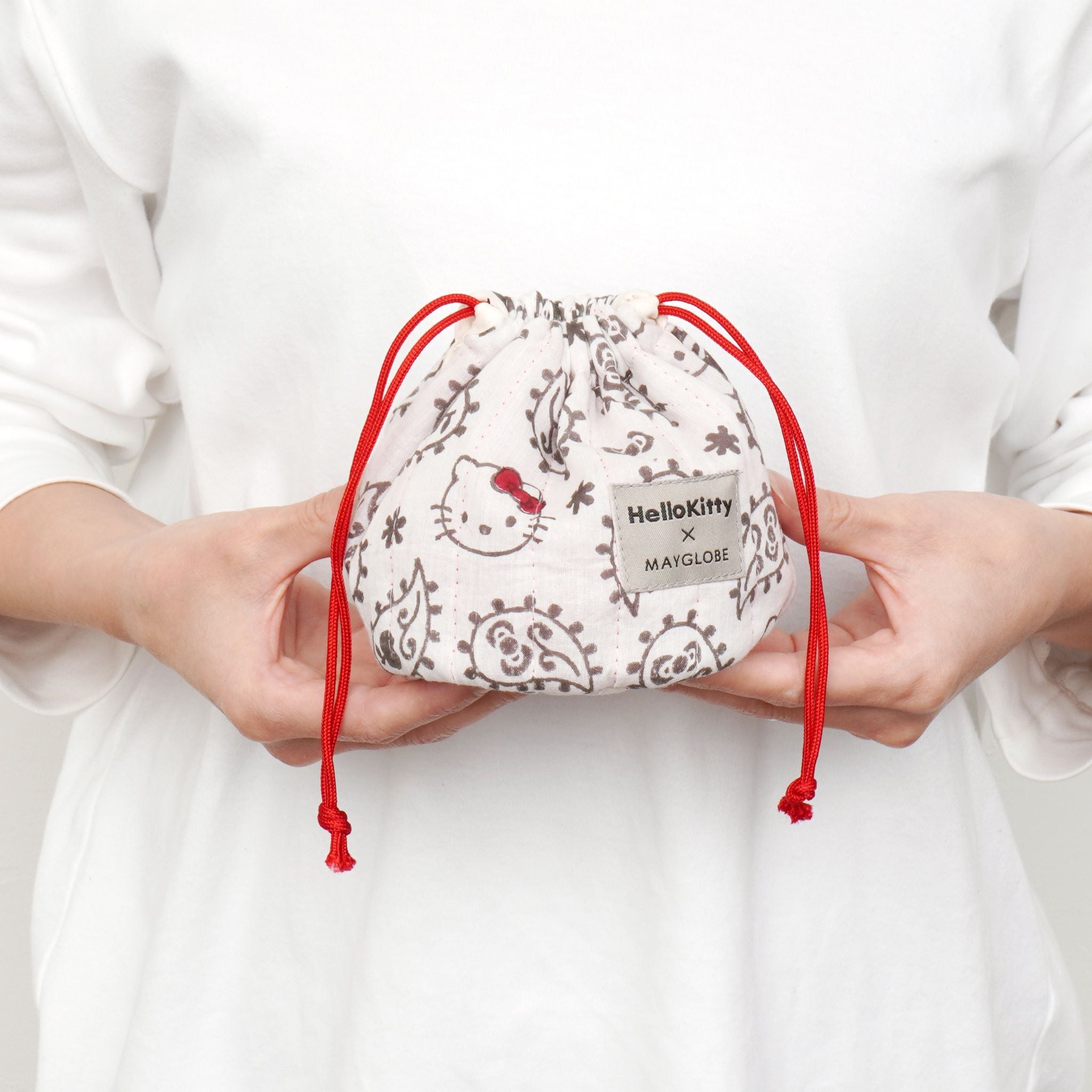 ハローキティ ブロックプリント ミニ巾着ポーチ