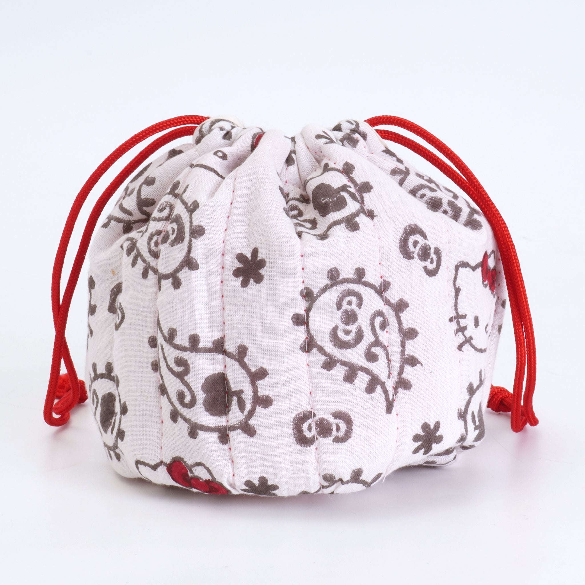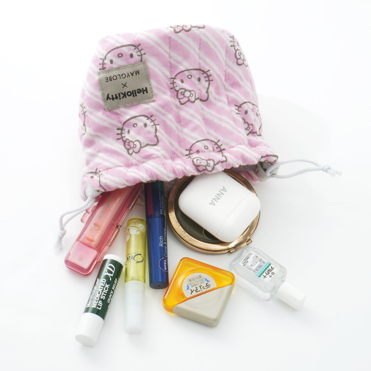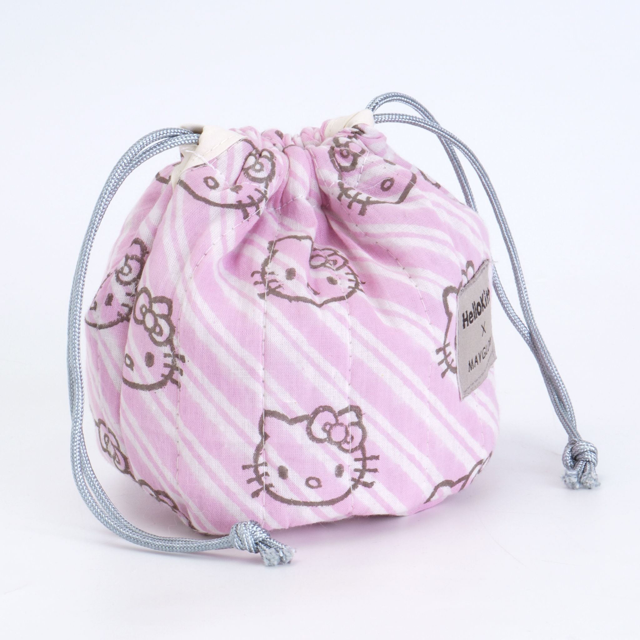 ハローキティ ブロックプリント ミニ巾着ポーチ