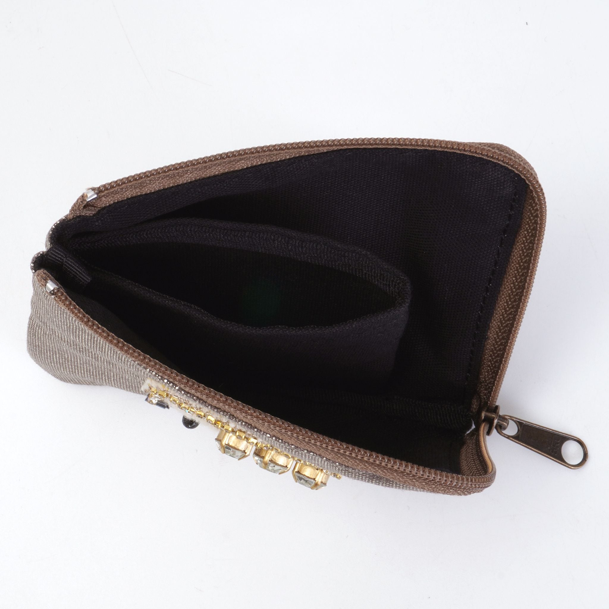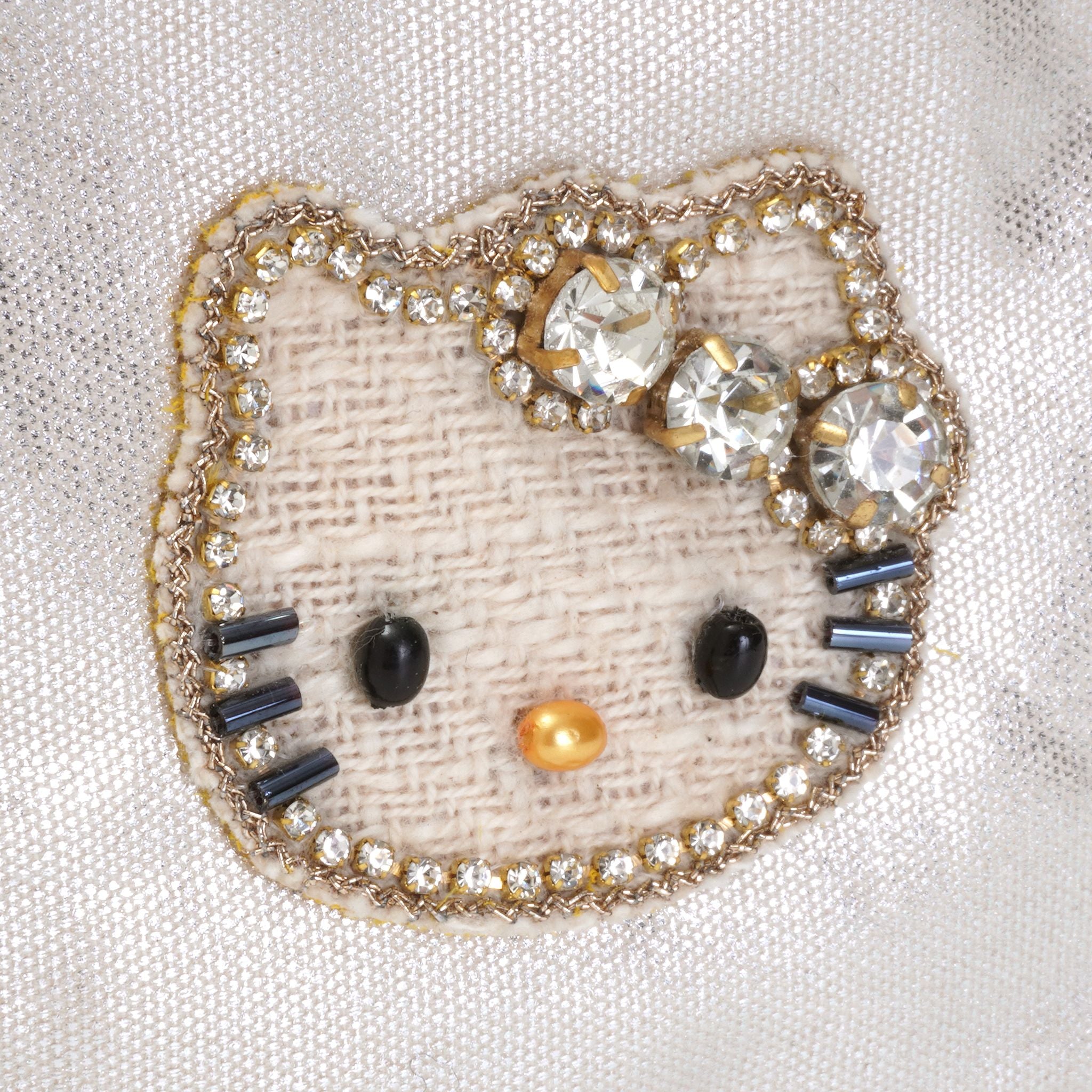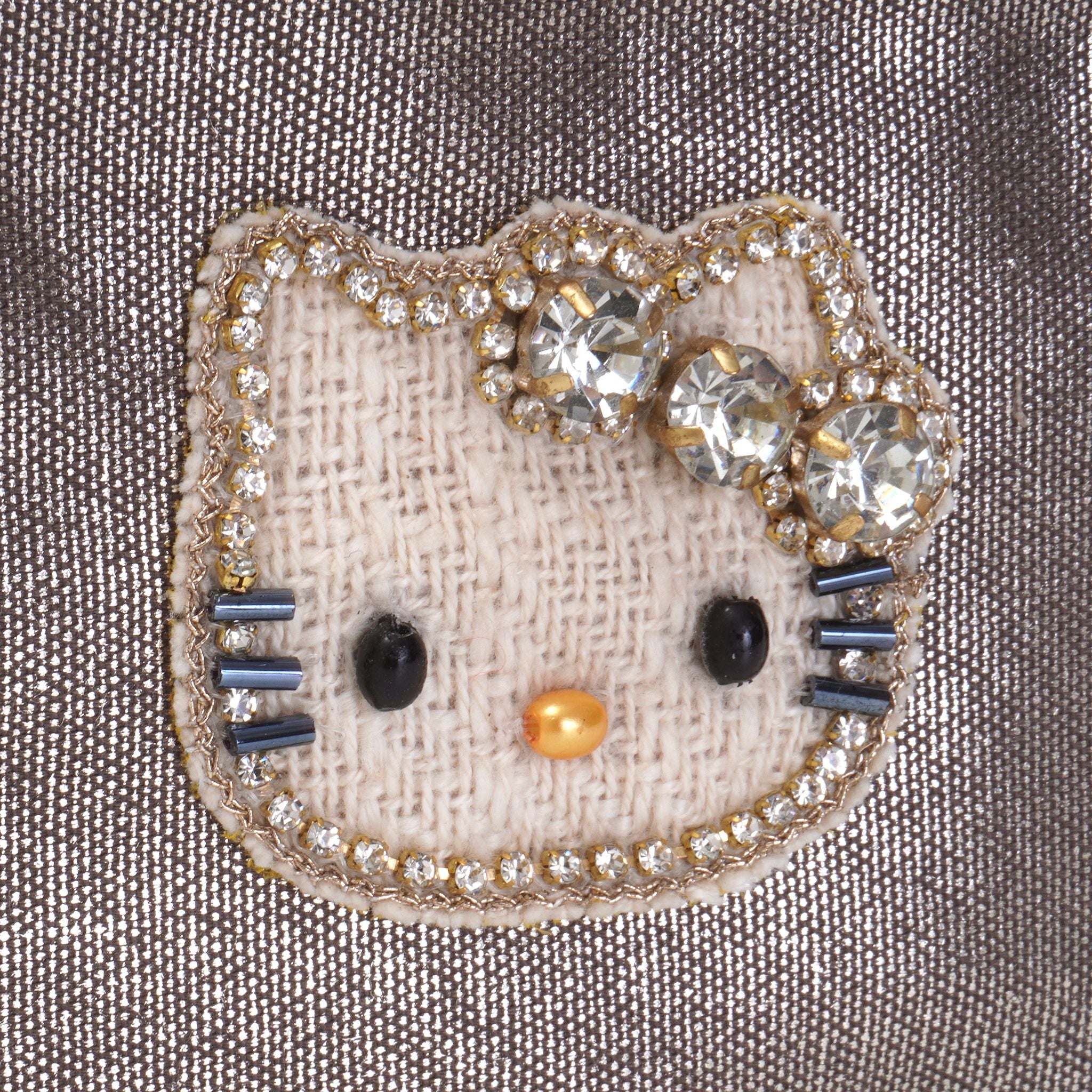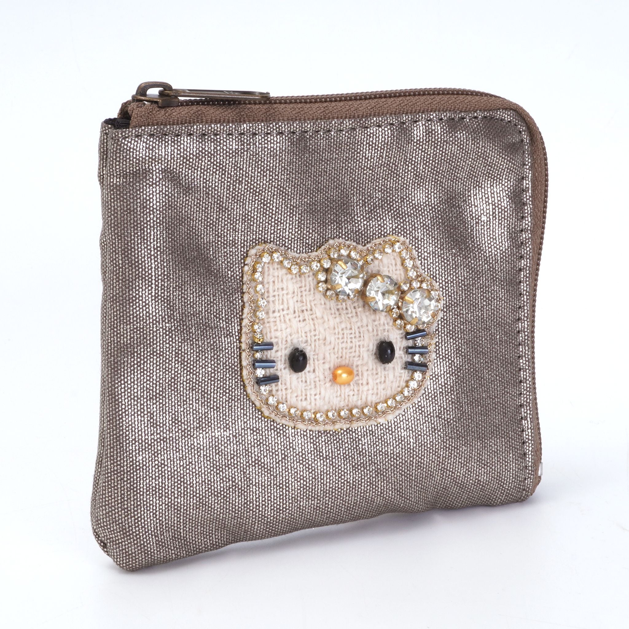ビーズ刺繍でデザインされたハローキティのメタリックコインケース。ハローキティモチーフはダイヤレーンで囲まれており、心がときめく、キラキラデザインです。コインケースはコットンの生地にオリジナルの箔プリントを施しており上品な輝きが多くの方に支持いただいております。