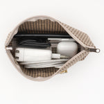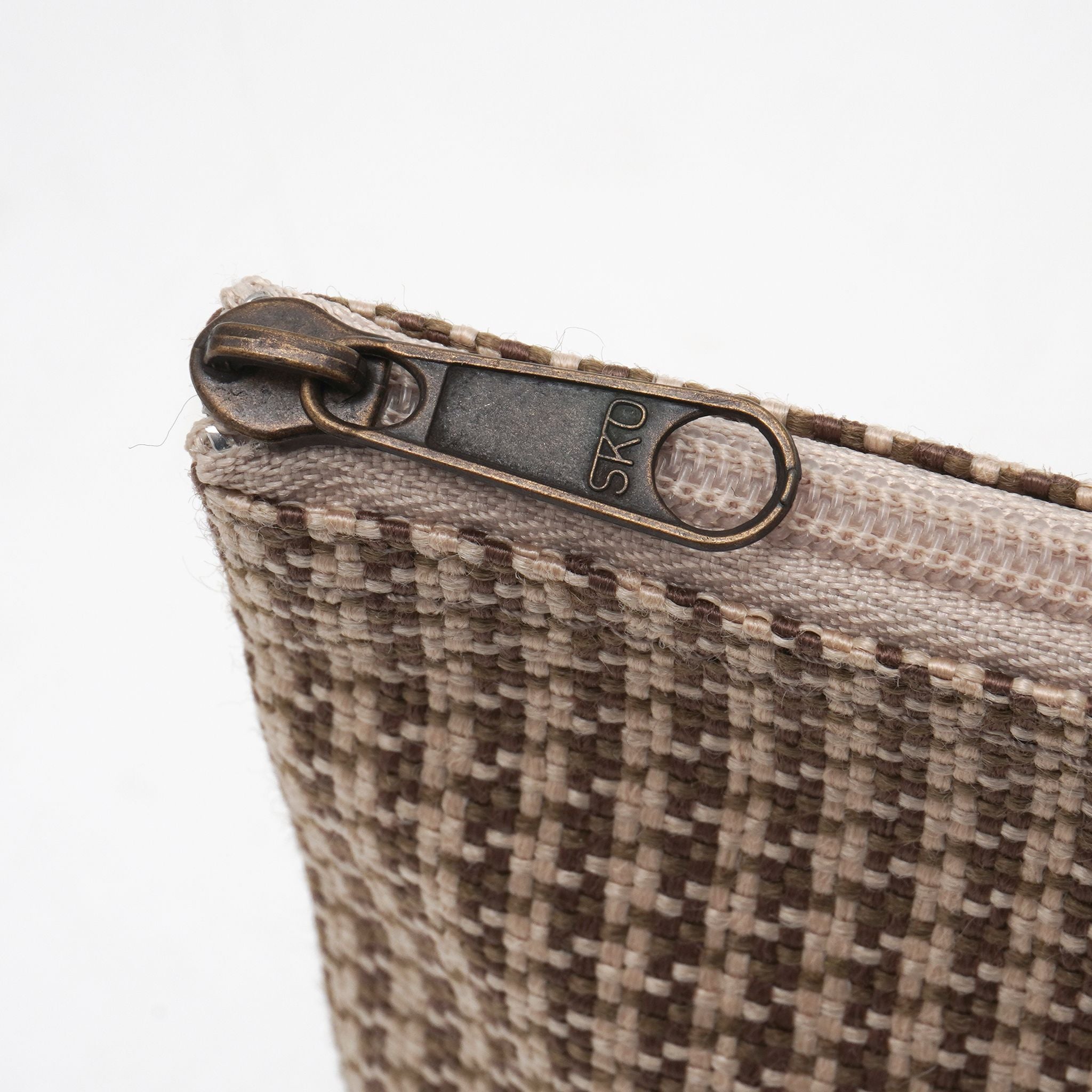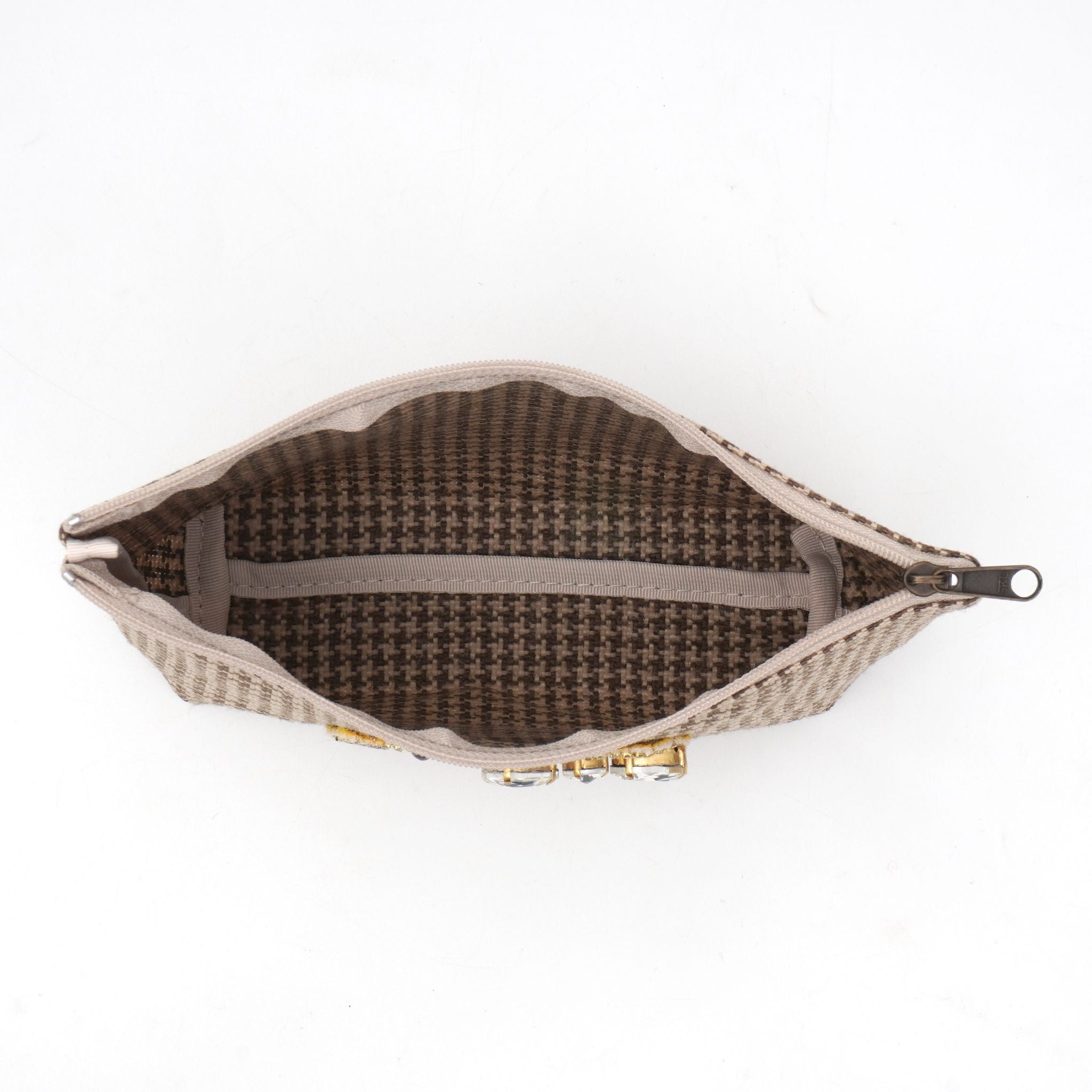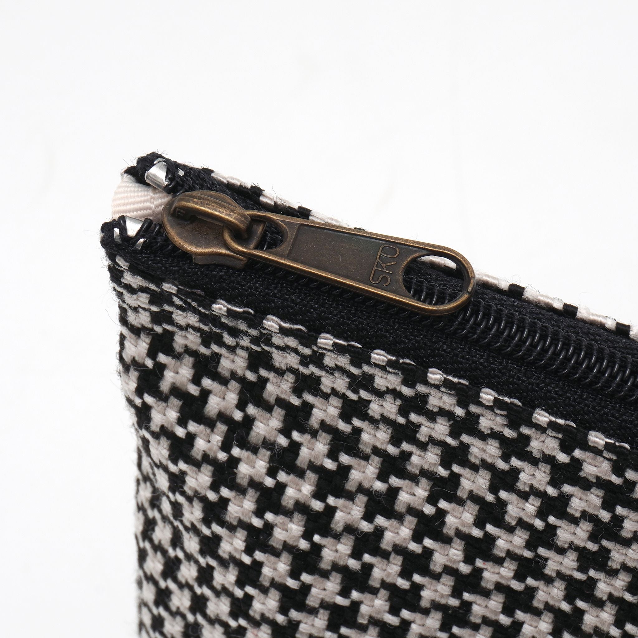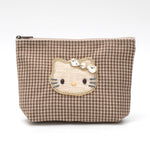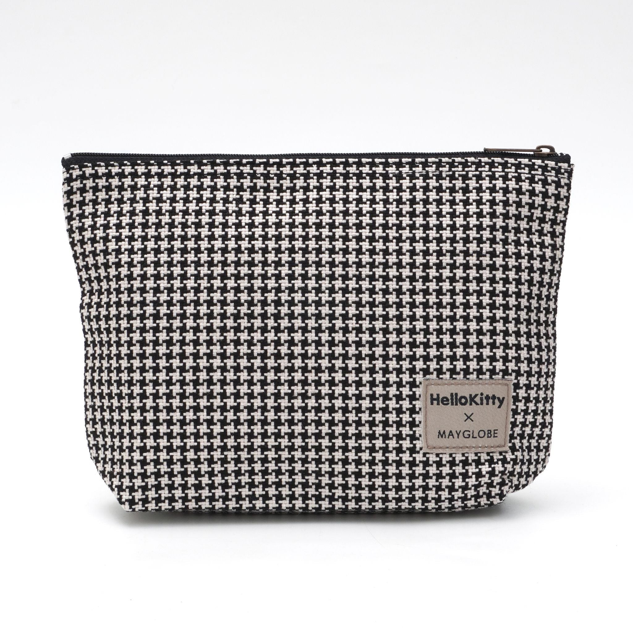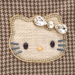 クラシカルな千鳥格子柄に、きらめくキティのビジューモチーフをあしらった舟形ポーチ。落ち着いたブラウンとシックなブラックの2色展開で、上品な雰囲気の中に可愛らしさをプラスします。マチが広く自立する形で、コスメや小物をたっぷり収納できる実用的なサイズ感。デイリー使いにもギフトにもぴったりな、大人かわいいポーチです。