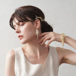 耳元で軽やかに揺れるその動きは、まるで女性のしなやかさや柔らかさを体現しているかのよう。ドレスアップした装いに物語を紡ぐような気品を添え、いつものあなたをワンランク上の印象へと導きます。