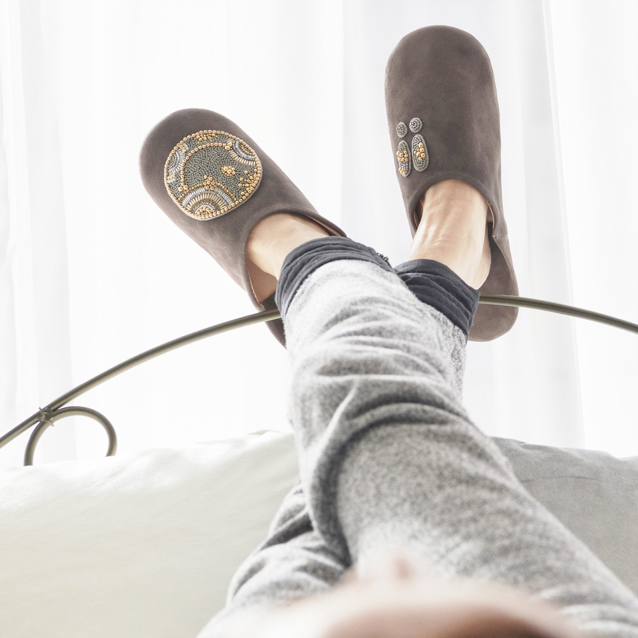 バブーシュ本体は、柔らかく、暖かい上に通気性がよく蒸れにくいので、一年中快適に履いていただけます。