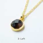 シンプルなフォルムの中に、天然石の個性とゴールドの上品な光沢が際立つデザイン。角度によって異なる表情を見せる天然石の魅力を、ぜひ胸元で感じてみて。