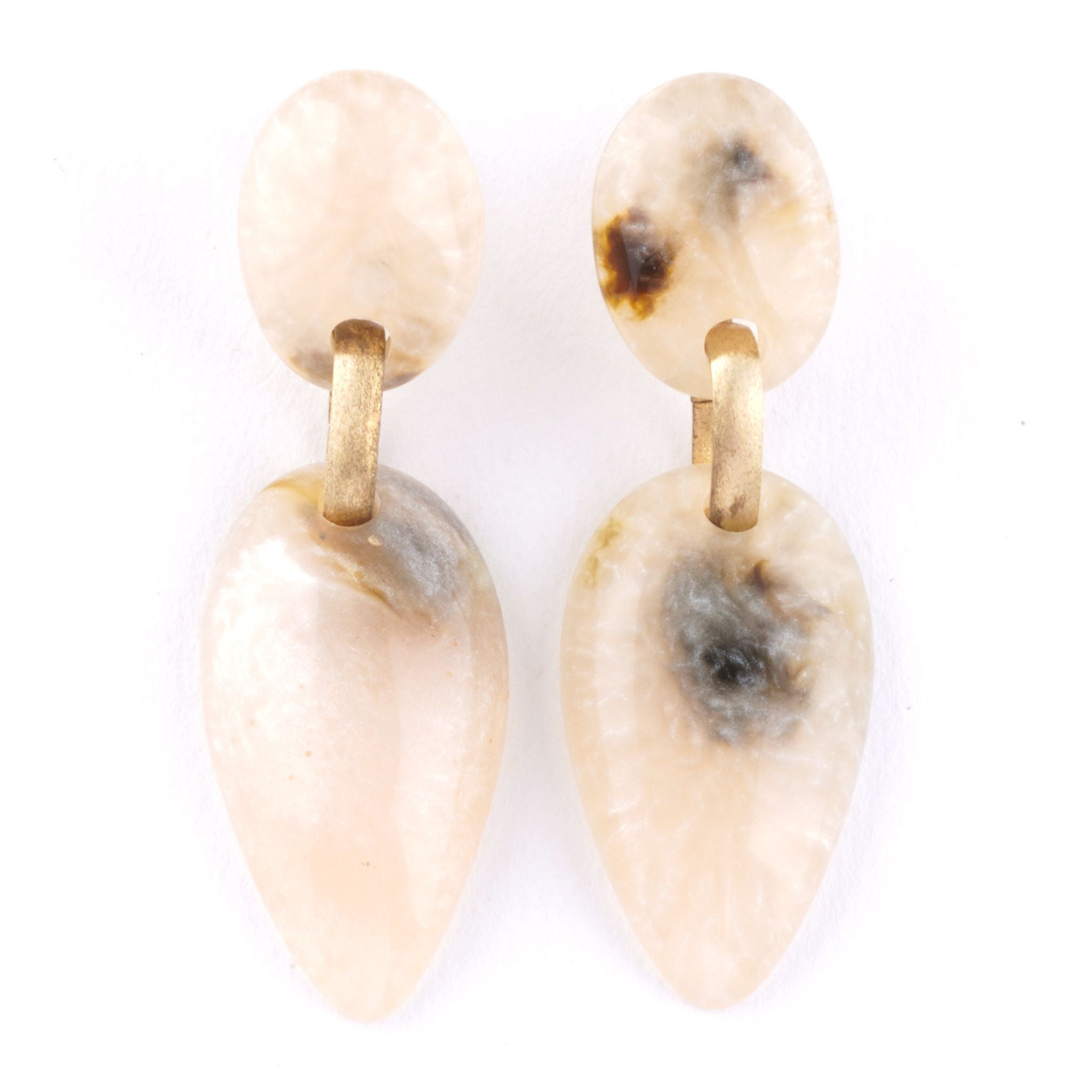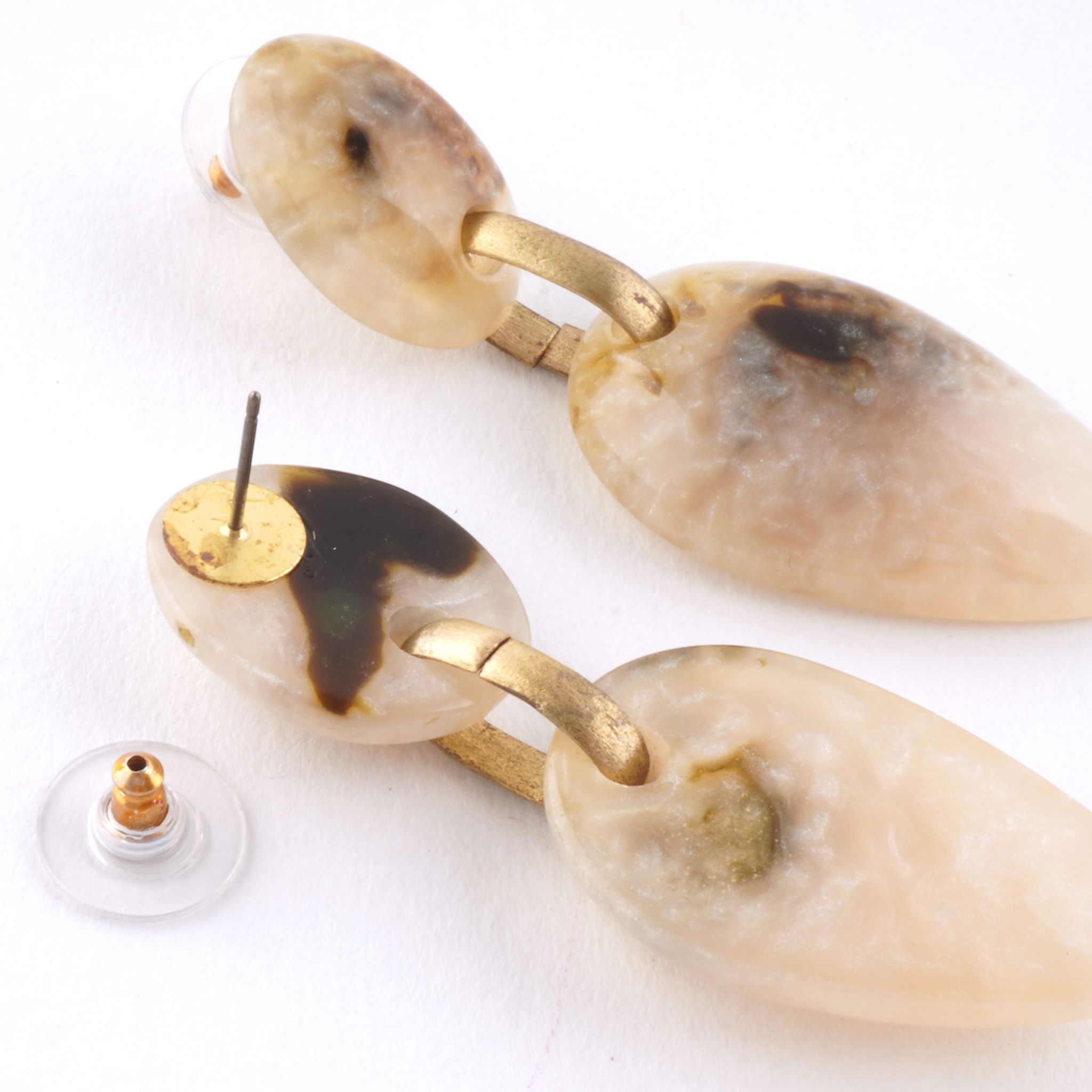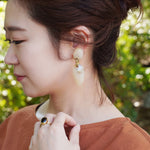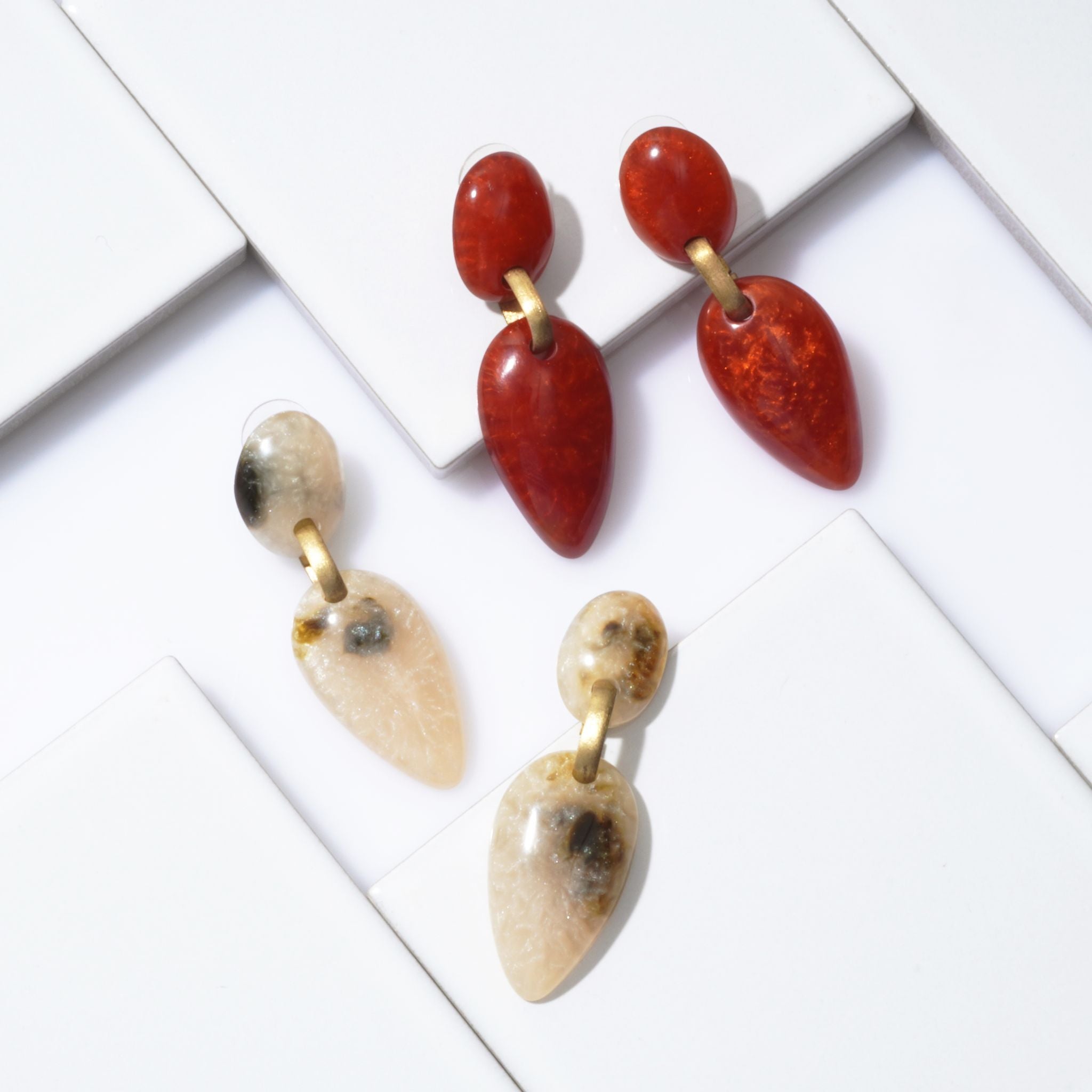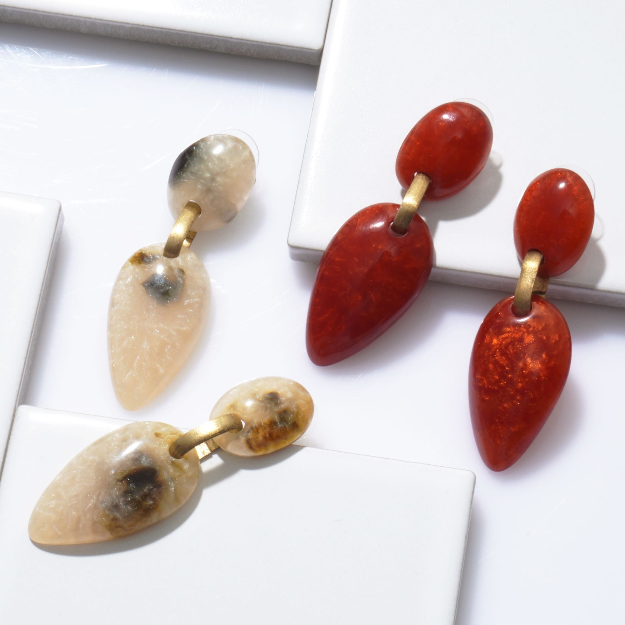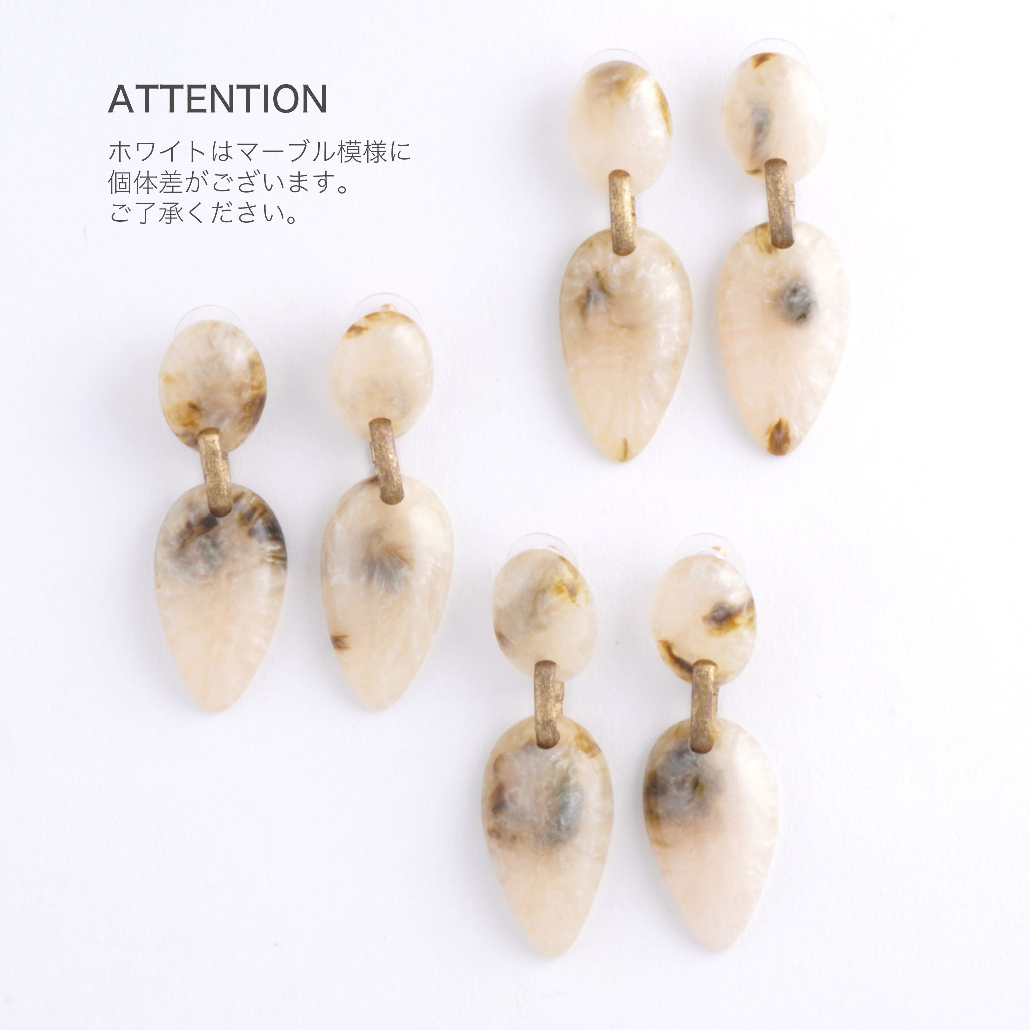 さりげないマーブルのモチーフがゆらゆらと揺れ存在感があります。差し色になるアイテムでパーティーシーンでも活躍してくれます。ゆらゆらと揺れるアイテムは視線を集めます。