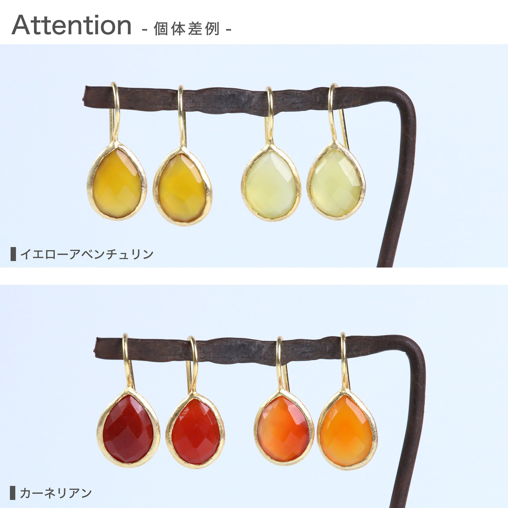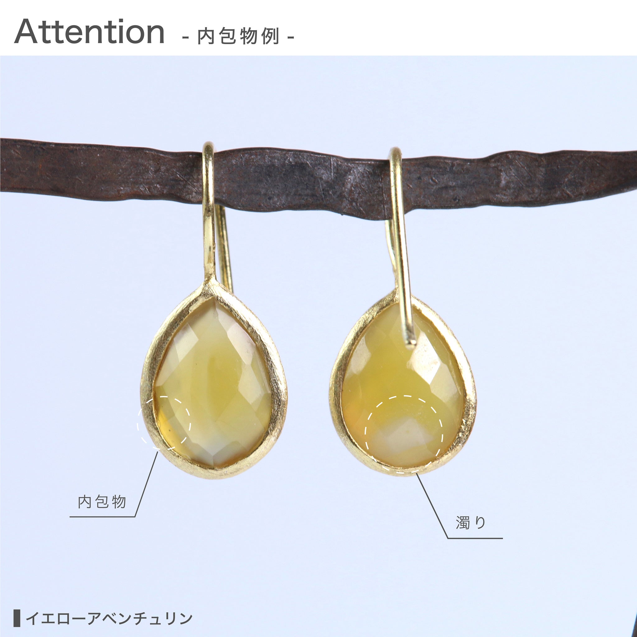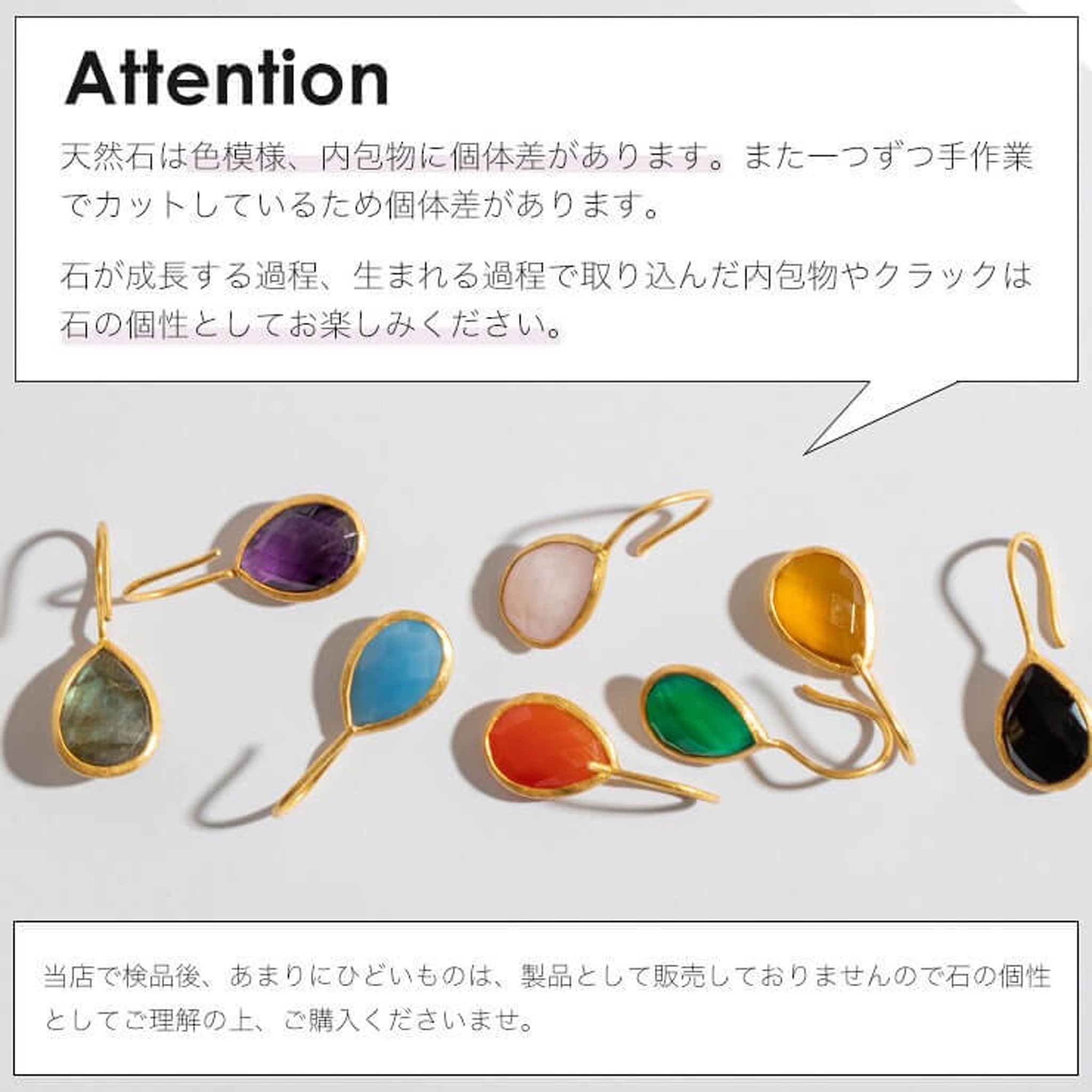 天然石は色や模様に個体差があります。石が成長する過程、生まれる過程で取り込んだ内包物やクラックは石の個性としてお楽しみください。