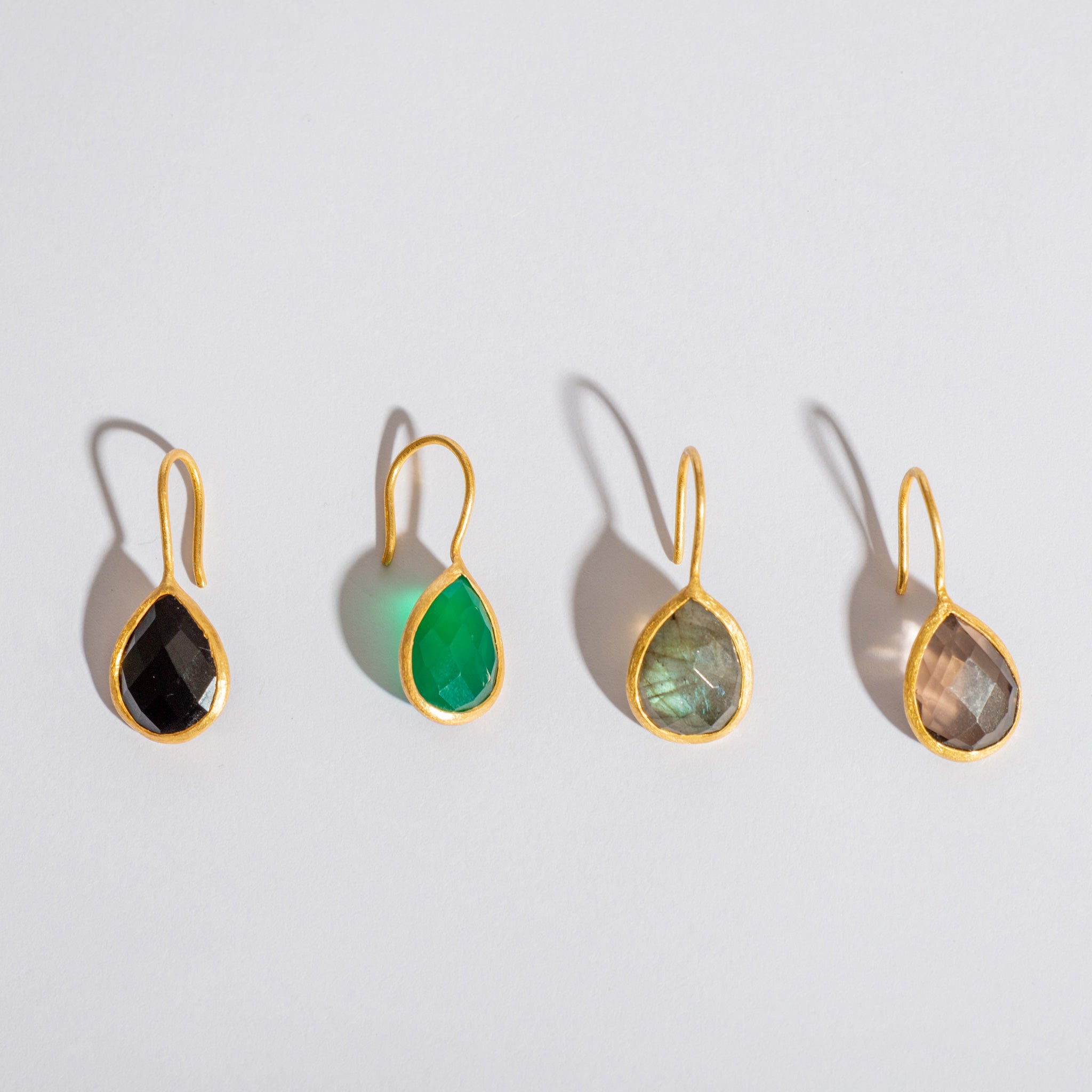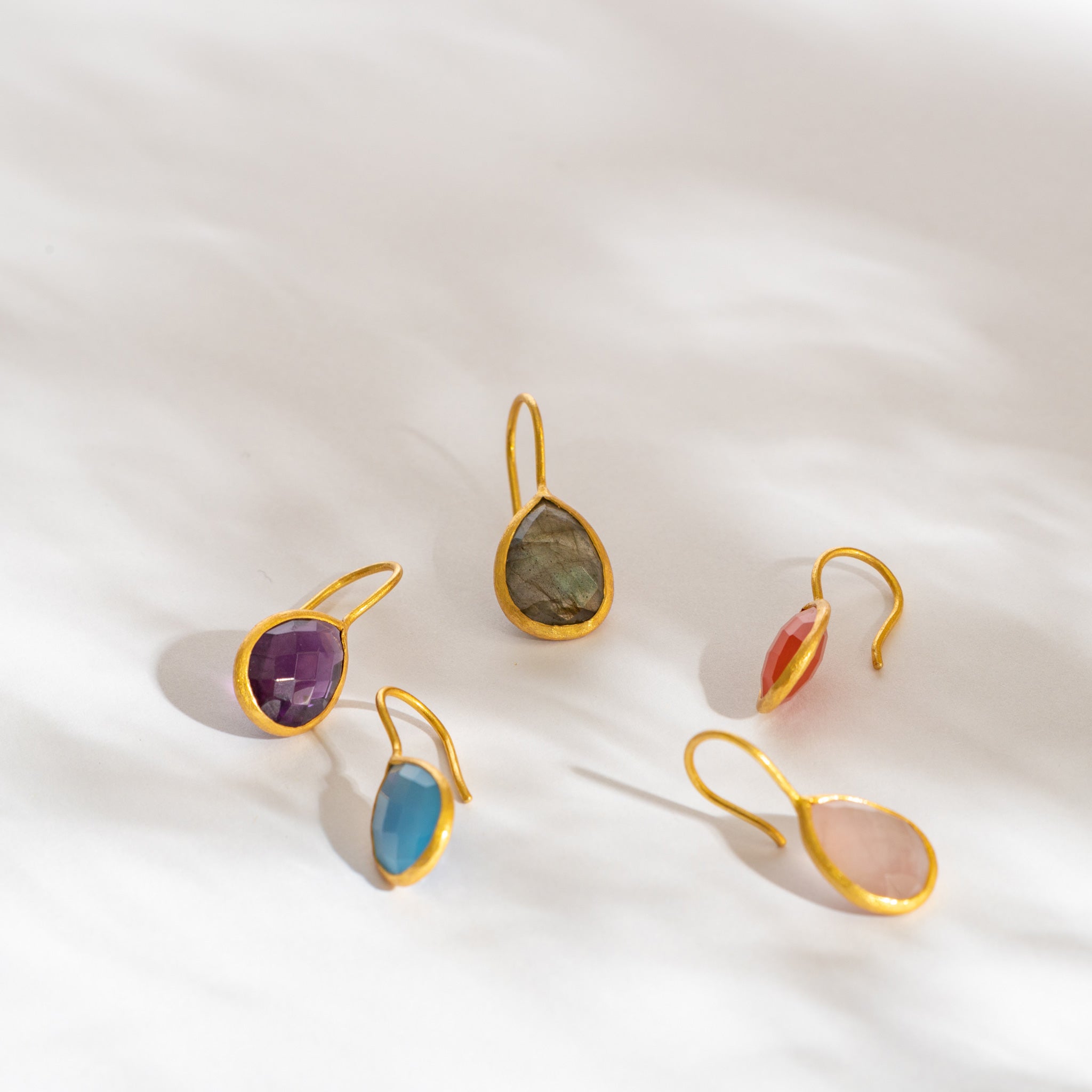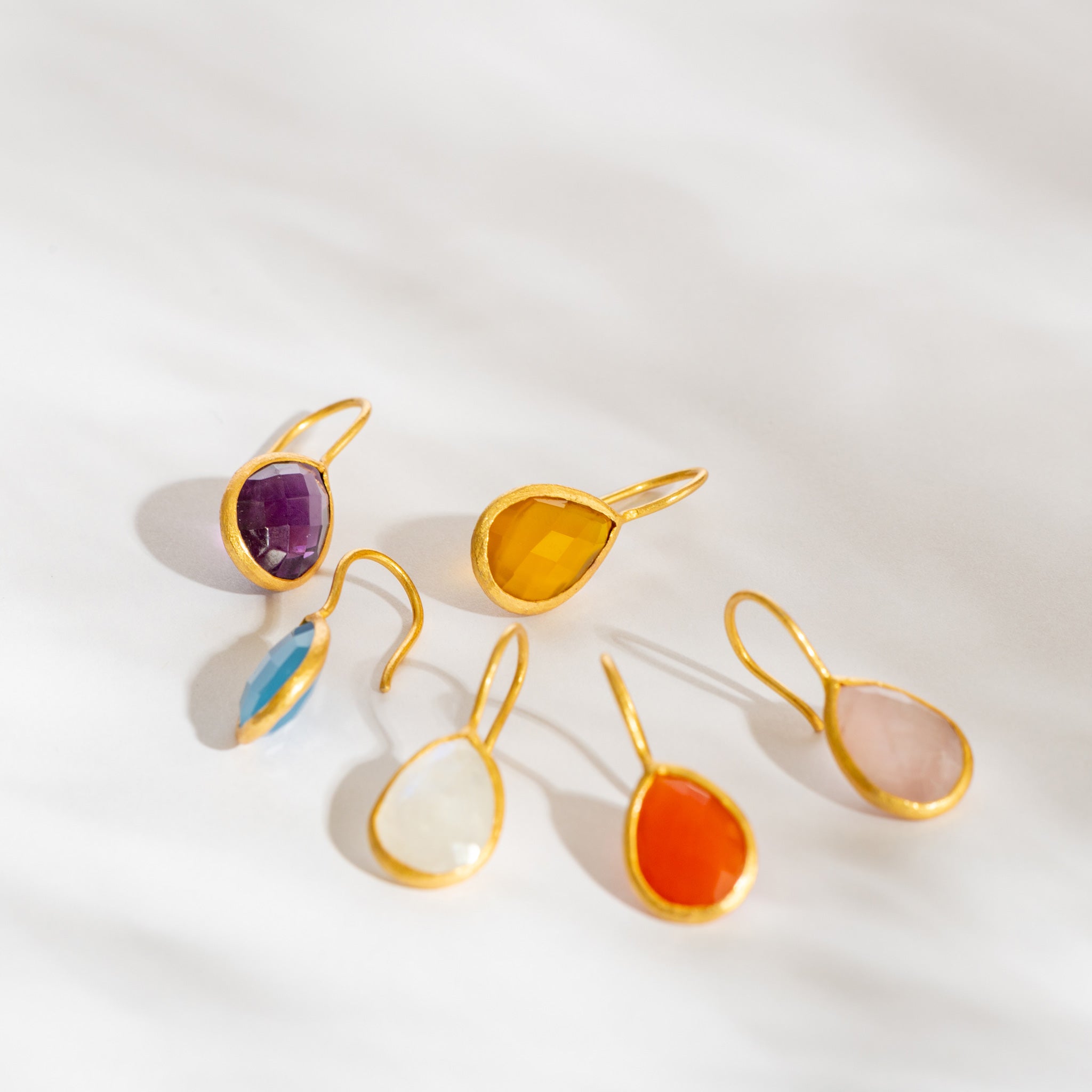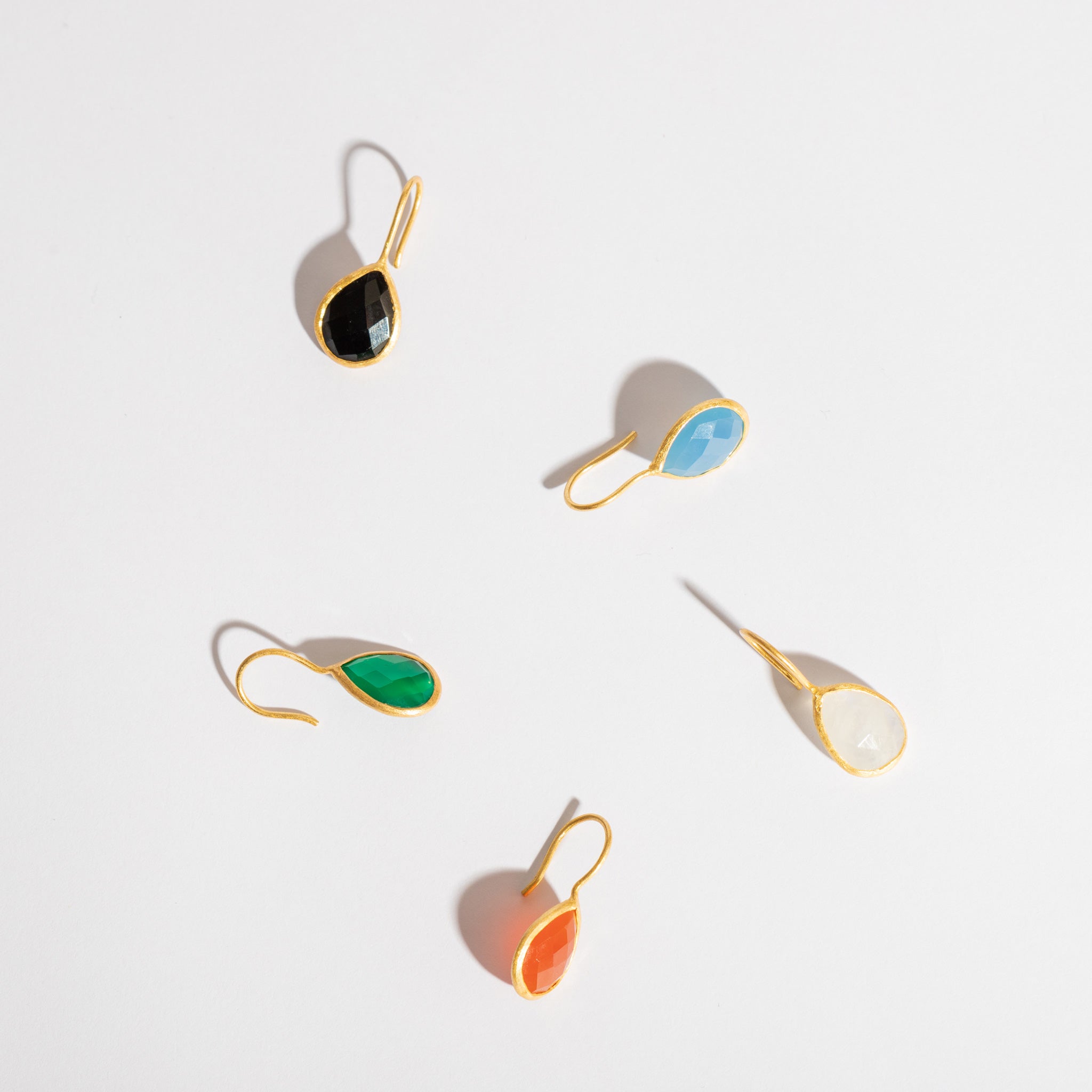 インド・ジャイプールで厳選された良質の天然石。厳選した10種類の石にキラキラと石を輝かせるカッティングを施した華やかティアドロップピアス。