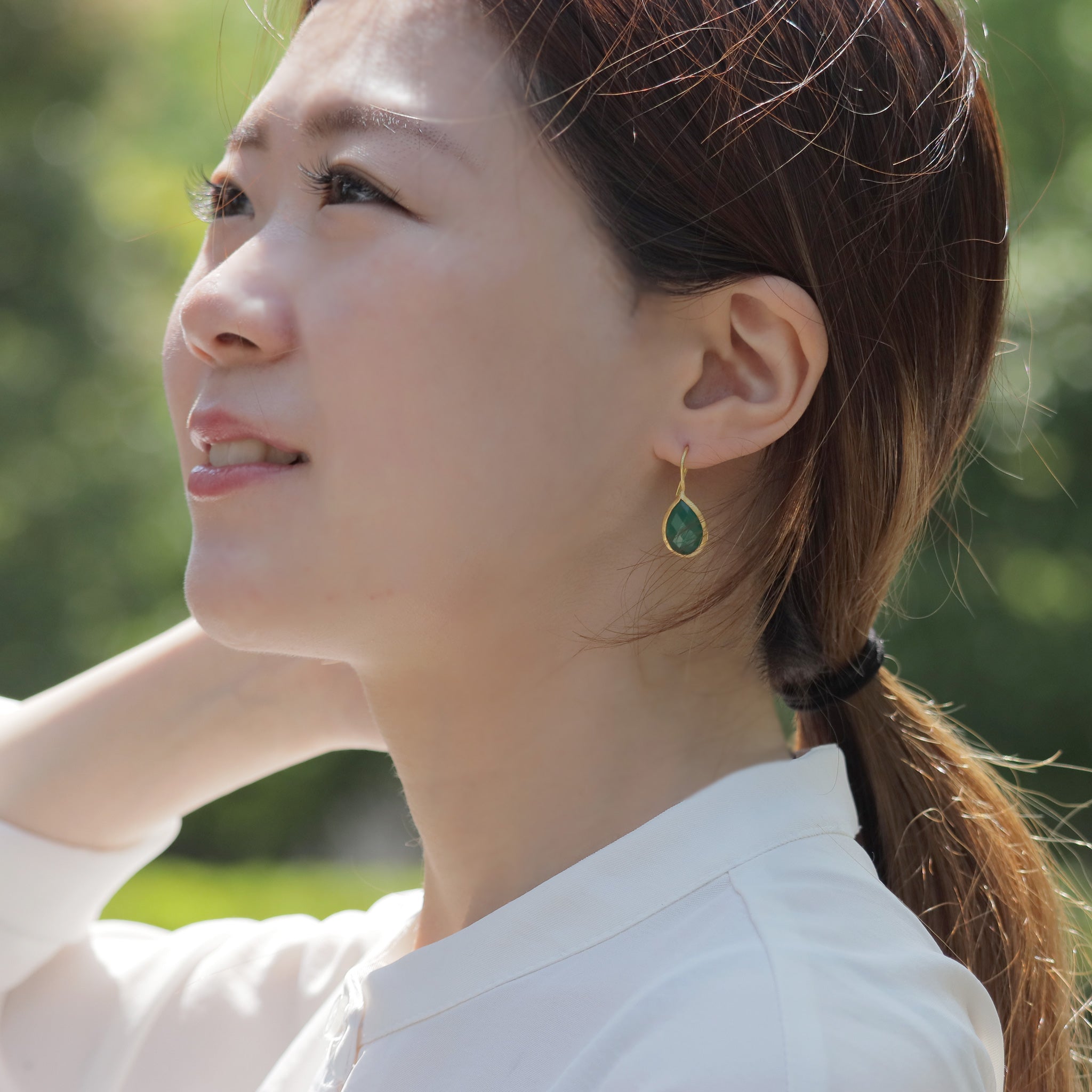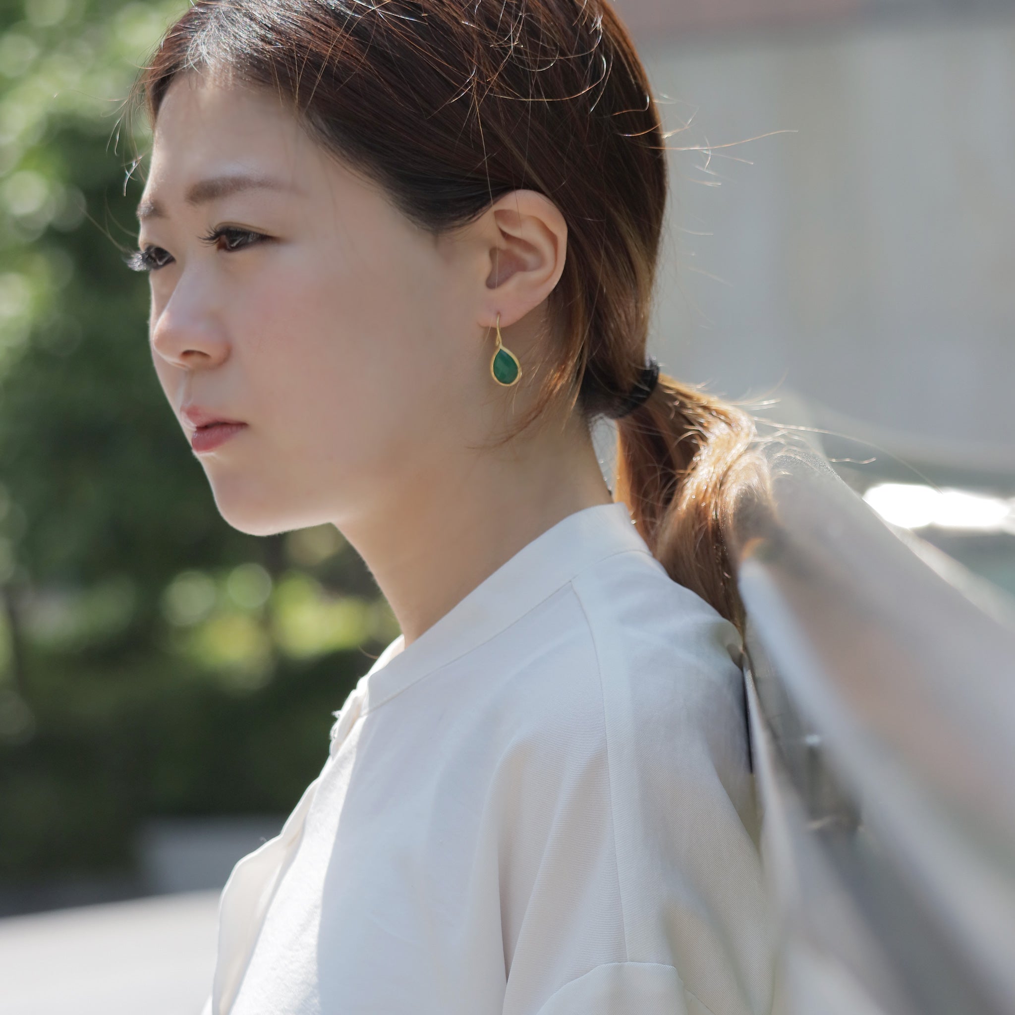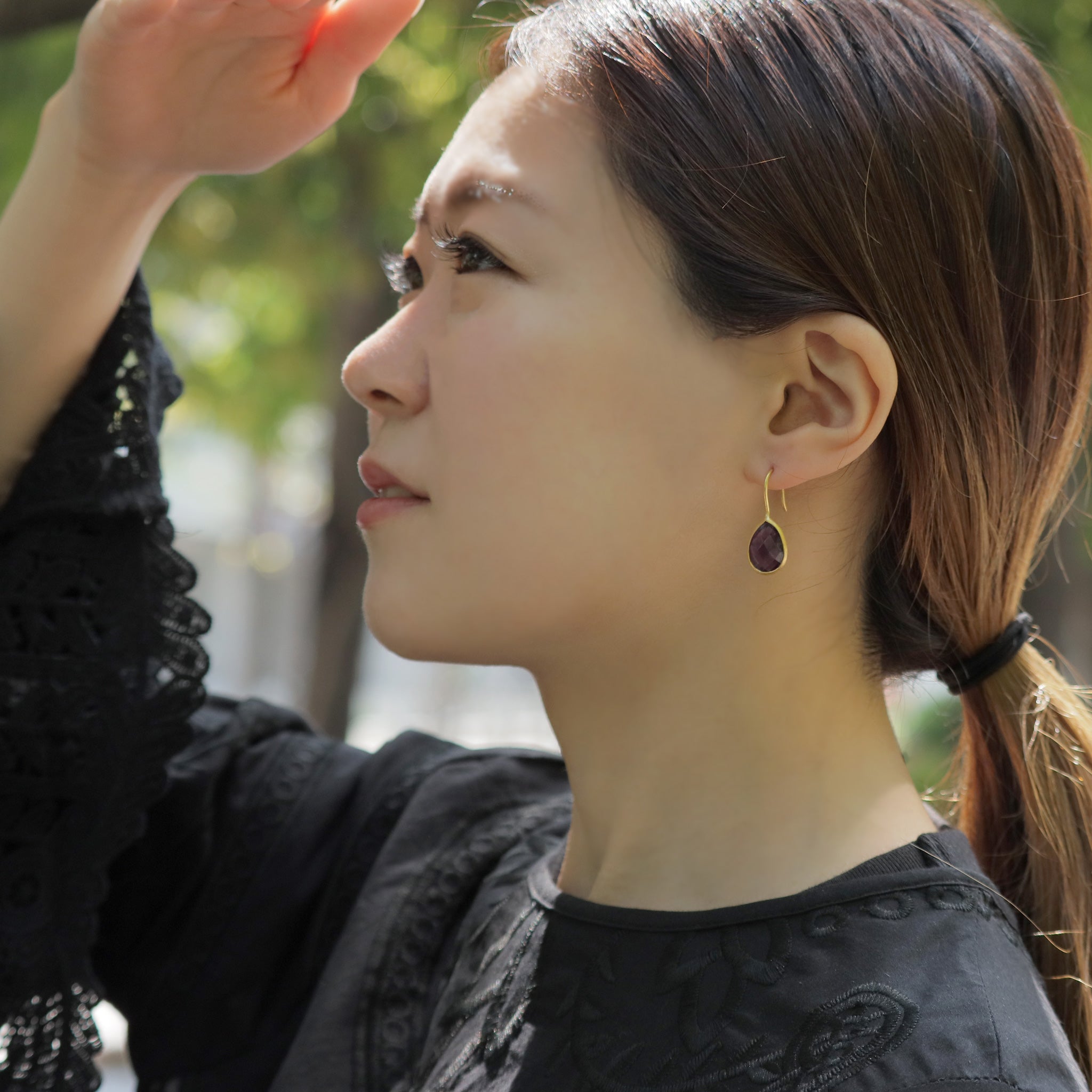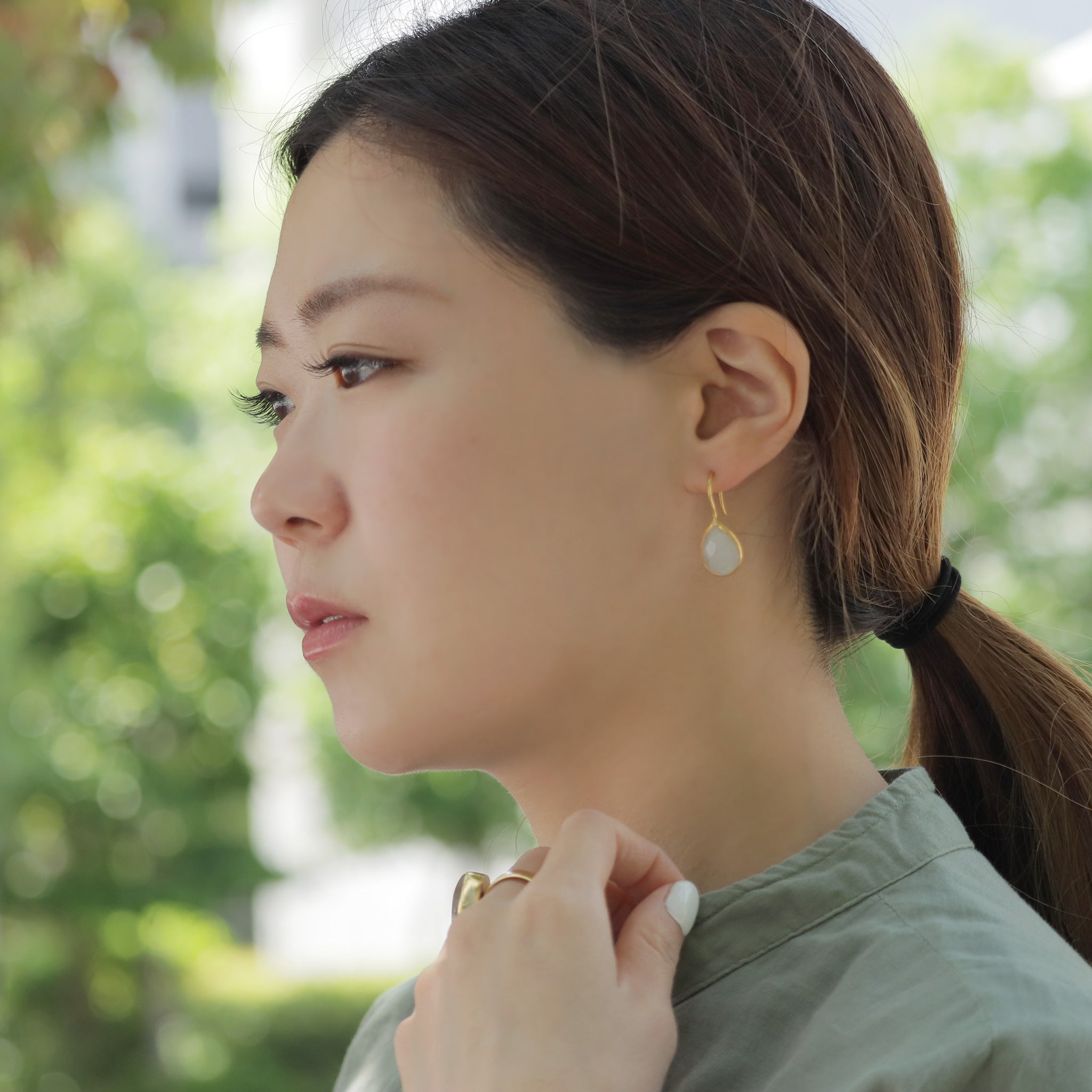 潤いのある透明感のあるティアドロップモチーフは、アクセントになる程よいボリューム感。