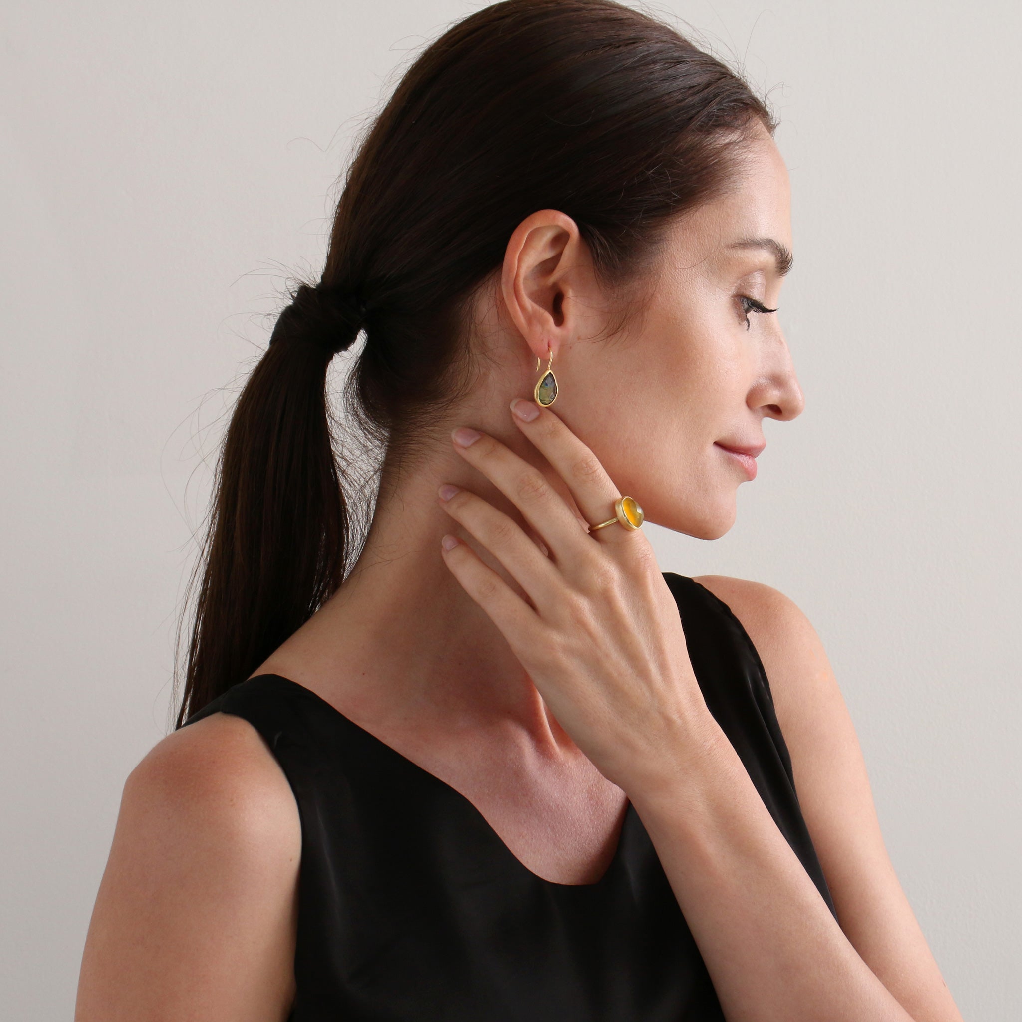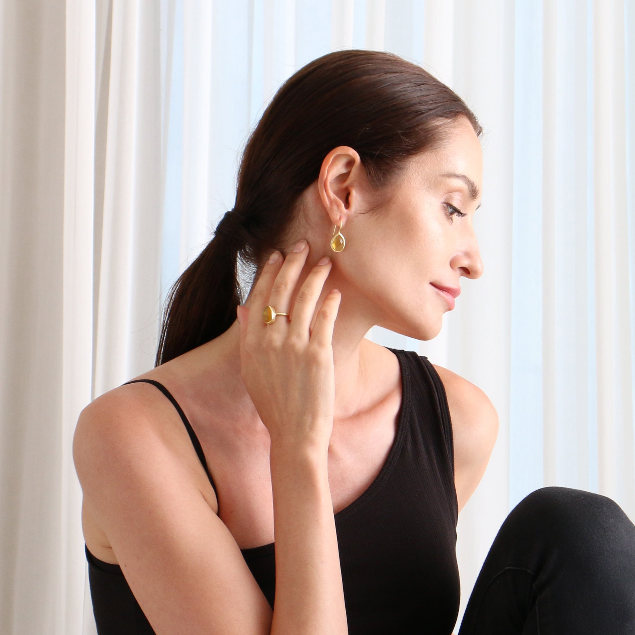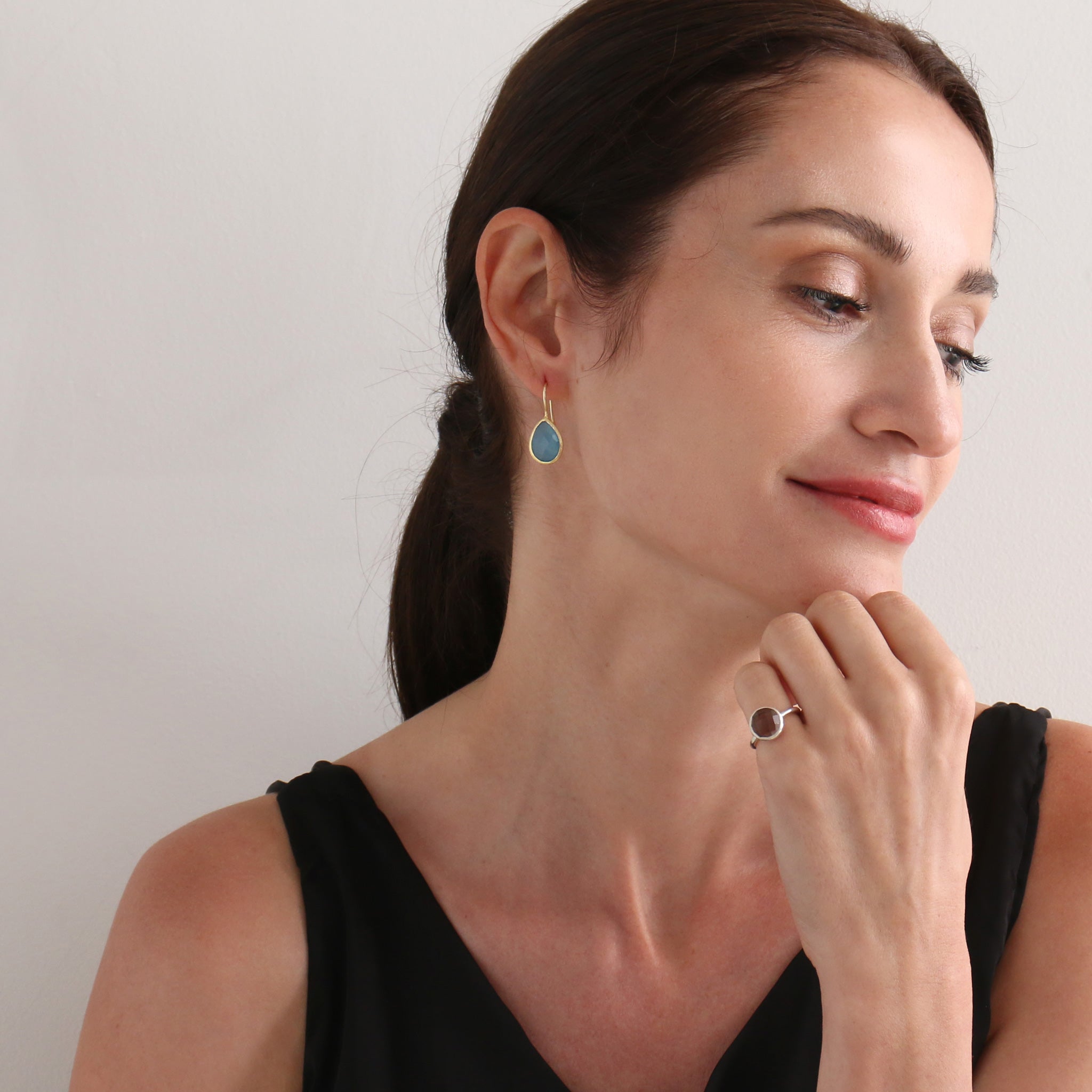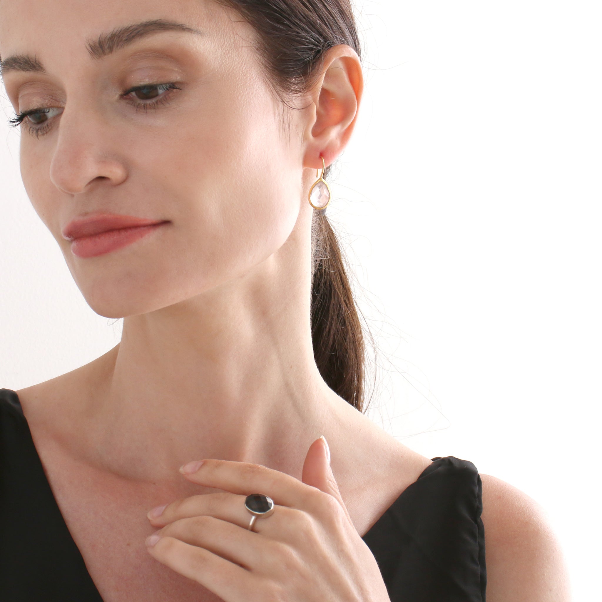 潤いのある透明感のあるティアドロップモチーフは、アクセントになる程よいボリューム感。