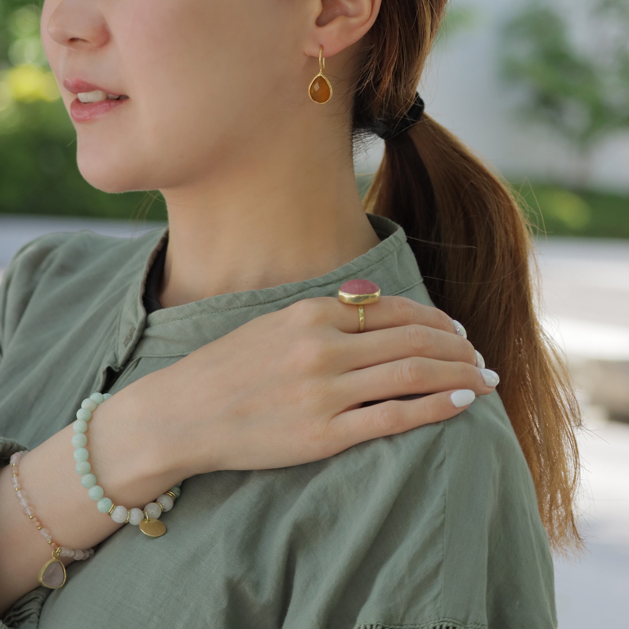 光すぎない金属の真鍮と天然石の組み合わせが気に入っています.他の石のも欲しくなりました.