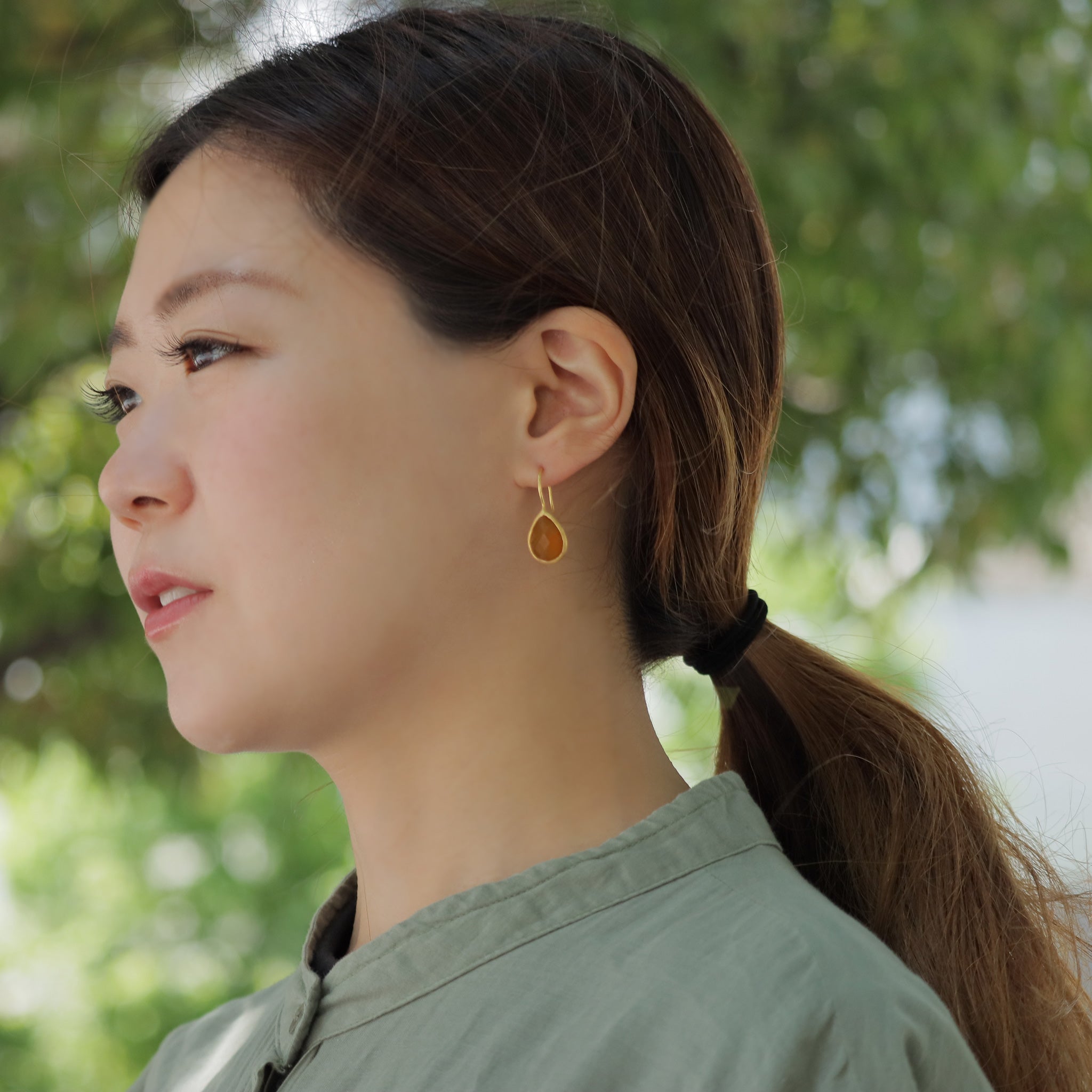 お気に入りピアスになりました。光すぎない金属の真鍮と天然石の組み合わせが気に入っています。他の石のも欲しくなりました。