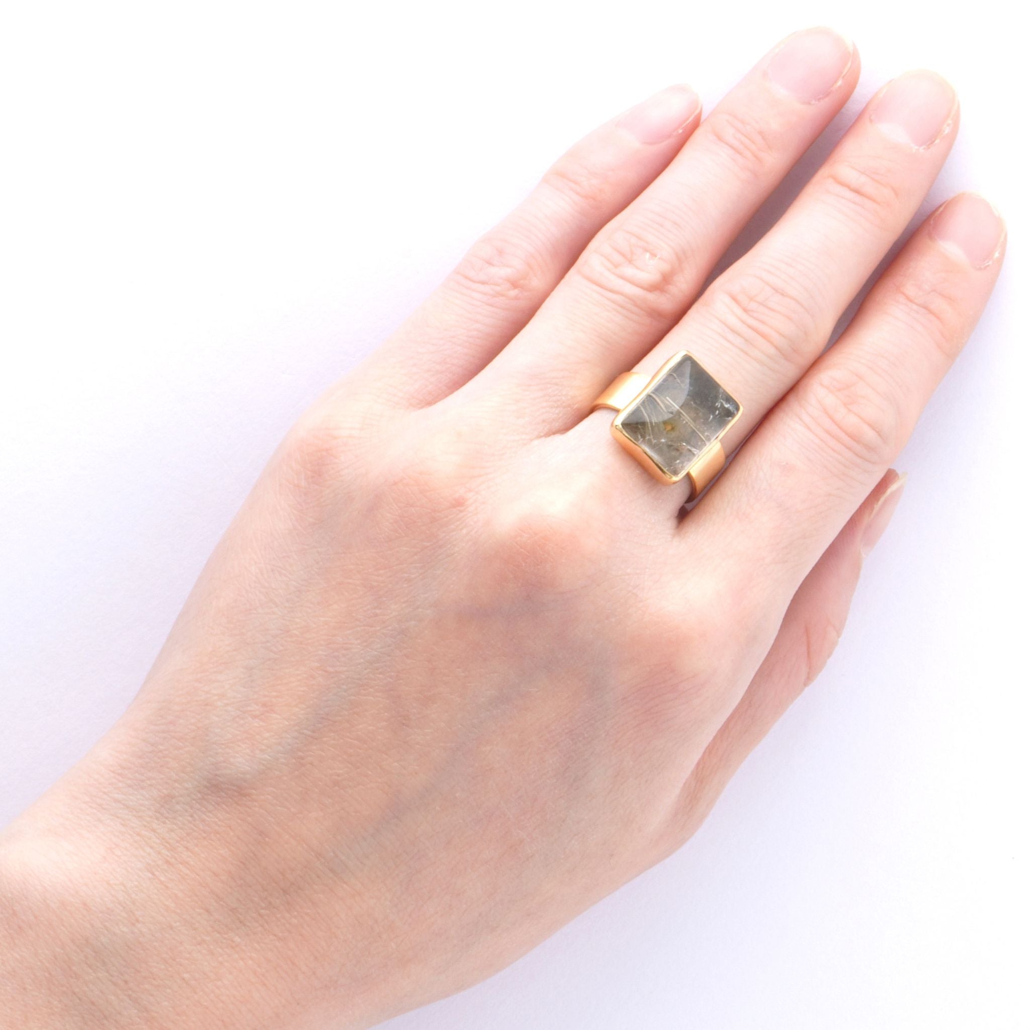大ぶりの天然石が、まるでアートのように輝くリング。 身に着けるだけで、シンプルなコーデも一気に洗練された印象に。