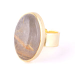 大ぶりの天然石が、まるでアートのように輝くリング。 身に着けるだけで、シンプルなコーデも一気に洗練された印象に。