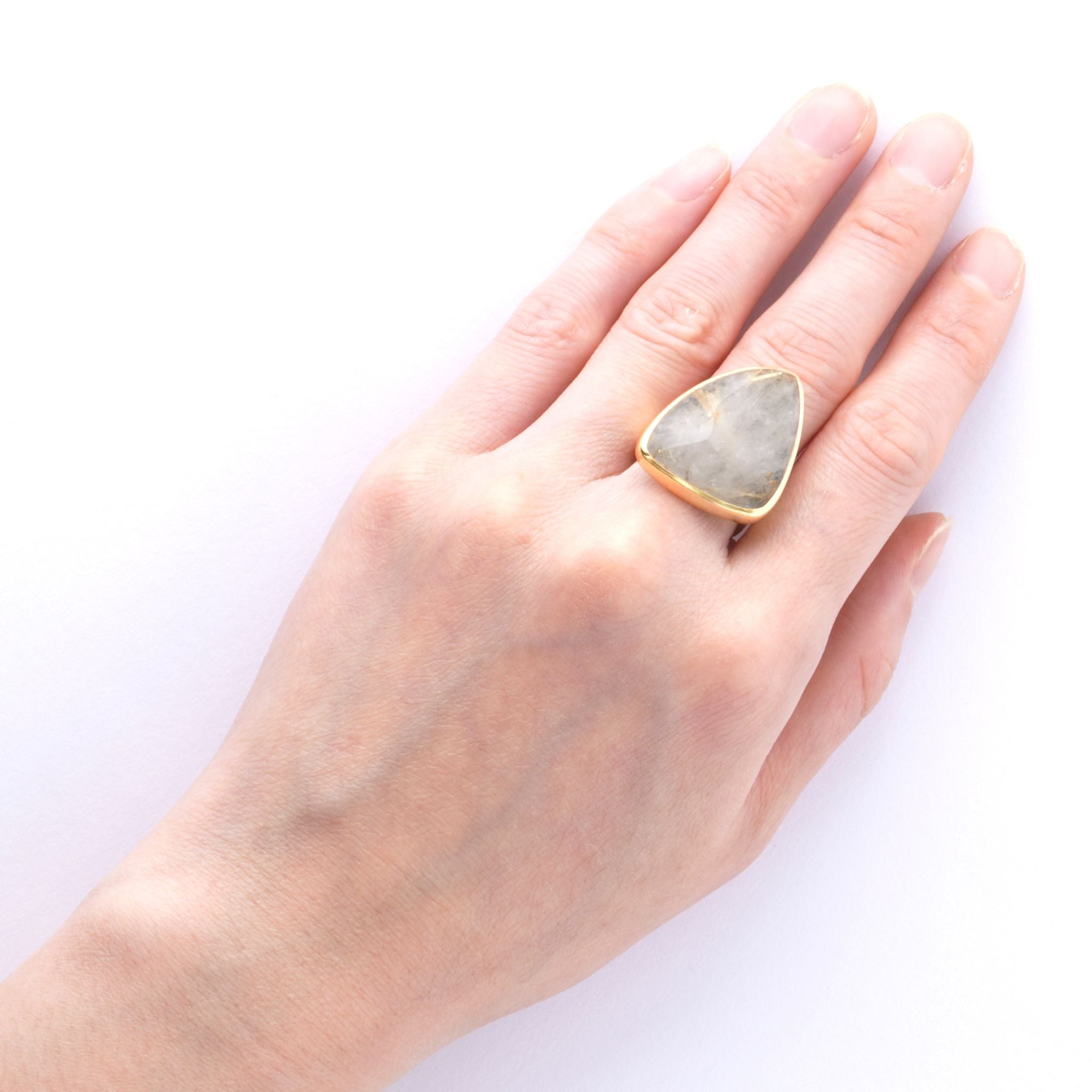 大ぶりの天然石が、まるでアートのように輝くリング。 身に着けるだけで、シンプルなコーデも一気に洗練された印象に。