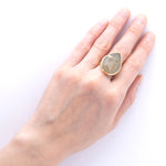 大ぶりの天然石が、まるでアートのように輝くリング。 身に着けるだけで、シンプルなコーデも一気に洗練された印象に。