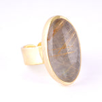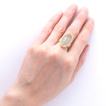 大ぶりの天然石が、まるでアートのように輝くリング。 身に着けるだけで、シンプルなコーデも一気に洗練された印象に。