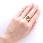 大ぶりの天然石が、まるでアートのように輝くリング。 身に着けるだけで、シンプルなコーデも一気に洗練された印象に。