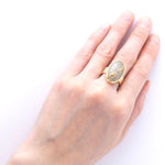 大ぶりの天然石が、まるでアートのように輝くリング。 身に着けるだけで、シンプルなコーデも一気に洗練された印象に。