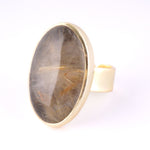 大ぶりの天然石が、まるでアートのように輝くリング。 身に着けるだけで、シンプルなコーデも一気に洗練された印象に。