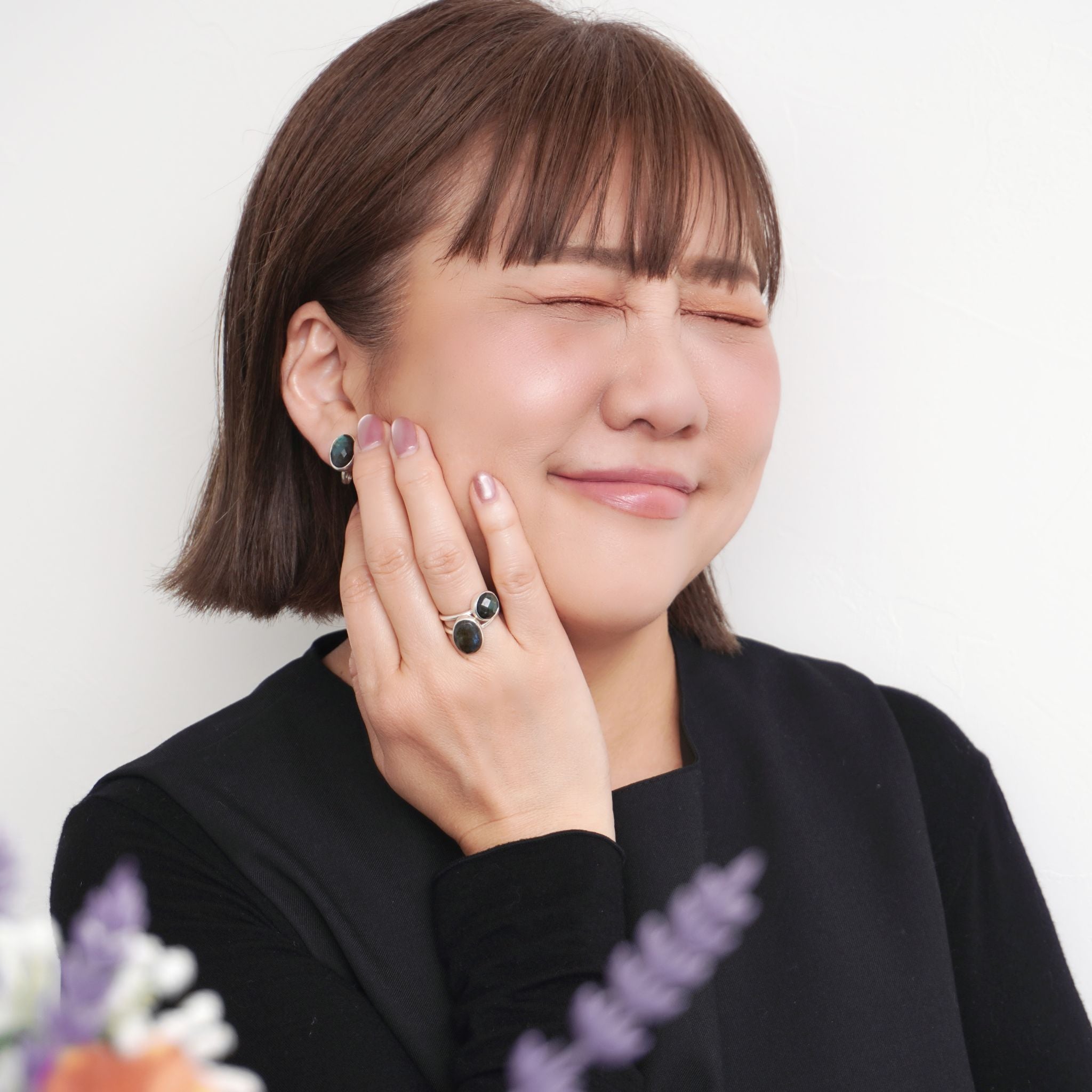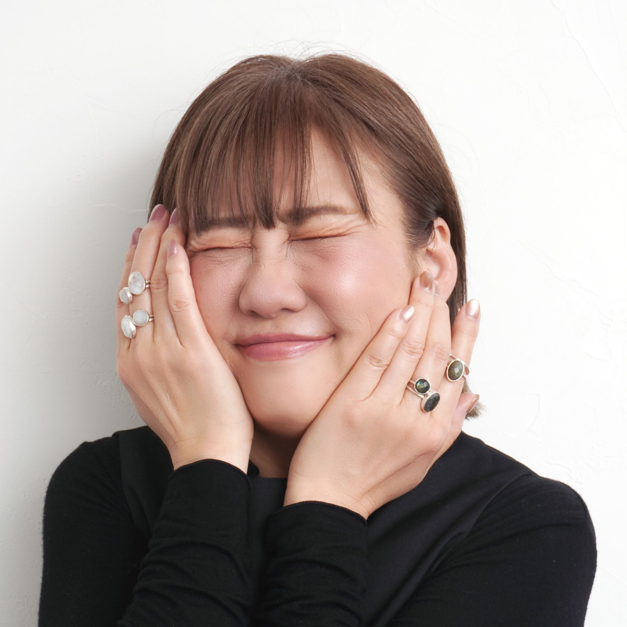 HASHIMOTO BEAUTY CHANNELとのコラボレーションから生まれた、天然石を贅沢に使用したスタッキングリング。見る角度によって表情が変わる神秘的な光が、指先に奥行きと魅力を与えます。シンプルながらも、天然石の個性が際立つデザインで、1本でも重ねても美しく決まります。