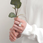 多面カット入りの天然石が、まるでアートのように輝くリング。 身に着けるだけで、シンプルなコーデも一気に洗練された印象に。
