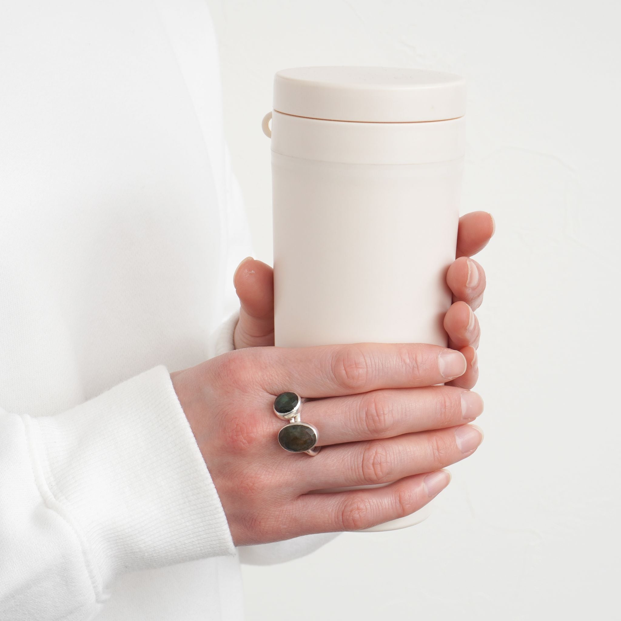 HASHIMOTO BEAUTY CHANNELの橋本さんとMAYGLOBEのコラボレーションから生まれた、ムーンストーン&ラブラドライトのスタッキングリング。指元をエレガントに彩るデザインで、単品使いはもちろん、重ね付けも楽しめる万能アイテムです。