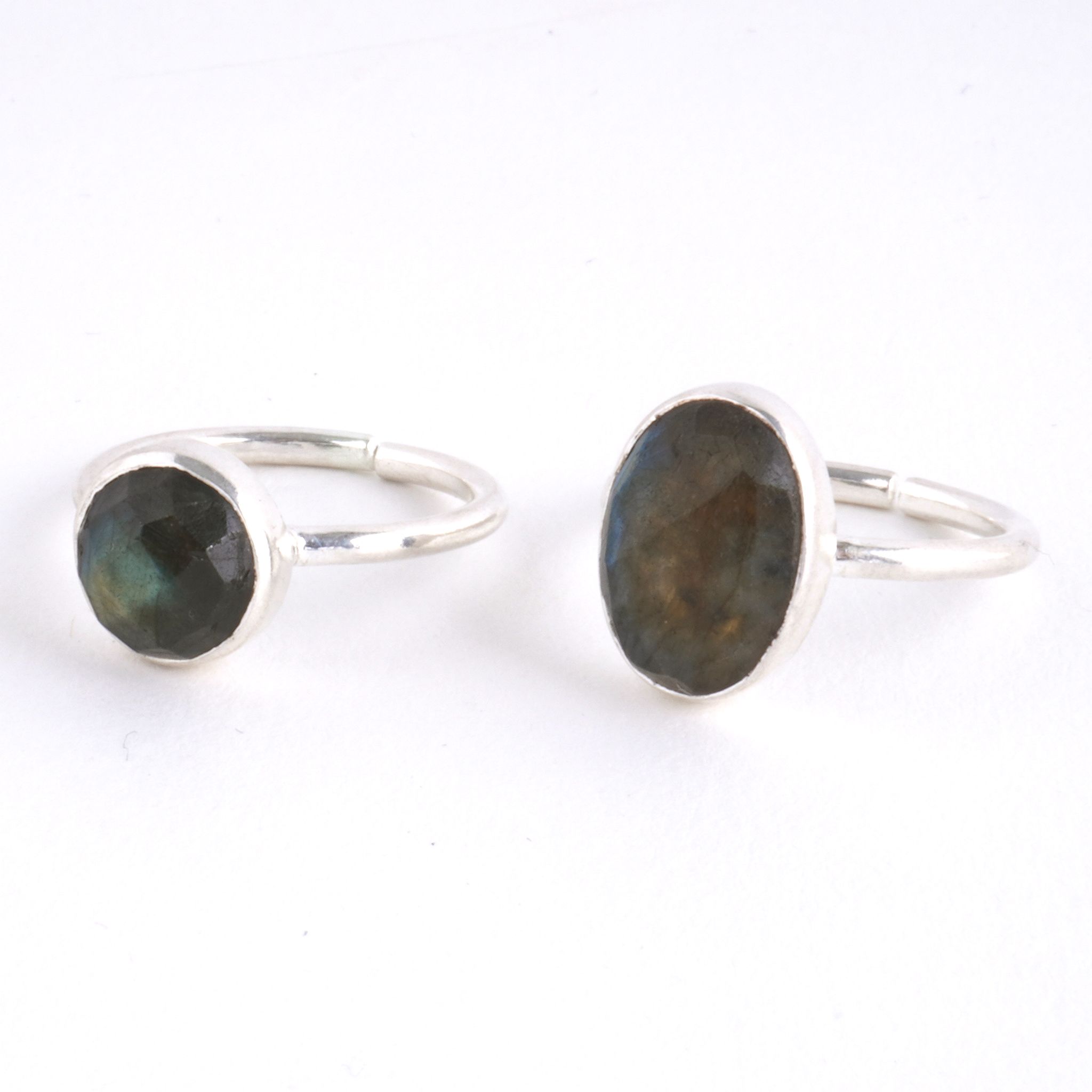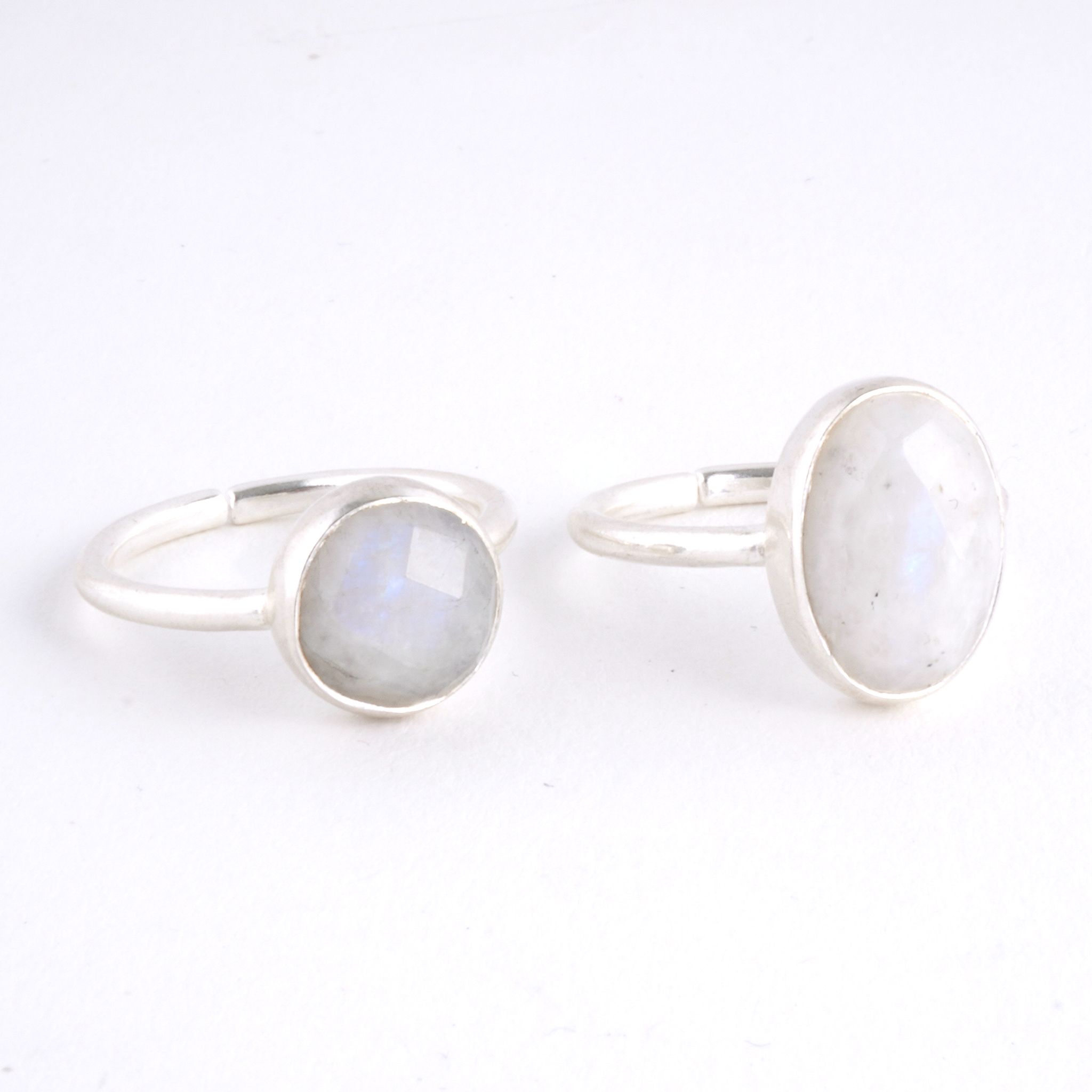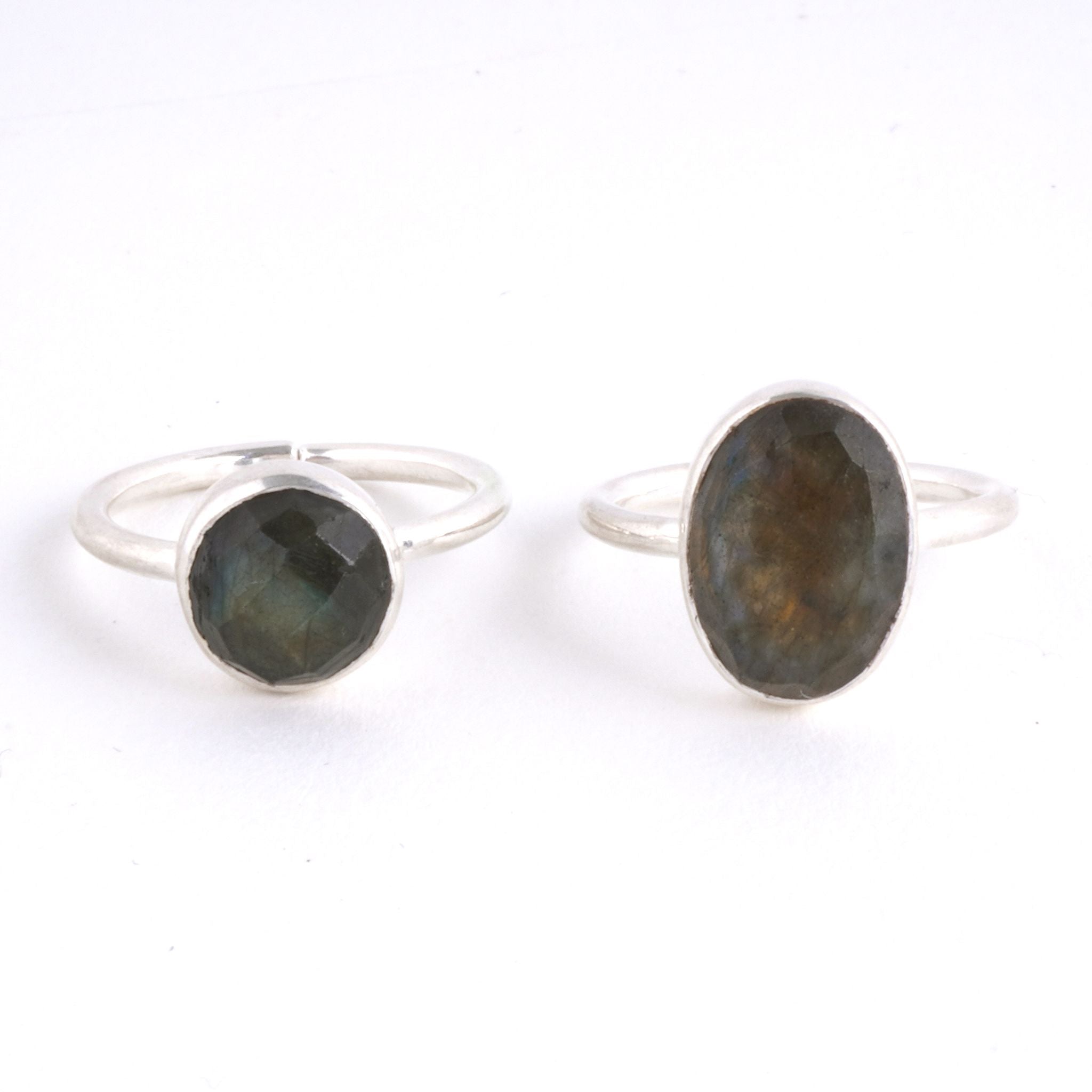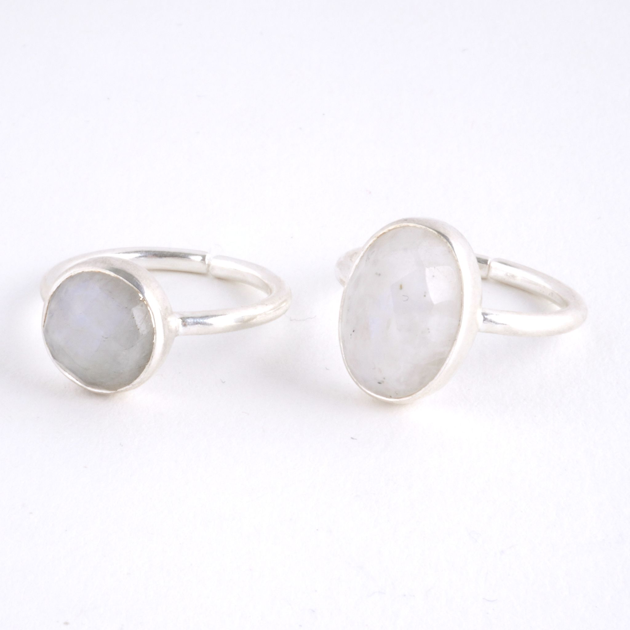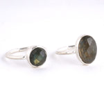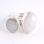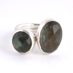 インド・ジャイプールで厳選された良質の天然石。厳選したムーンストーンとラブラドライトの石にキラキラと石を輝かせるカッティングを 施した華やかリング。