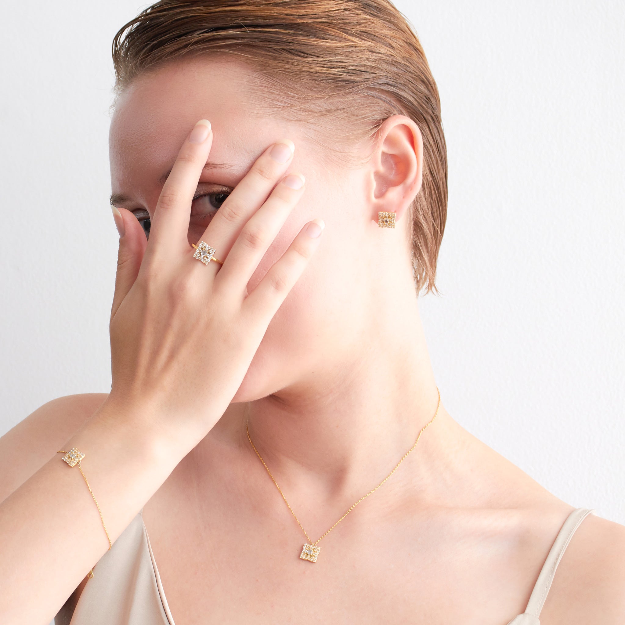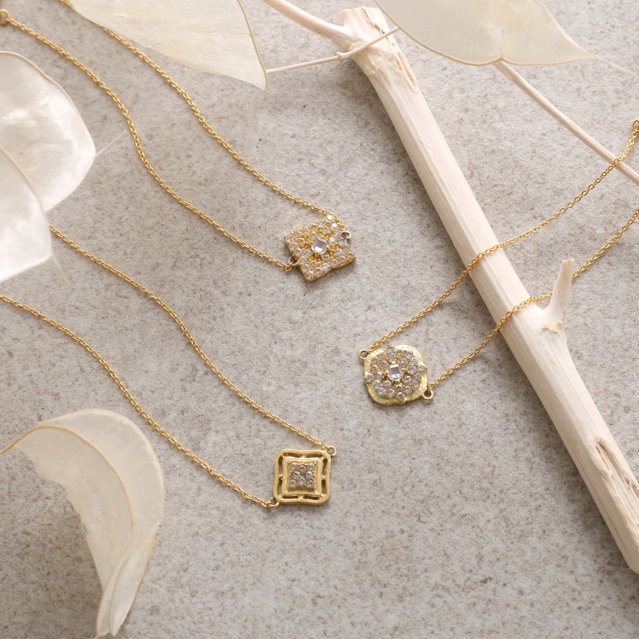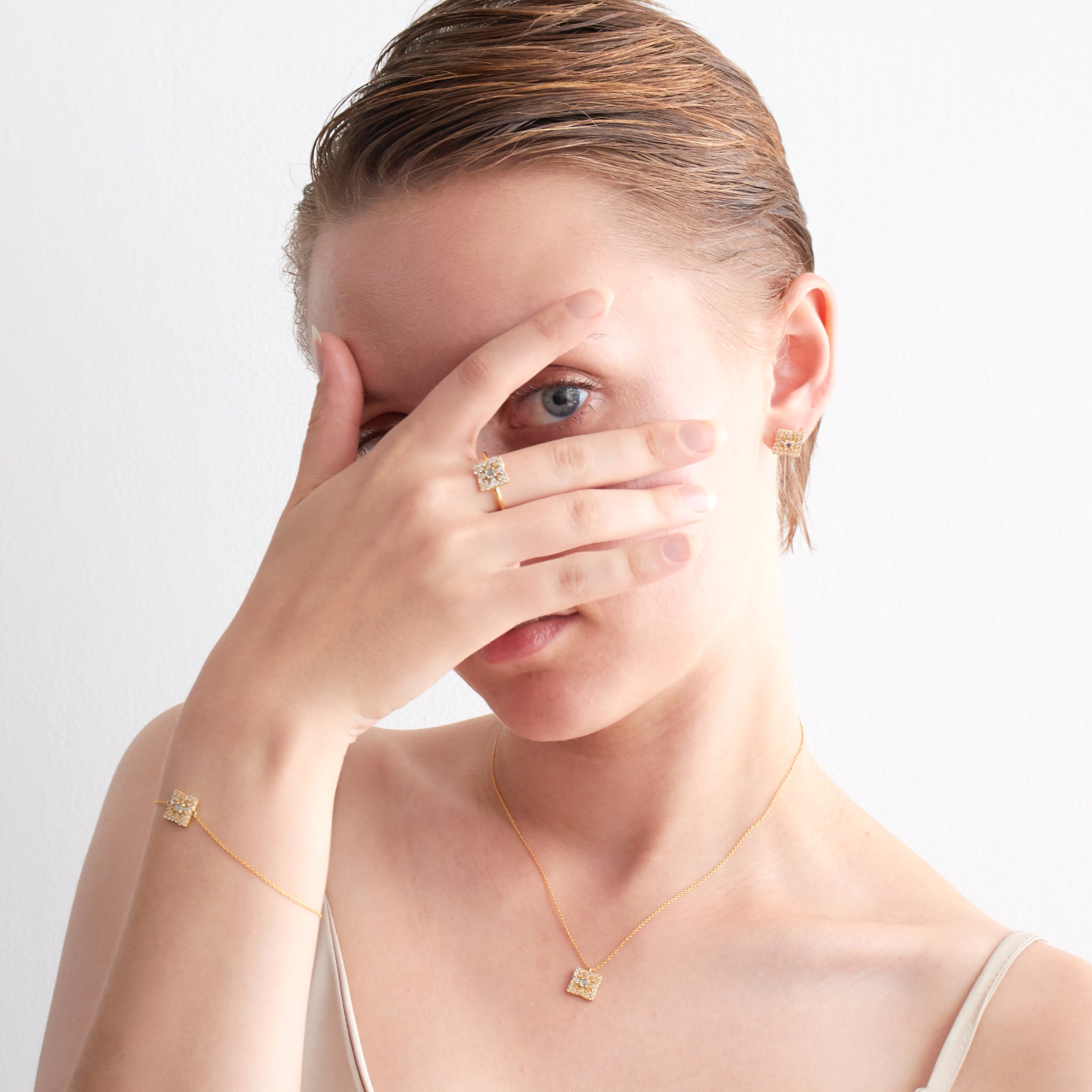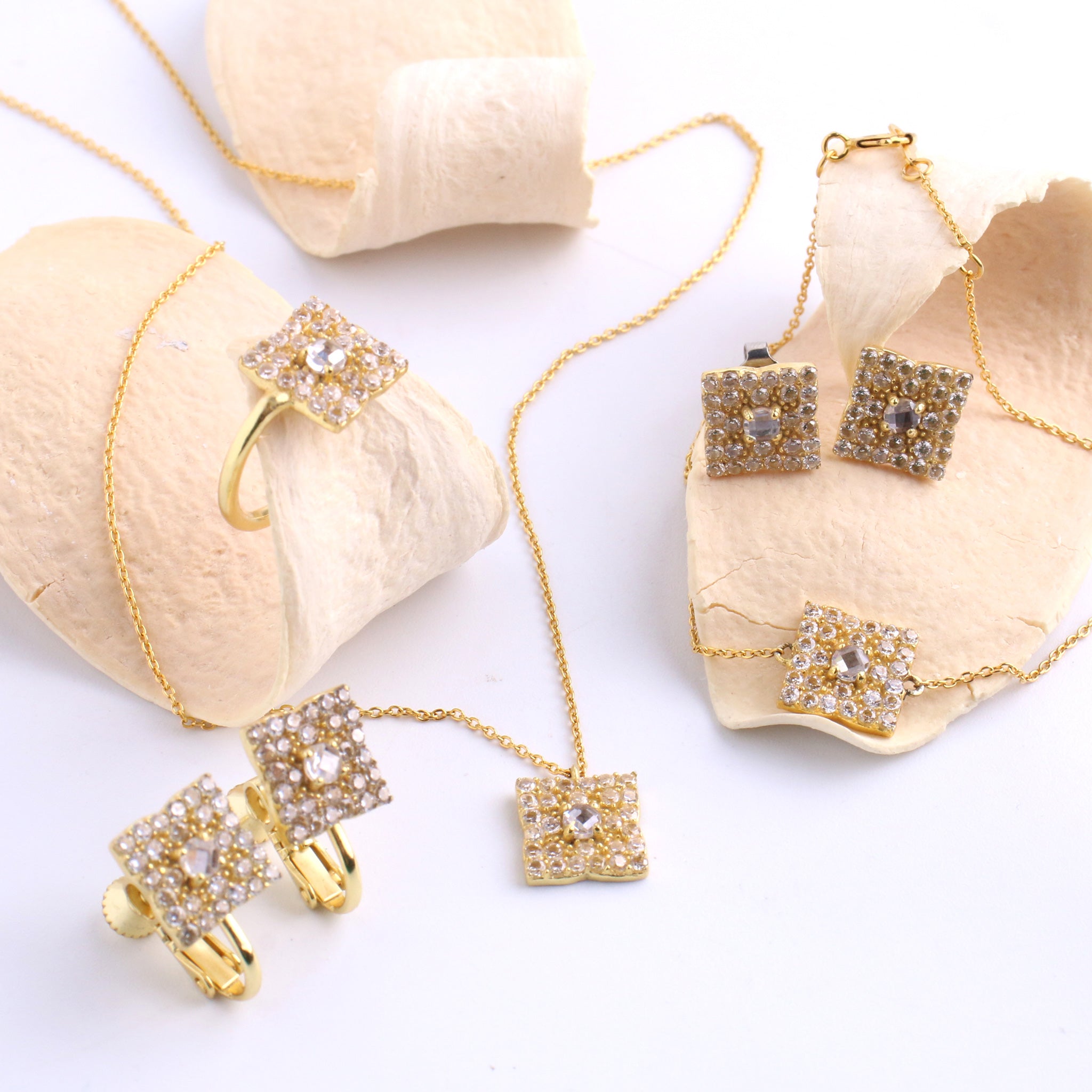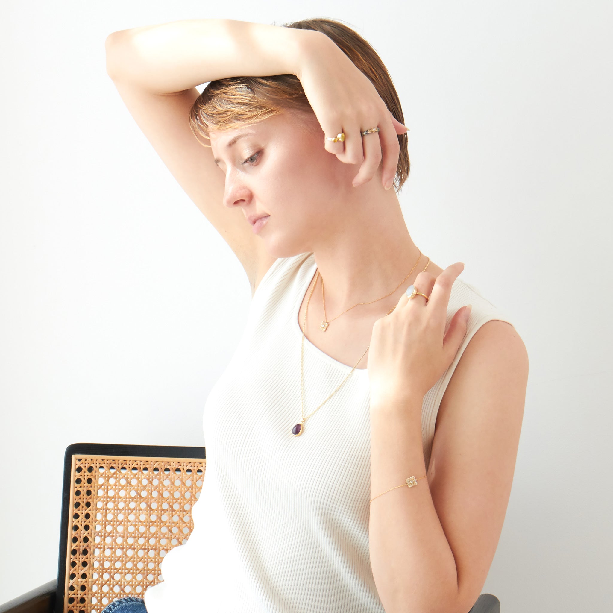 祖母から母へ、そして母から自分へ受け継がれたようなアンティークジュエリー感とジュエリーがもつ絢爛さを掛け合わせたMAYGLOBEのジュエリーライン。ビジネスシーンにもカジュアルなシーンにも似合う、風格のあるジュエリーを手に取りやすい価格帯で実現いたしました。実際に手に取られると、繊細なつくりとキラメキに見とれるほど。繊細ながらも存在感のあるジュエリーを楽しめます。