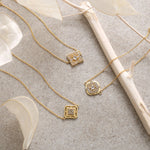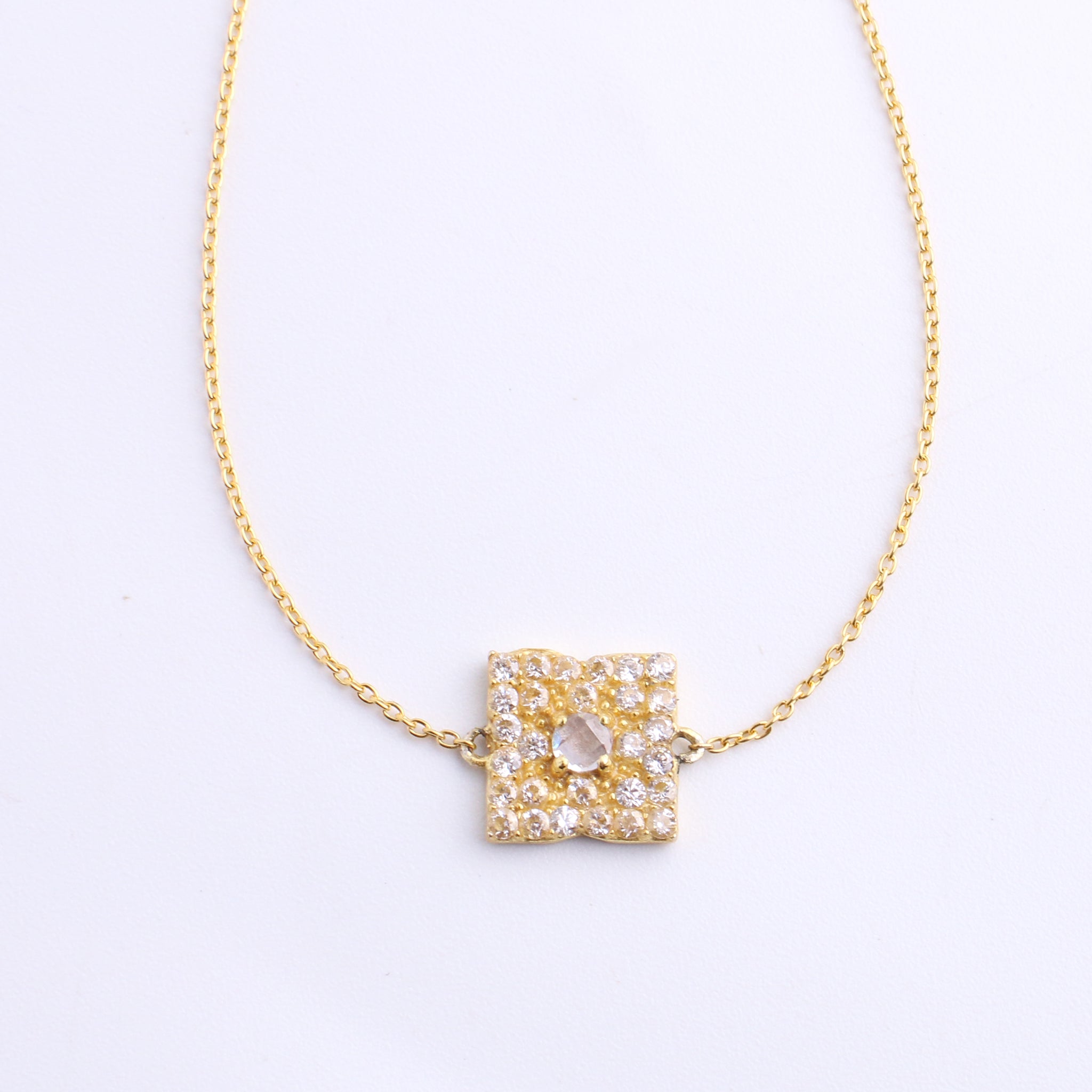 ネックレスチェーン→ゴールドフィルド(14KGF) / モチーフ→クリスタルクオーツ / キュービックジルコニア / 真鍮