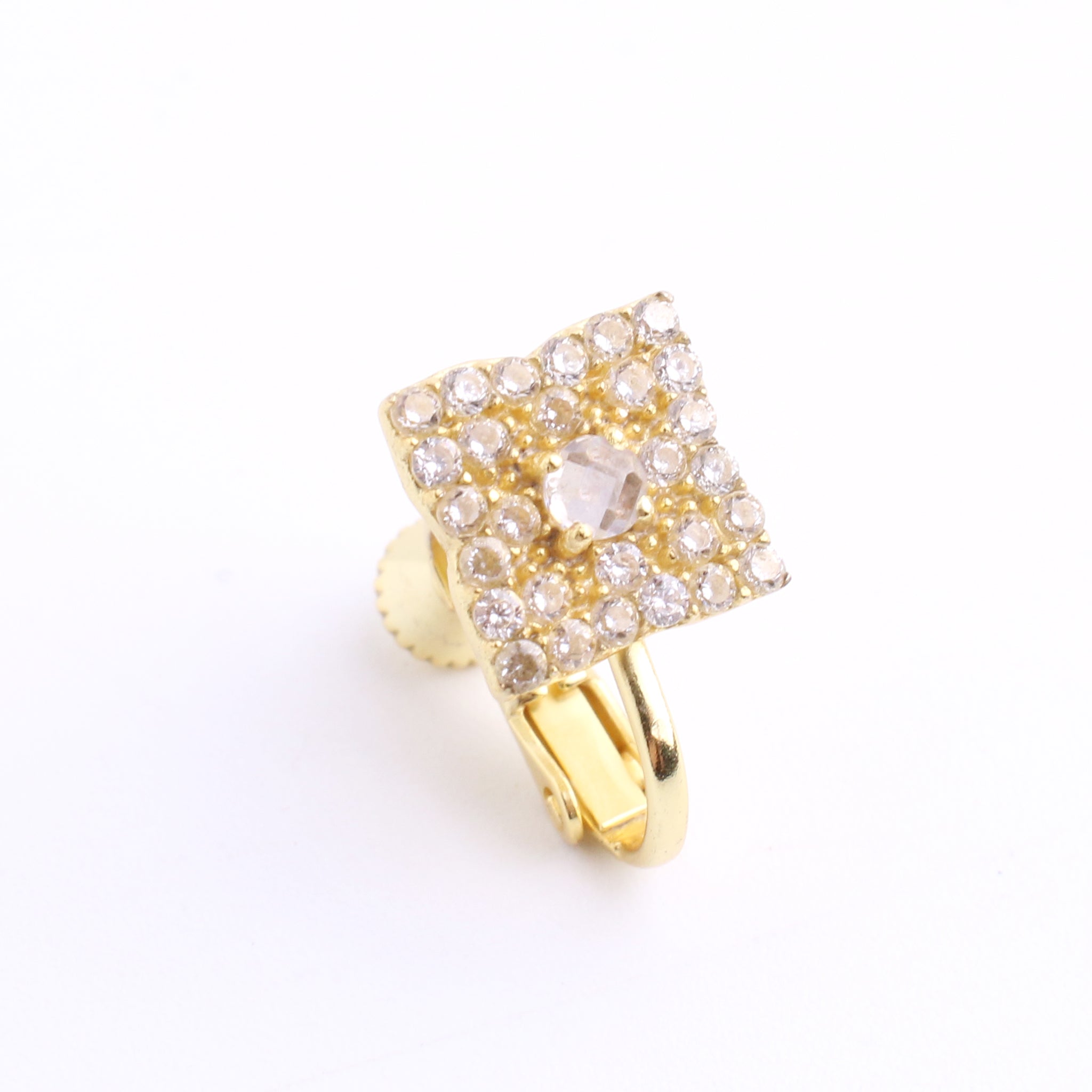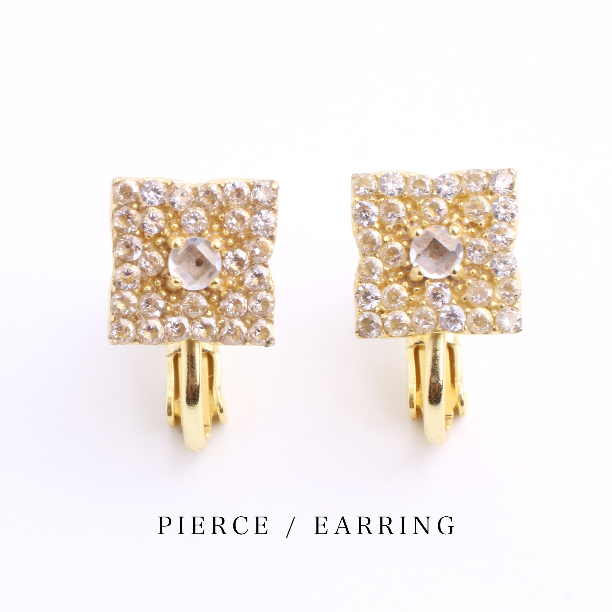 長い年月に渡り大切に伝えられてきた伝統技術を持つ職人の技巧を駆使したジュエリーがMAYGLOBEから誕生。1枚の固い真鍮から石をセットする土台をハンマーで作り出す加工は非常に高度な技術が必要なため、熟練の職人だけがなせる業。モチーフ裏は裏抜き加工を施し、底から入る光はオモテ面の立体感と輝きを際立たせます。また中央のクリスタルクオーツはバラのようにカットされたローズカットを採用。多方面にきらめく光がとても上品です。