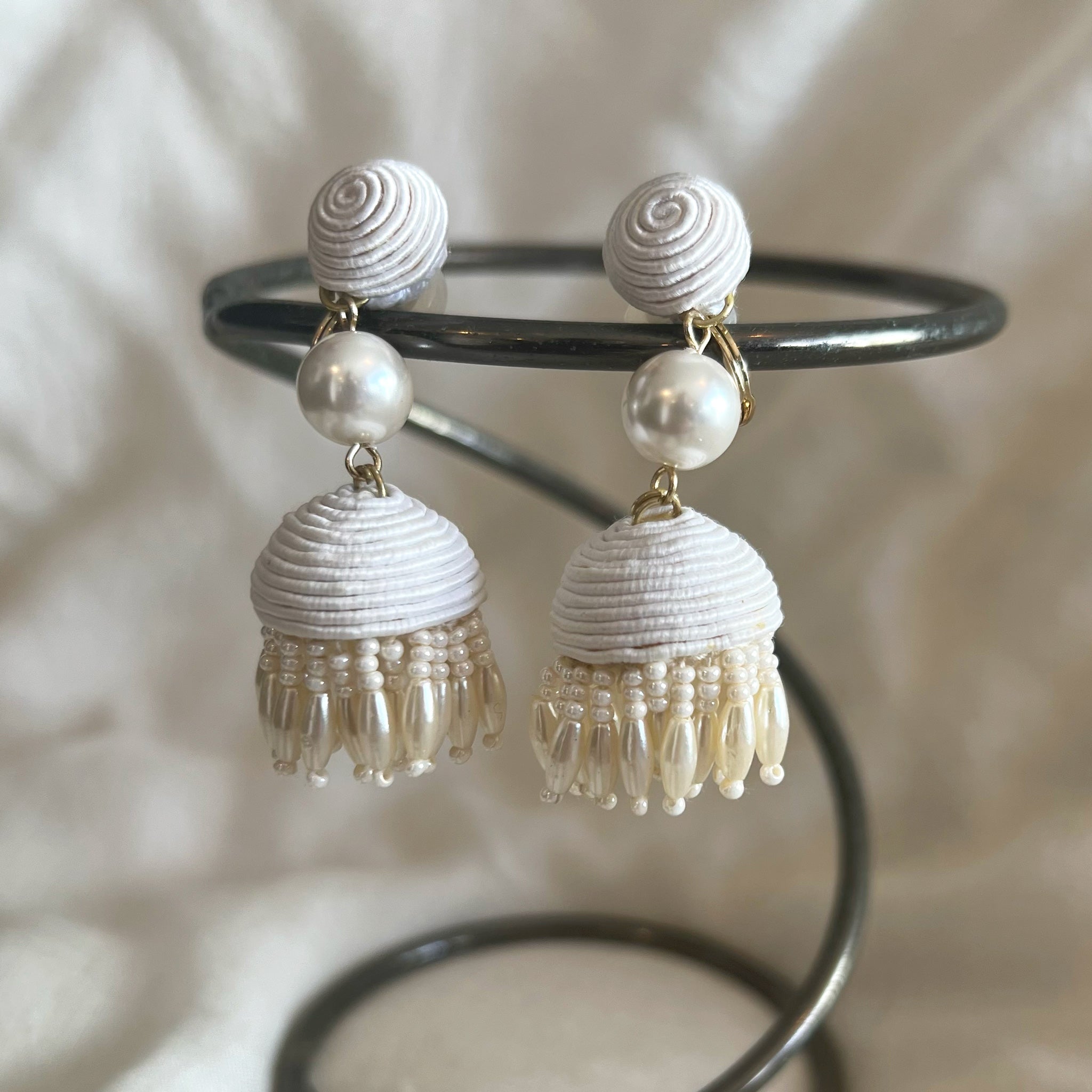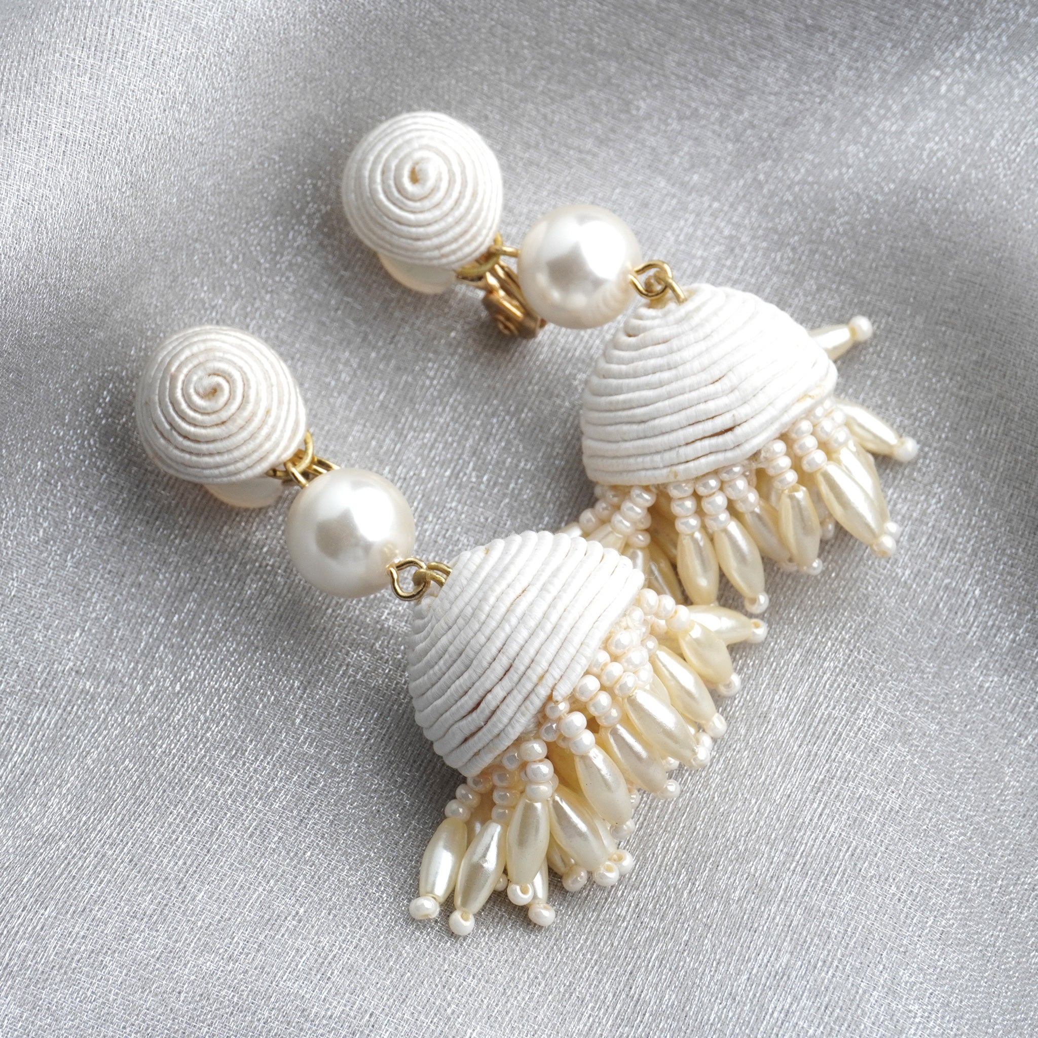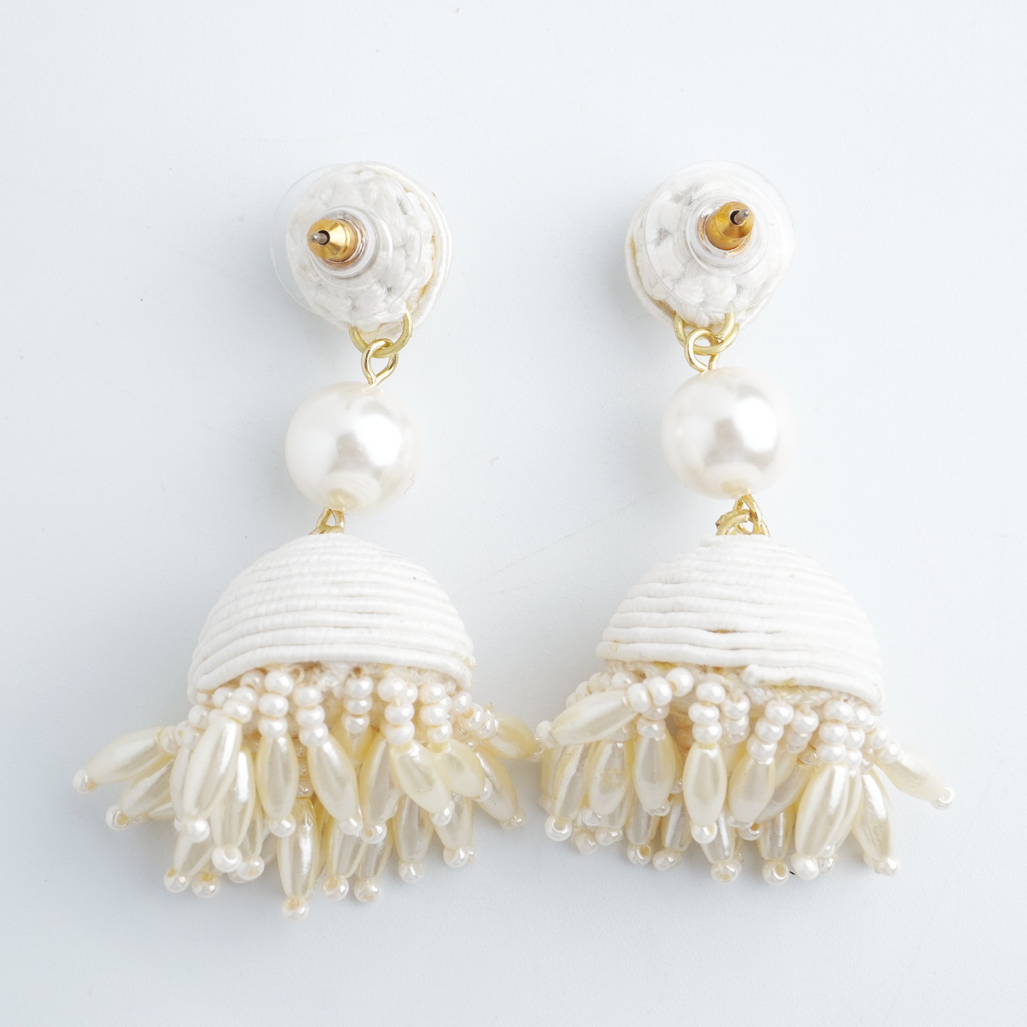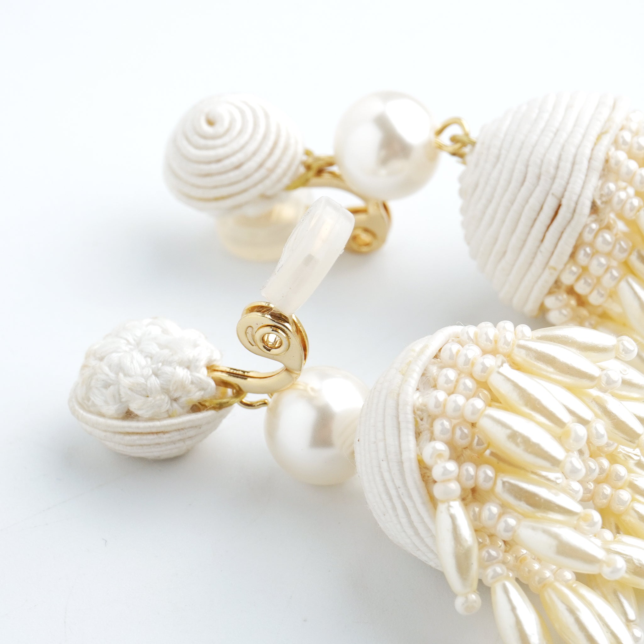 2.ボンボンタッセル :コットン・アクリルパール・ガラス・真鍮・チタン(ピアスポスト)・ゴム(イヤリングカバー)