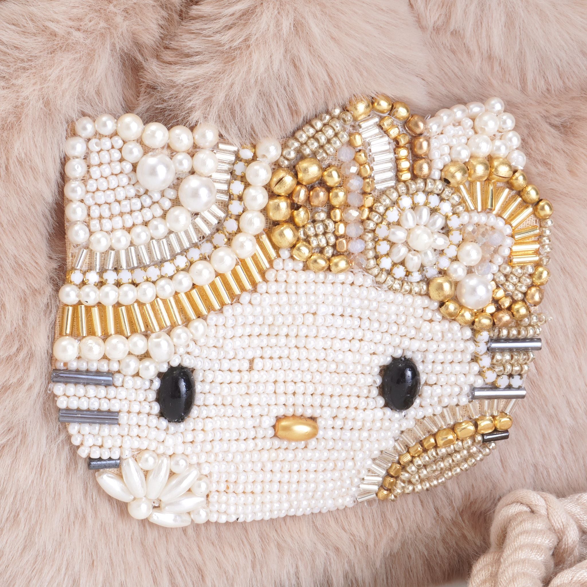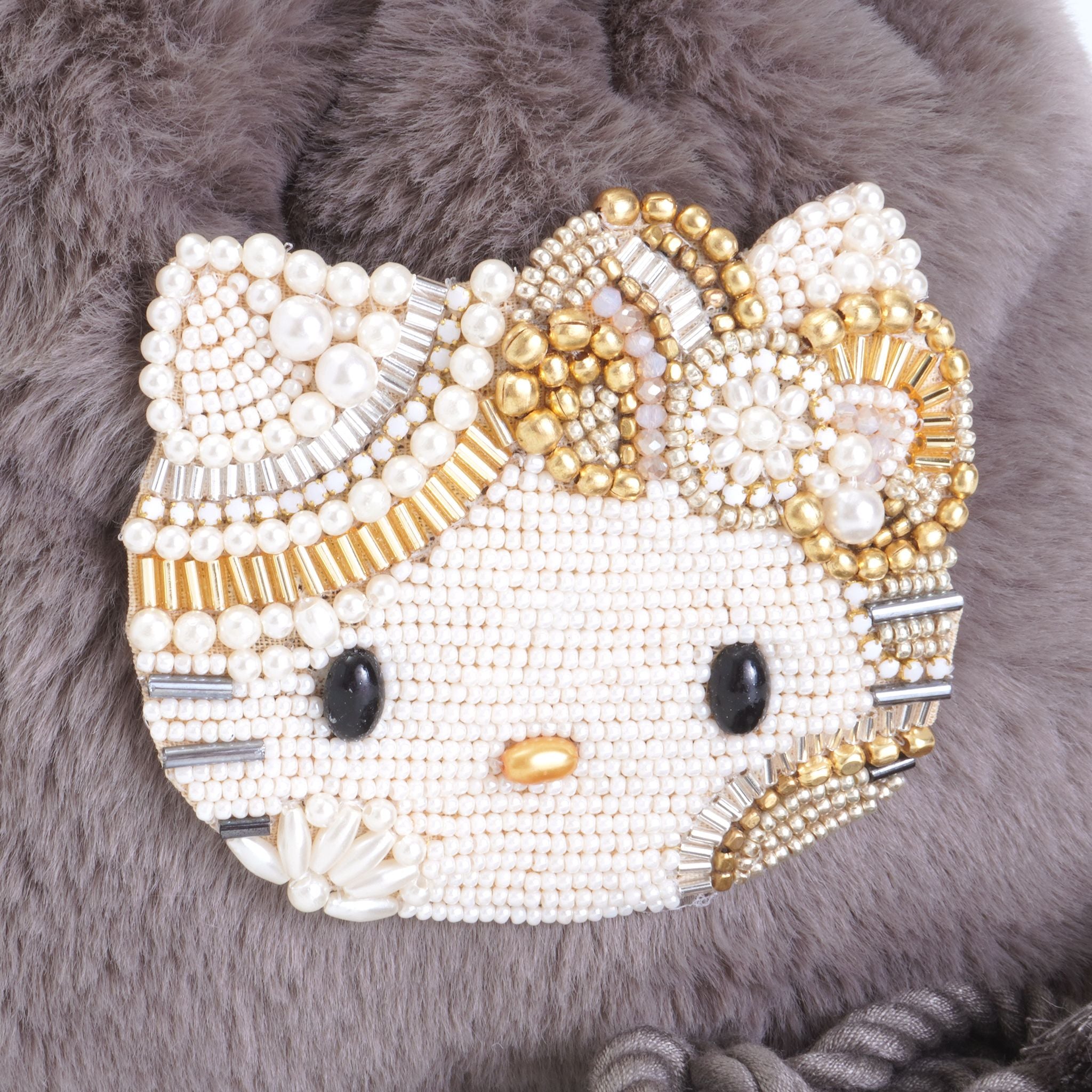 MAYGLOBE 直営店のみ限定販売アイテムです。他にはない特別感や希少性を感じられるHelloKittyのビーズ刺繍とファーのコンビネーションをお楽しみください。