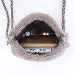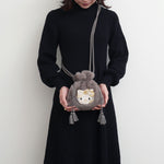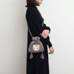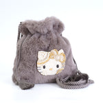 HelloKittyのビーズ刺繍が柔らかな肌触りのファーのポシェットになりました。きらびやかなビーズのHelloKittyとファーの相性がバツグン。持つだけでシーズンムードと上品さが漂います。ふわふわもこもことしたファー素材が持つ温かみと柔らかさが、コーディネートに上品さと季節感をプラスします。巾着型のデザインにより、開閉が簡単で、収納も手軽です。肩にそのままかえたり、ななめにかけたり、お好きな長さで調整することができるので、さまざまなシーンで活躍します。