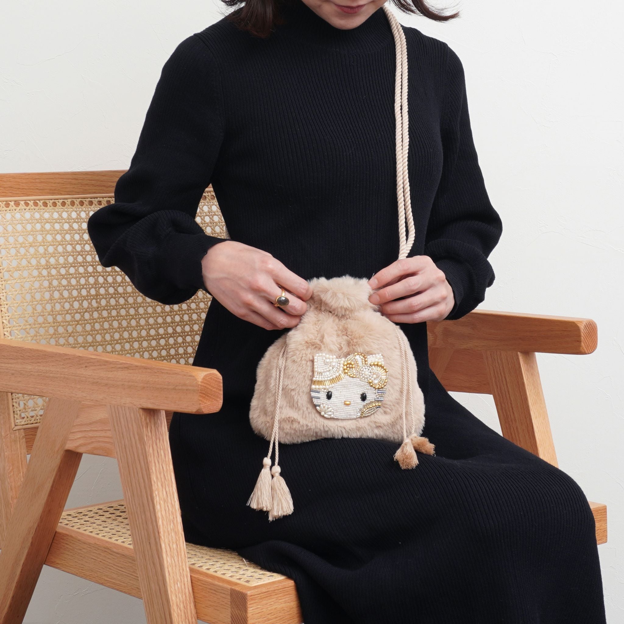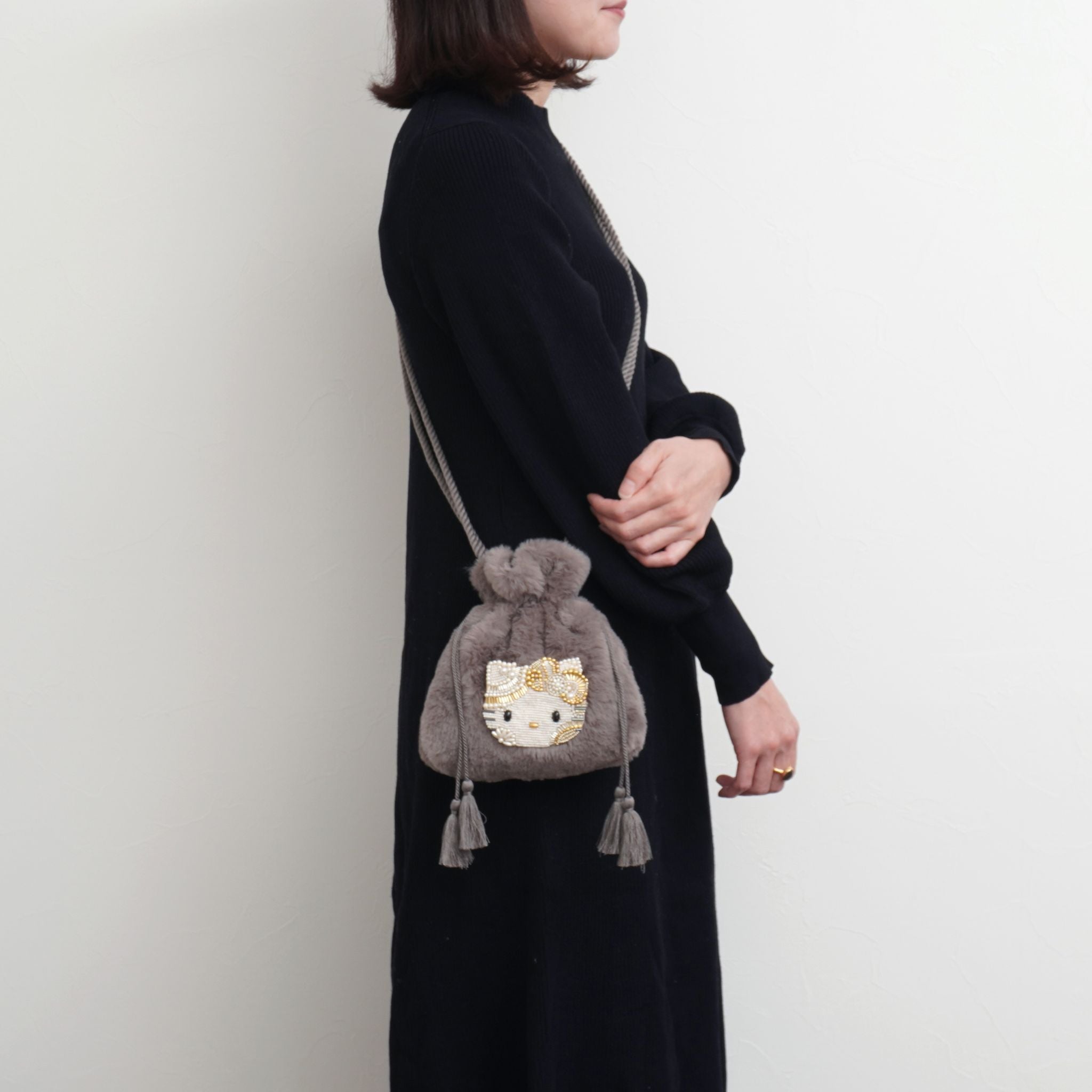 ハローキティ ビーズ刺繍 ファー 巾着バッグ【直営店限定】